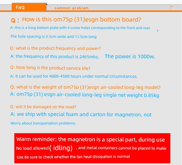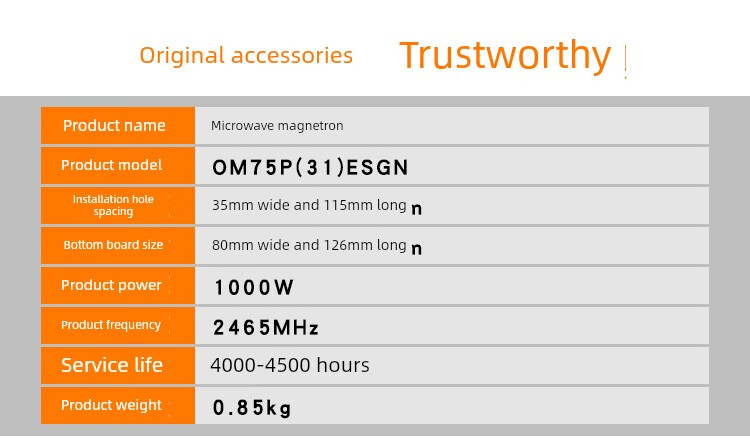 Industrial microwave magnetron Samsung OM75P31 drying equipment air-cooled bottom plate tube 1000W OM75P(31)ESGN air-cooled Samsung original