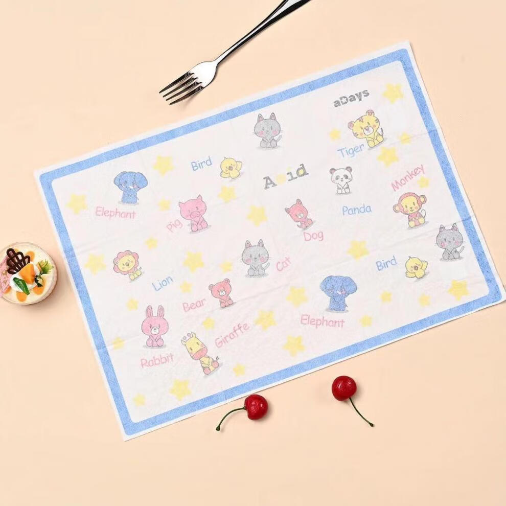 Wenzhi Disposable Placemat Baby Outing Absorbent Table Mat Children's Primary School Oil-proof Table Mat Portable Dining Mat Wholesale Placemat-Animal Paradise Boxed 20 Pieces 42*30cm