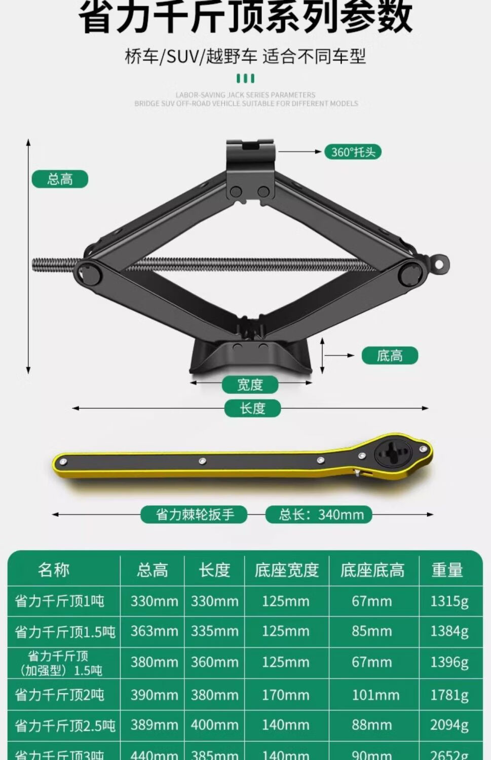 Yeyu car jack car hand crank car horizontal tire changing hand crank vehicle tool 1 ton 2 tons jack 1 ton labor-saving jack + labor-saving sleeve high hardness jack fracture guarantee