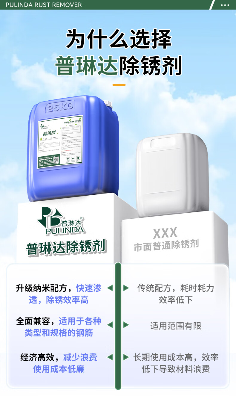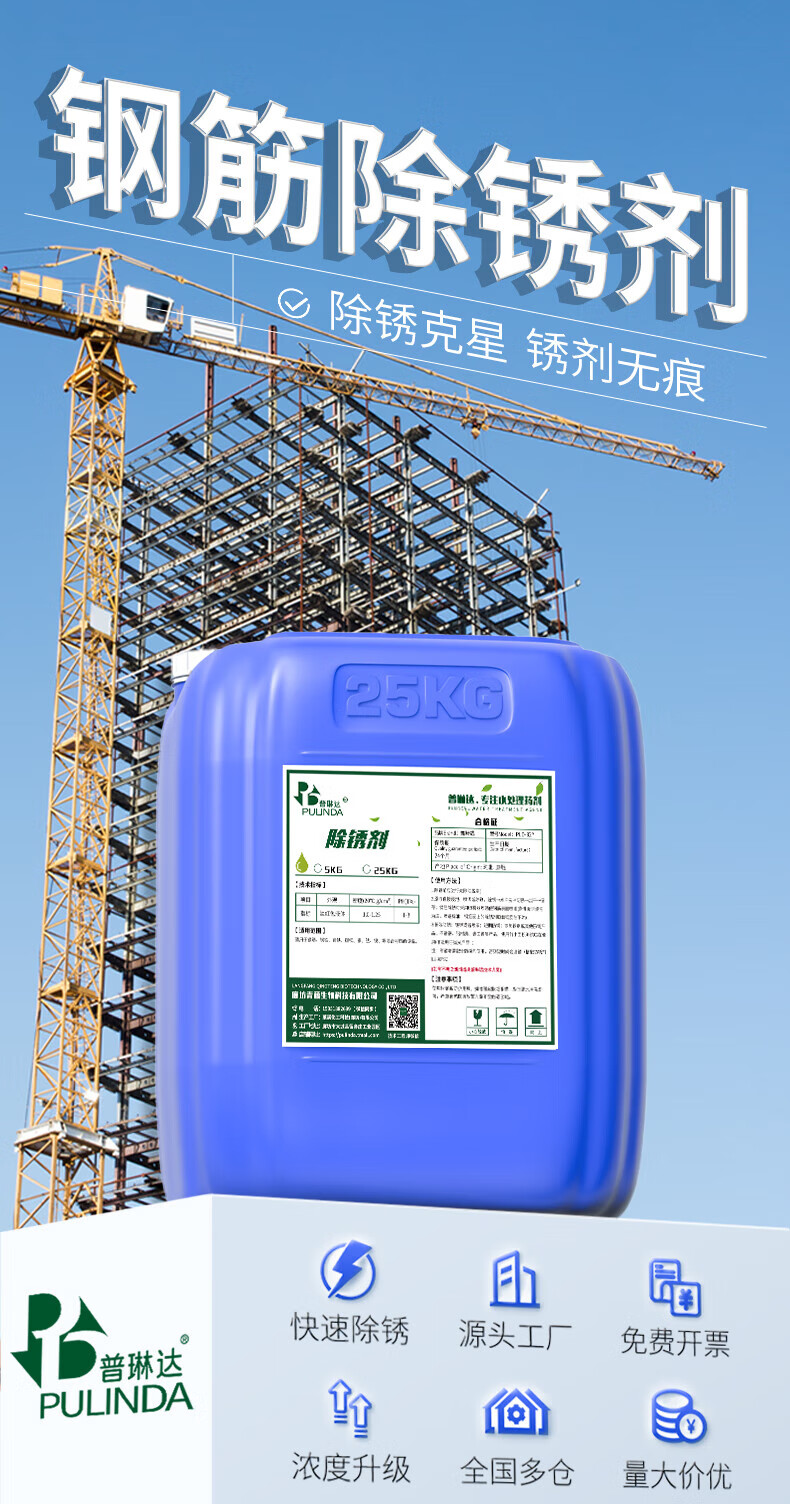 Rust remover large barrel rust remover construction site steel bar metal quick cleaning powerful rust remover thread steel industry 25KG rust remover rust buster