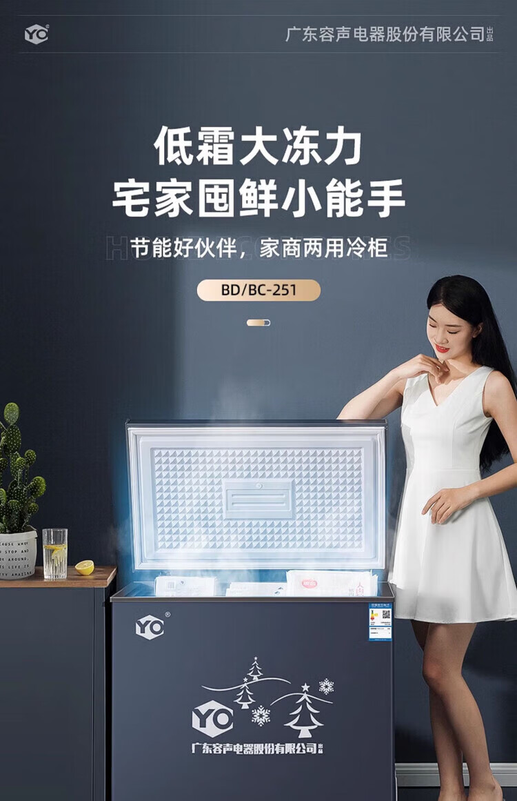 容声(Ronshen)一级能效减霜冰柜家用小型冷藏冷冻大容量两用冷柜冰箱YO1460 118单温节能款冷冻冷藏可转换 48L