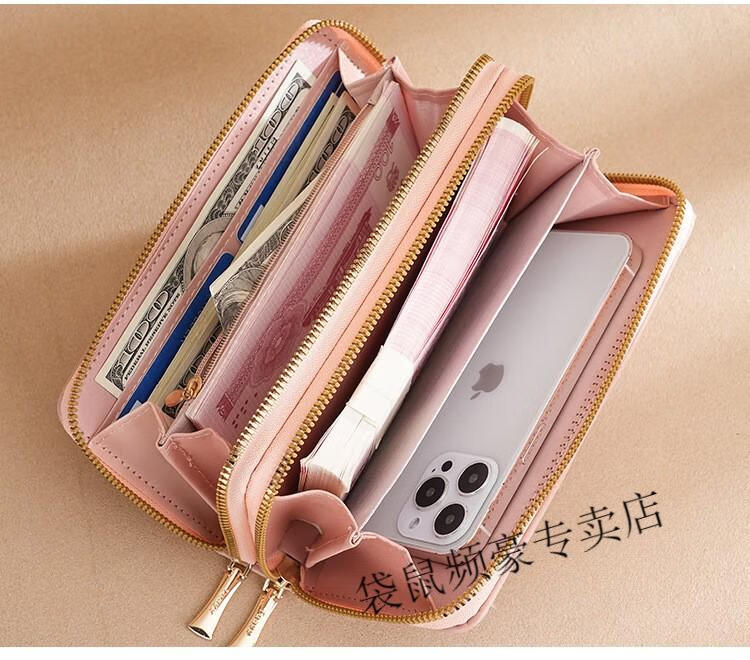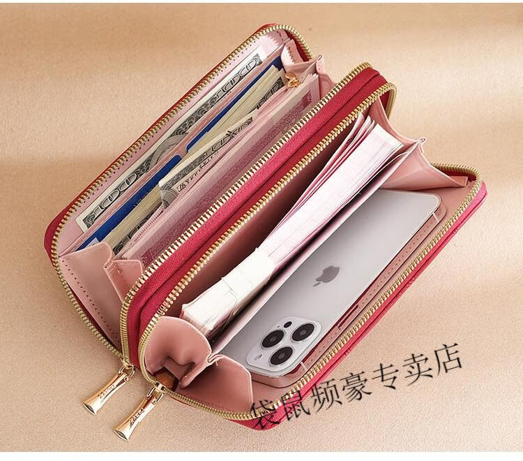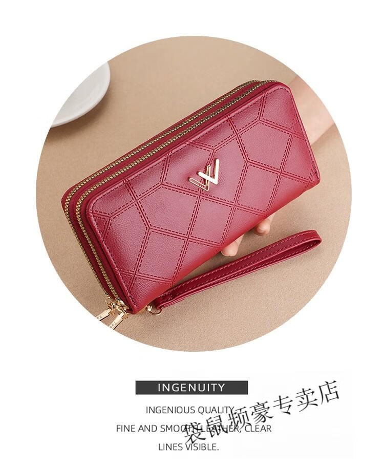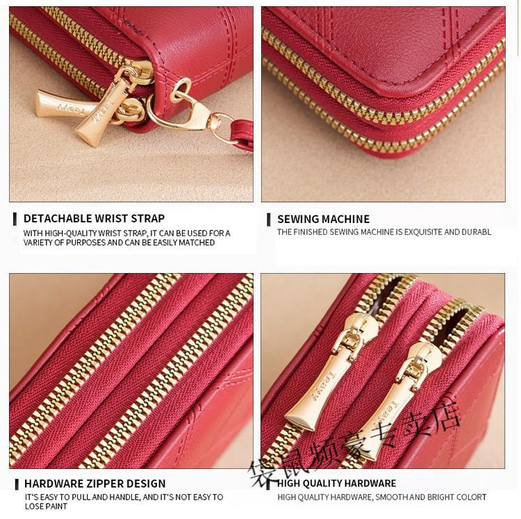 Kangaroo 2025 new Internet celebrity wallet women's long ins double layer double zipper multi-card slot mobile phone large capacity hand coin purse double money red