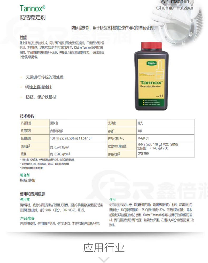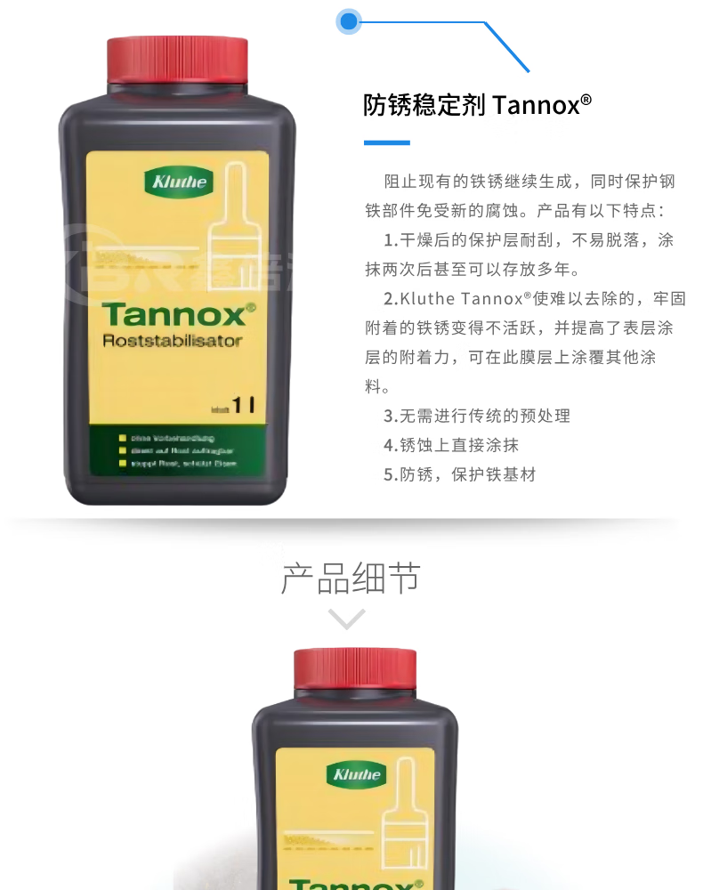 Kluthe Tannox metal anti-rust stabilizer anti-rust protective agent anti-rust corrosion inhibitor can be used directly without pretreatment (metal anti-rust stabilizer 1L) 1 bottle