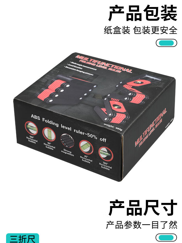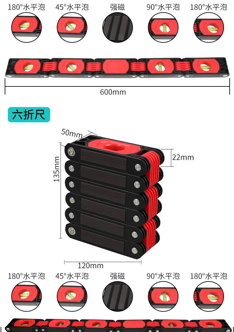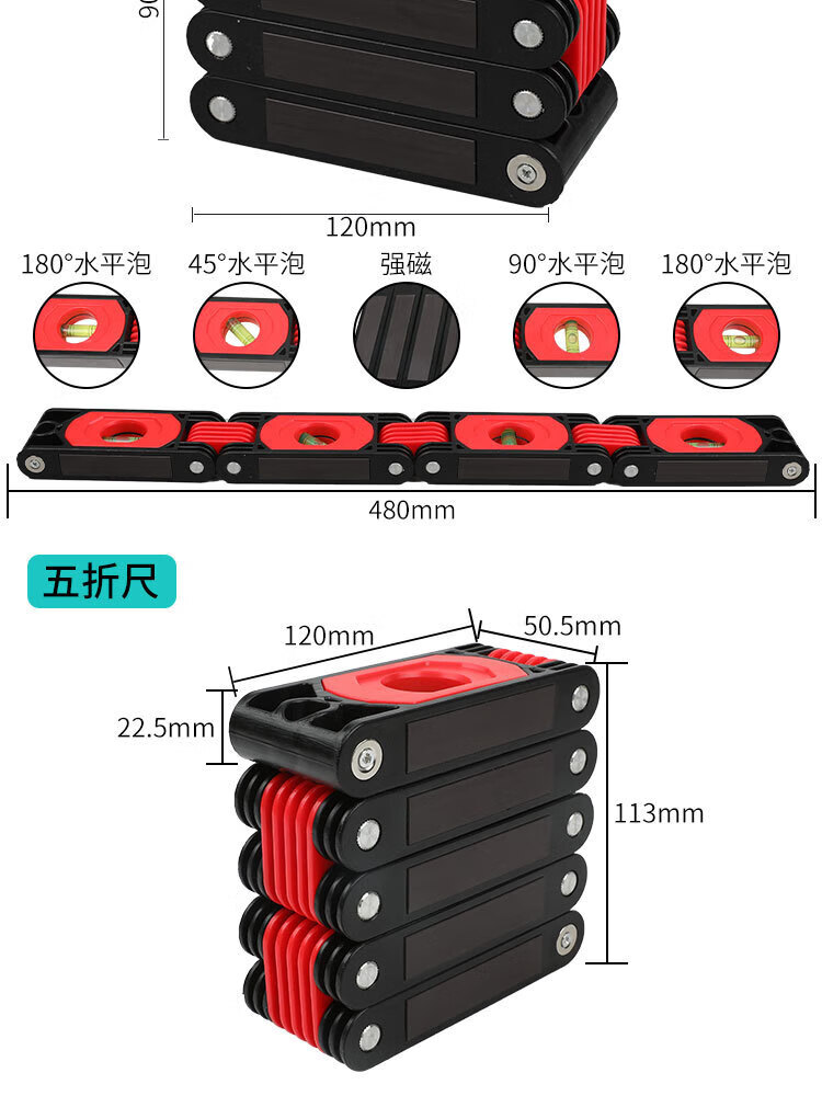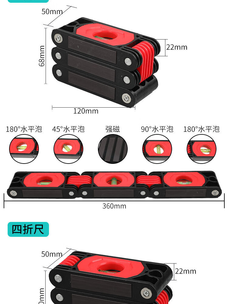 Jianyimao high-precision multi-functional folding level ruler home decoration corner woodworking artifact measuring tool multi-angle magnetic 3-fold ruler