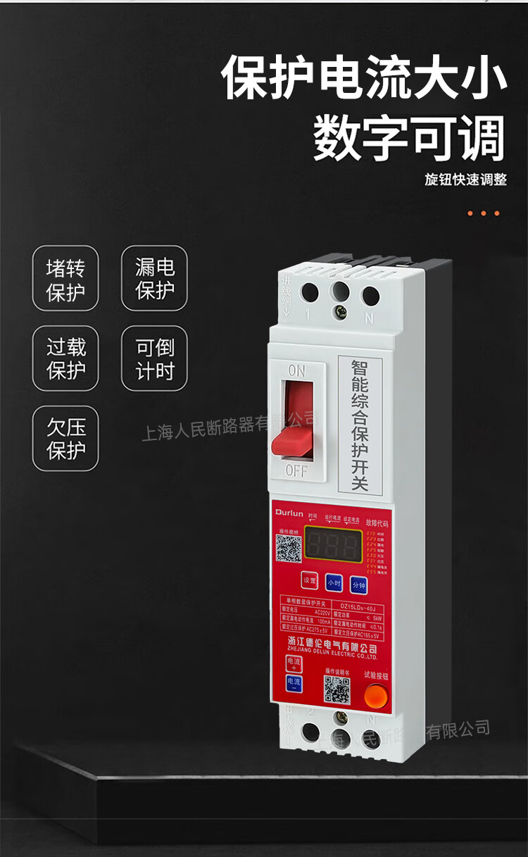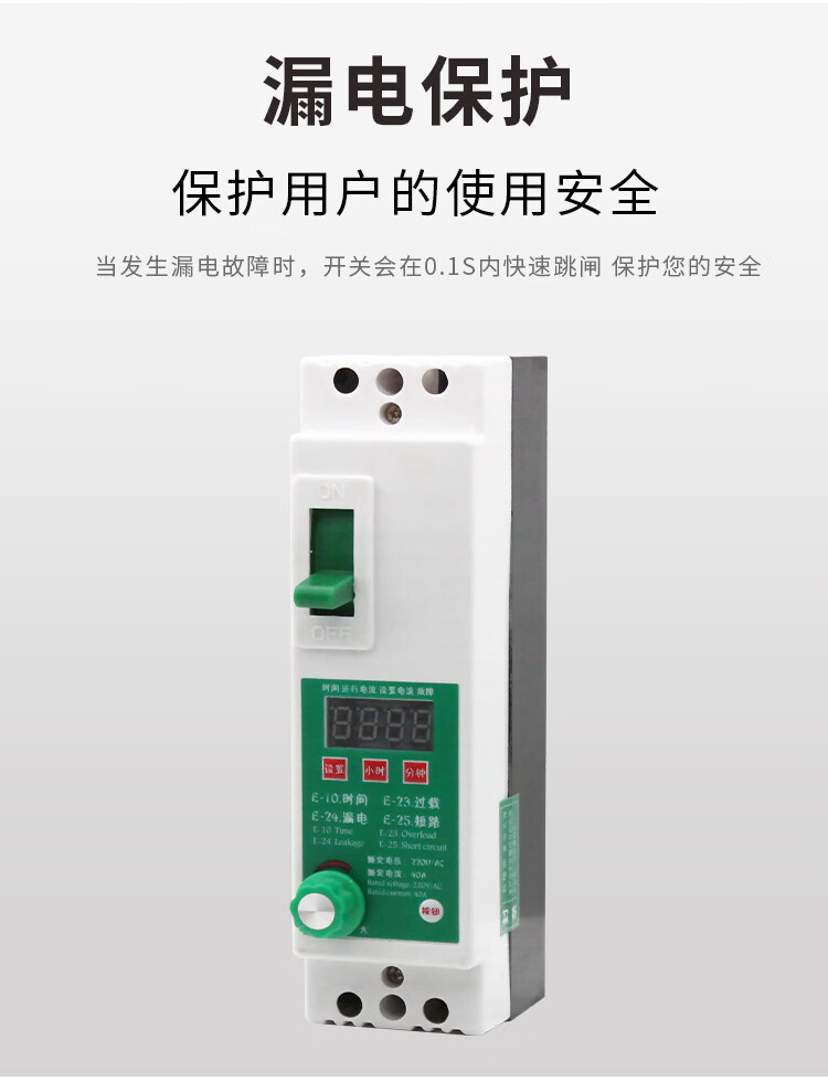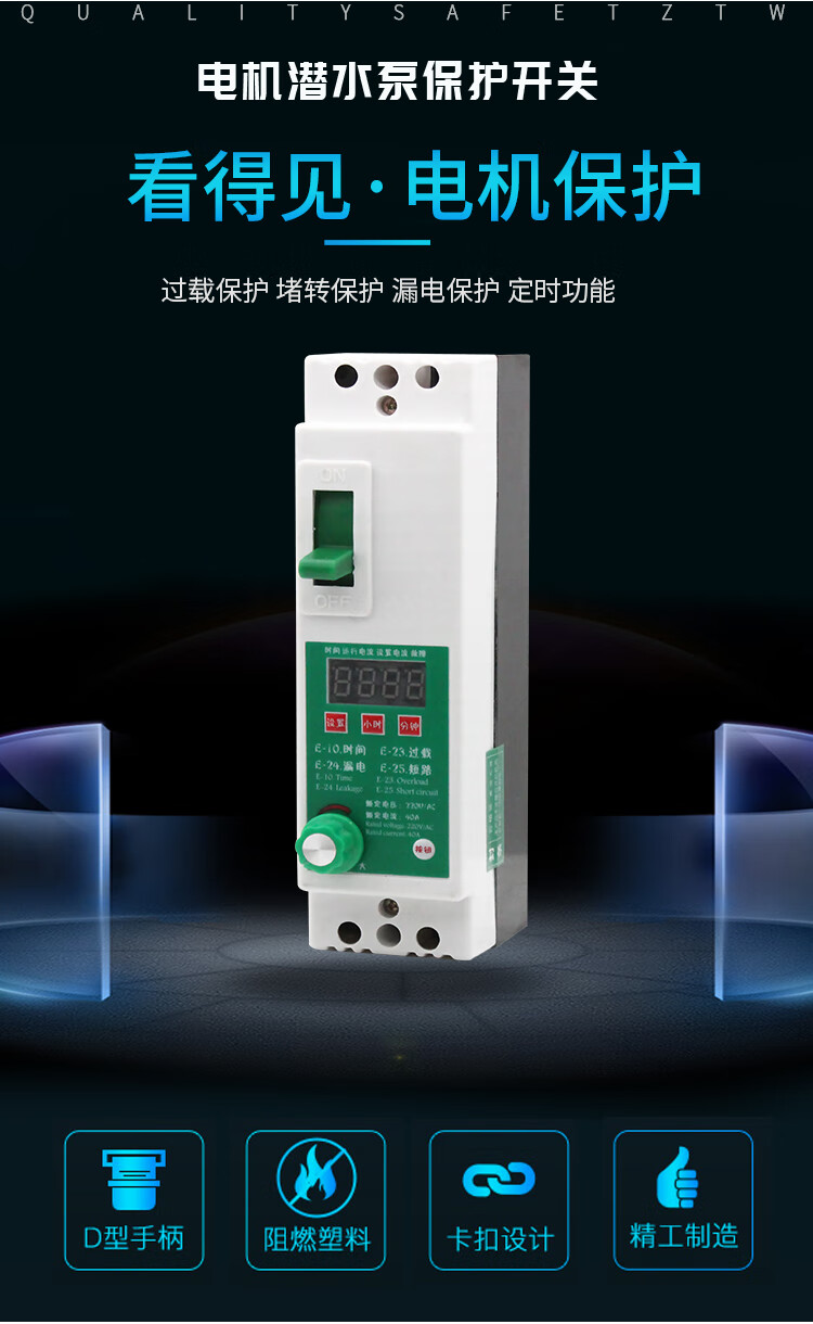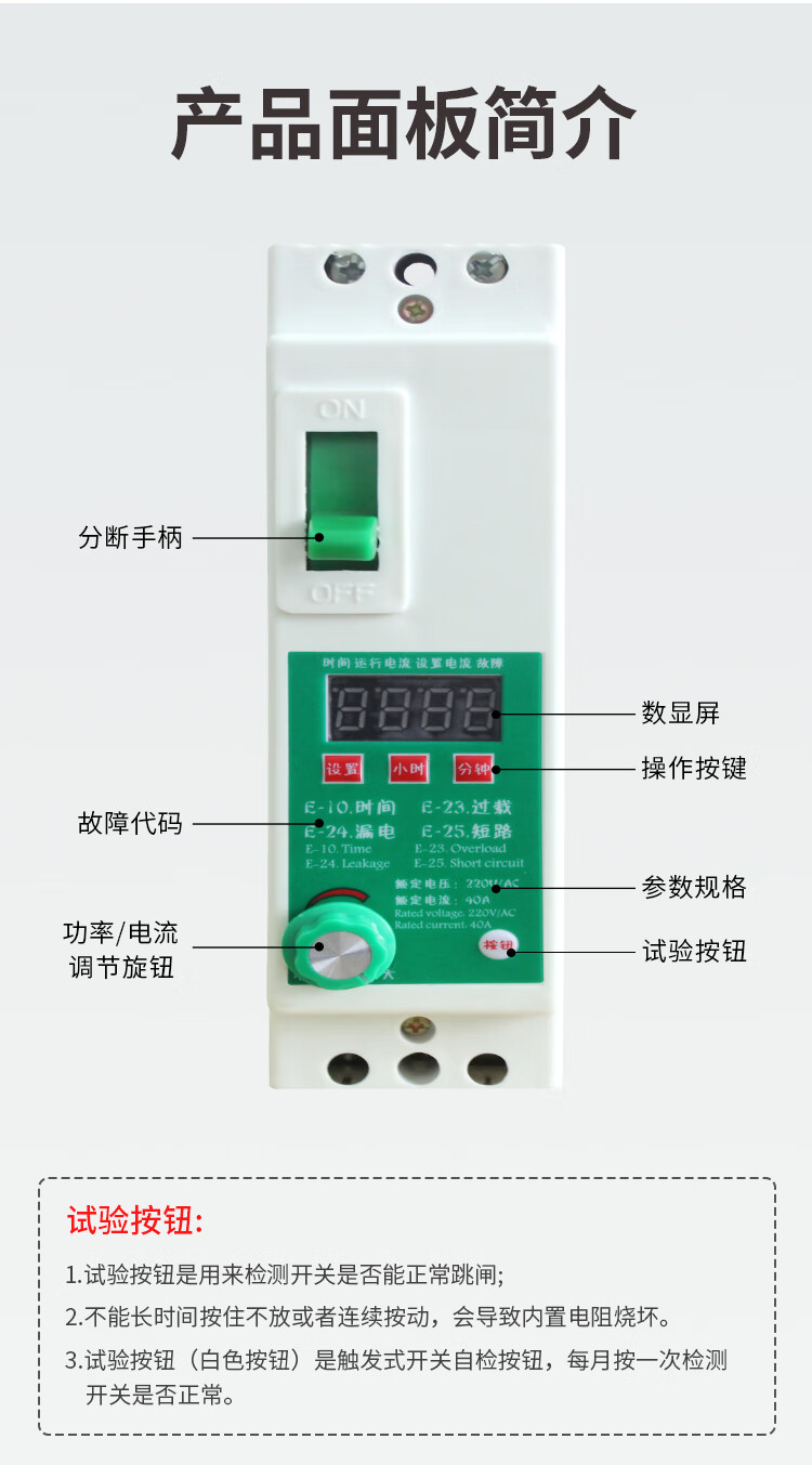 Single-phase motor protector 220V two-phase motor water pump fan leakage overload stall short-circuit protection digital display 40A 2P