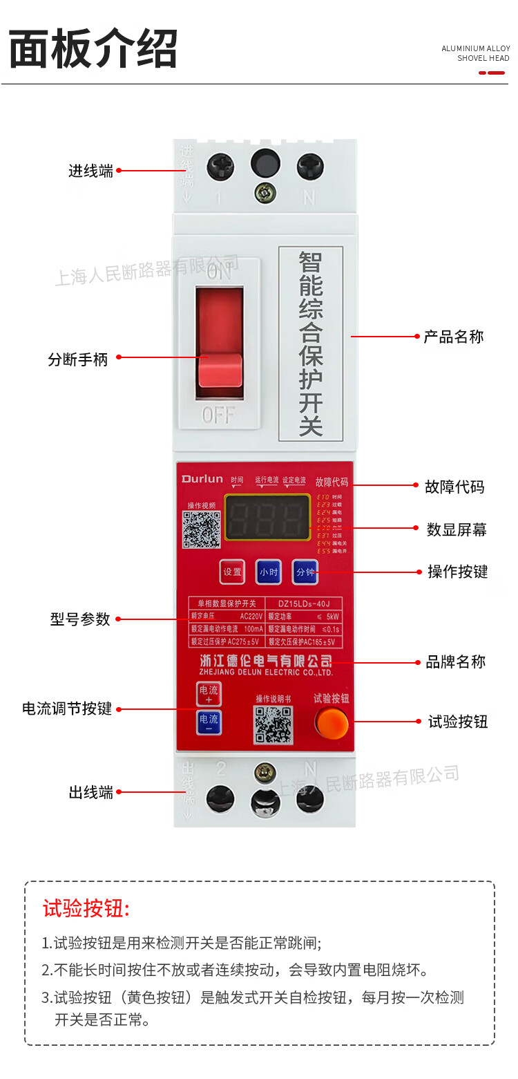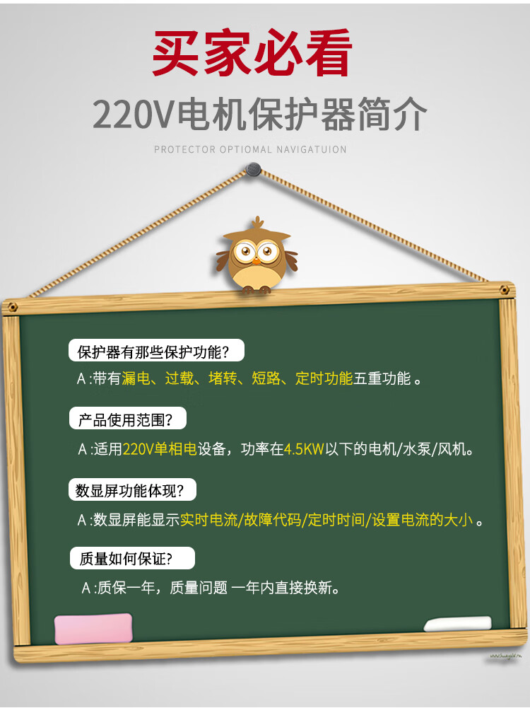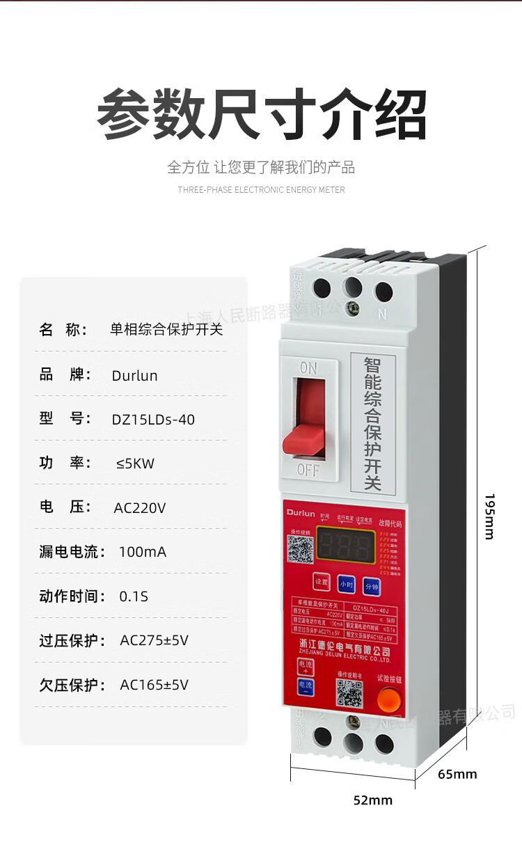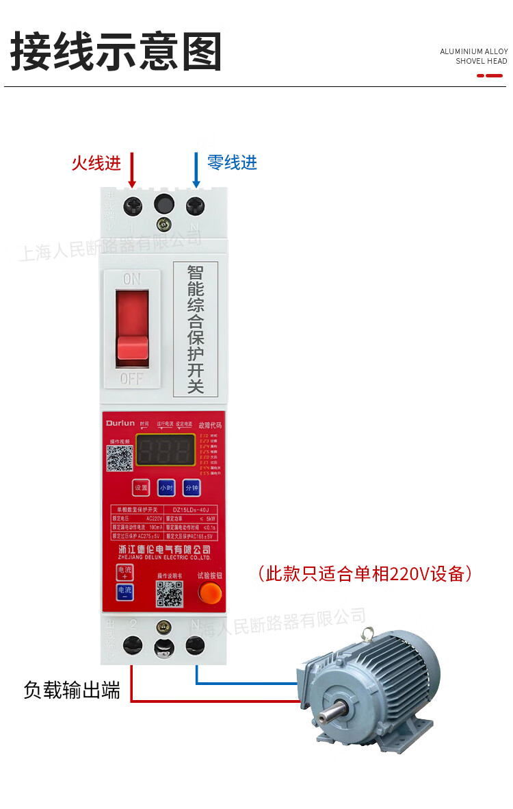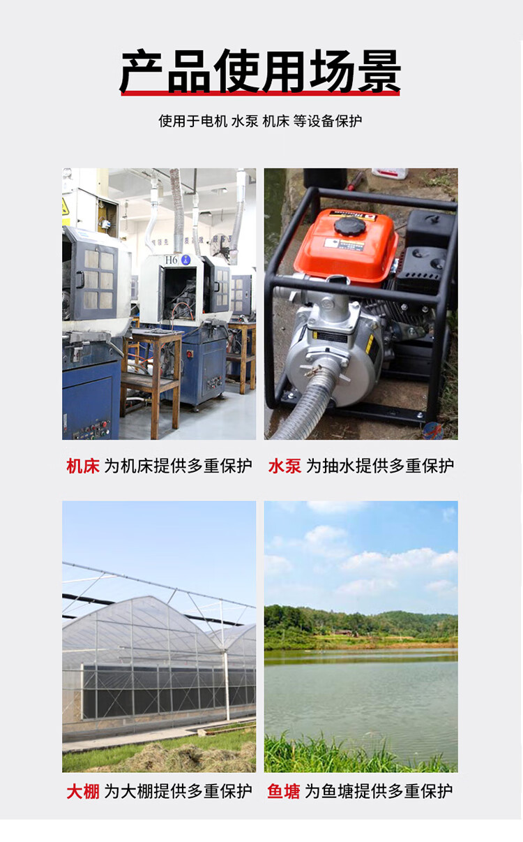 Single-phase motor protector 220V two-phase motor water pump fan leakage overload stall short-circuit protection digital display 40A 2P
