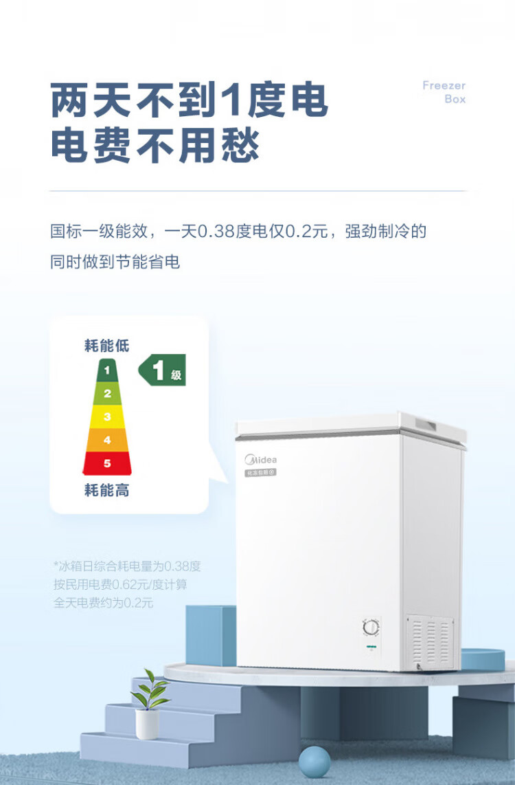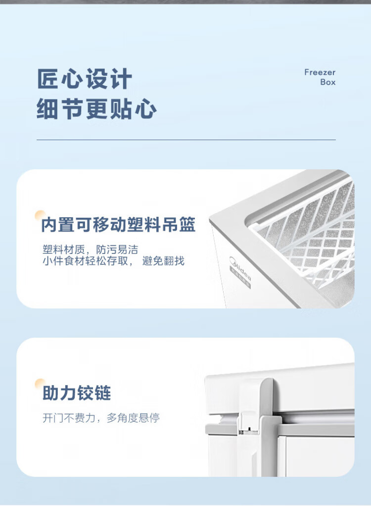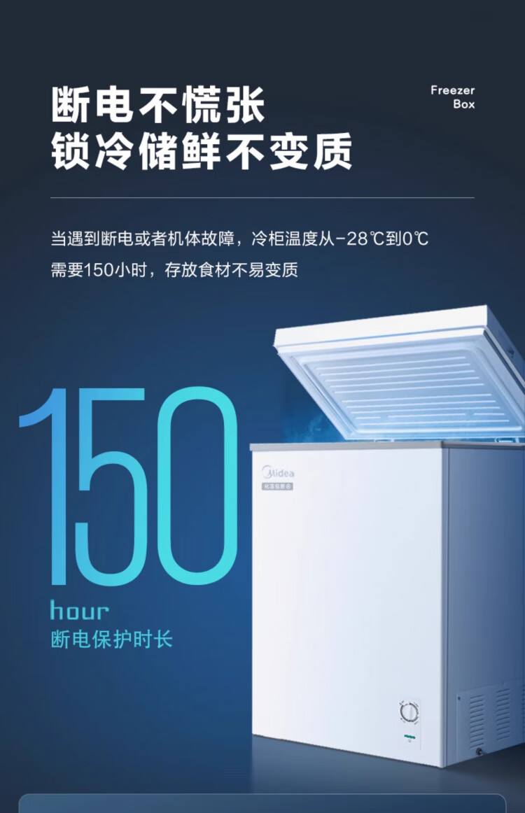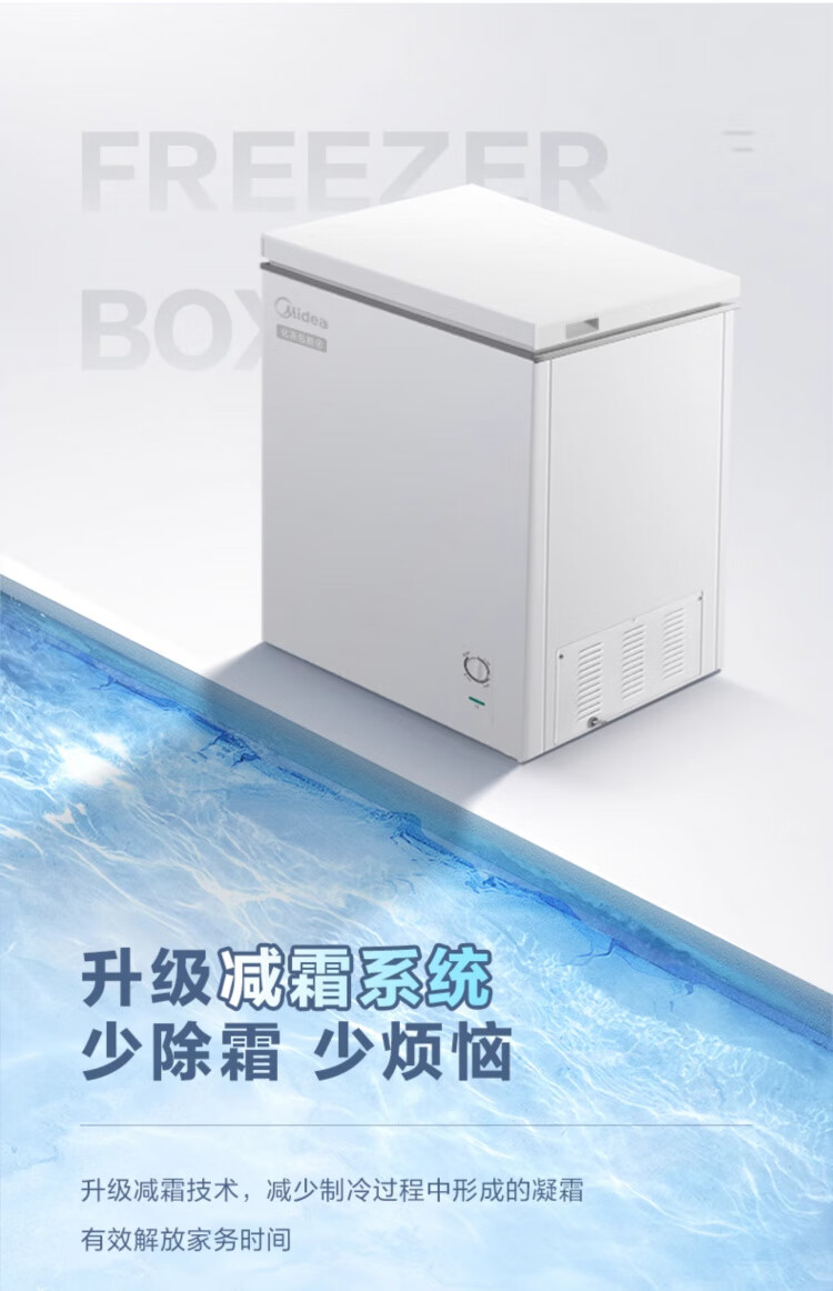 Midea Home 100/203/423L refrigerated direct cooling air-cooled easy to disassemble and clean quick-freezing single and double temperature freezer polar white 221L single door single temperature first-level air cooling
