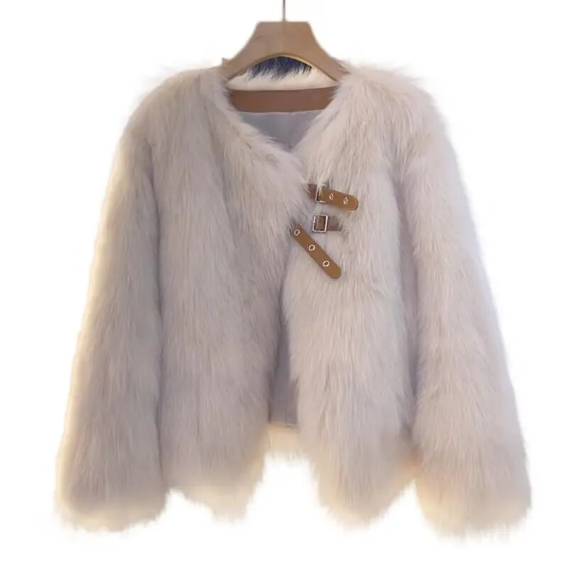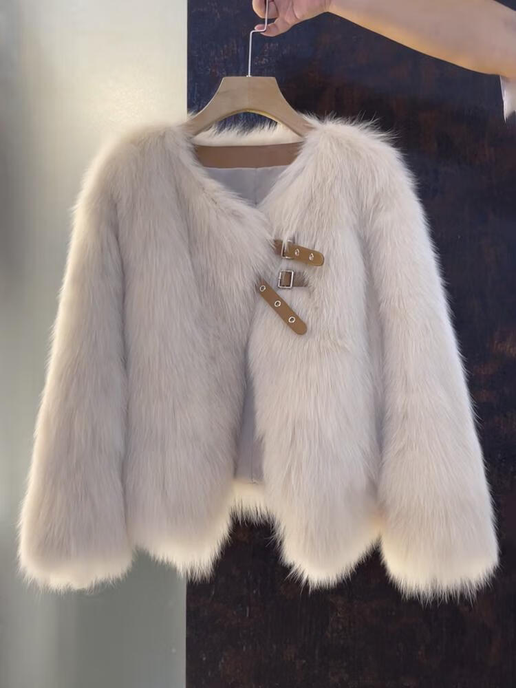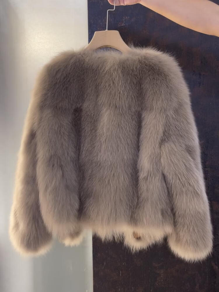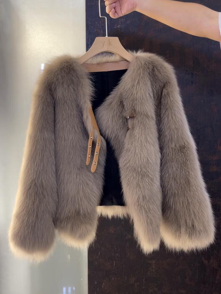 Pierre Cardin 2025 Winter New Short Fox Fur Fur Jacket Women's Fashion Fur All-in-One Top Coco Color L