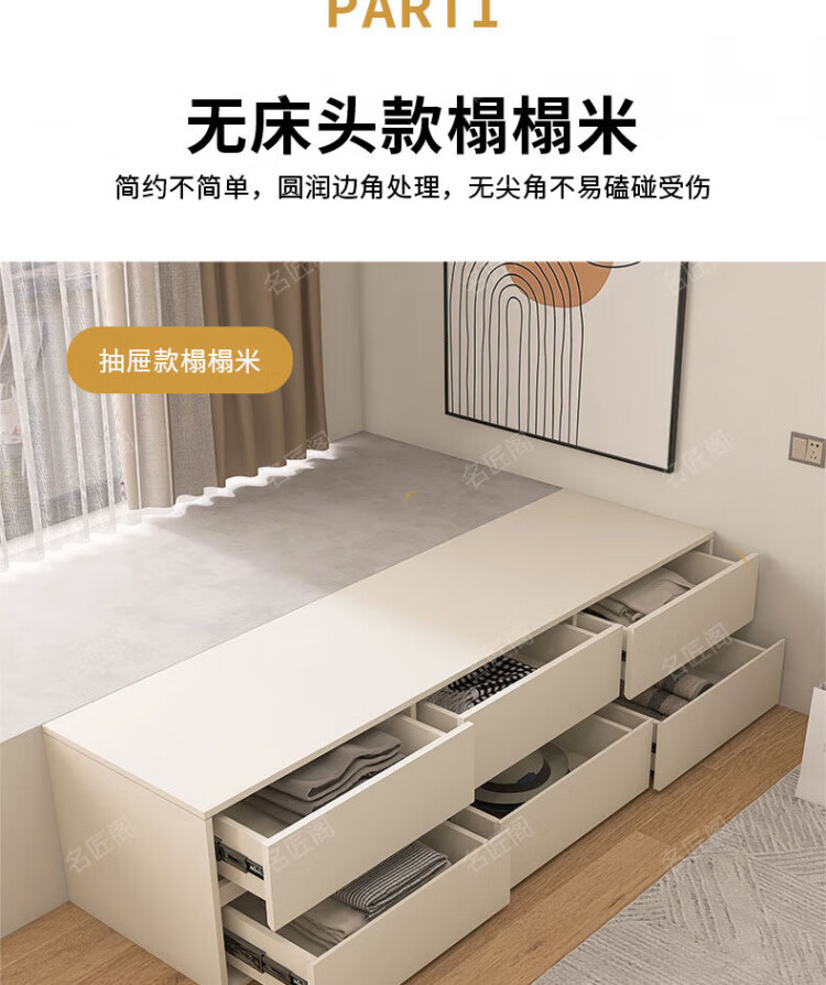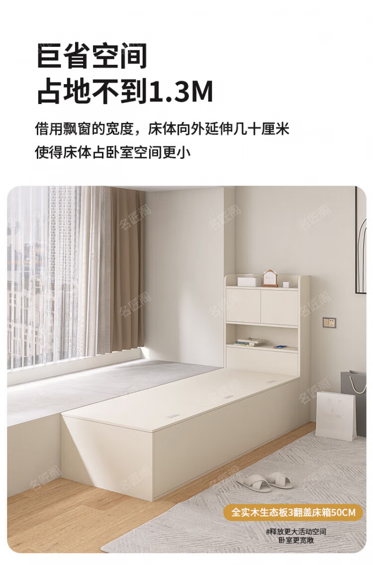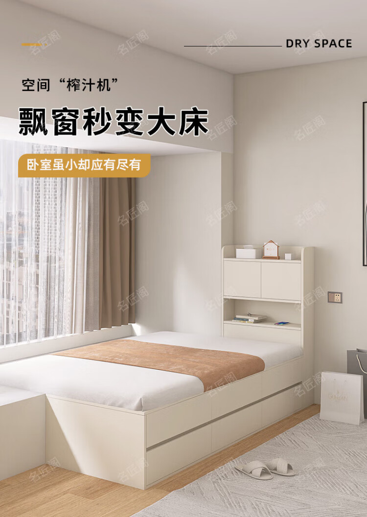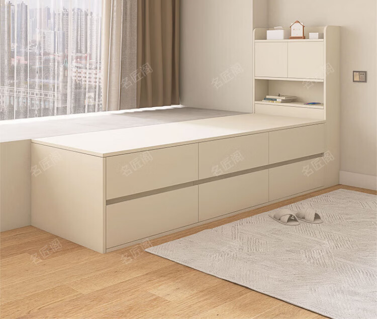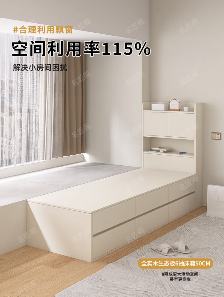 There is a new high-end small apartment bay window splicing bed solid wood window sill transformation tatami storage bed with drawer custom drawer bed box 40 high, wide 50 * long 190/200 delivered to your home and installed.