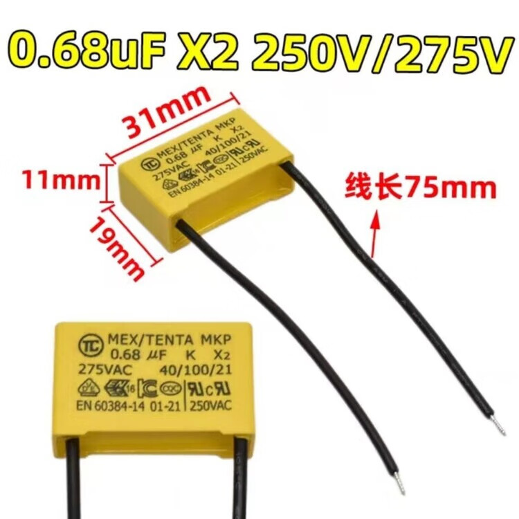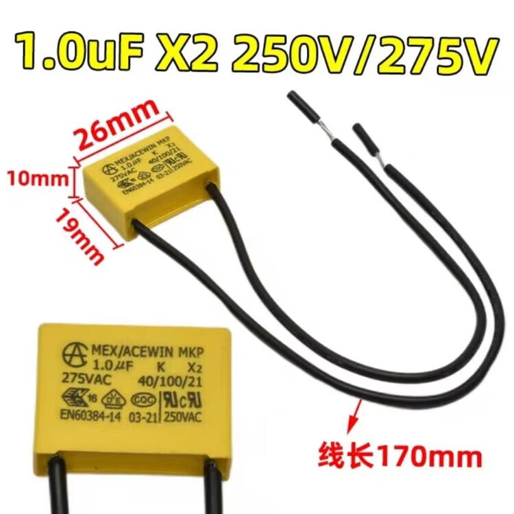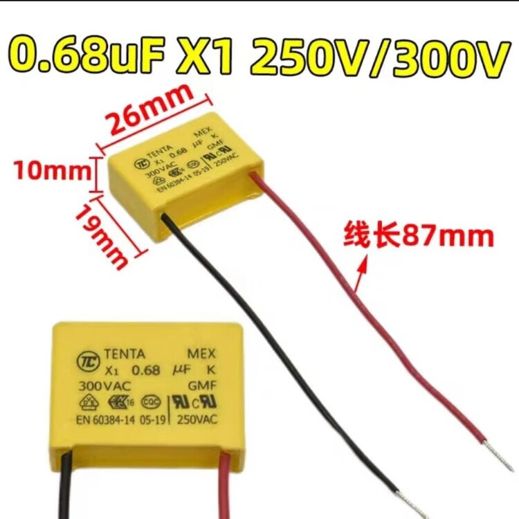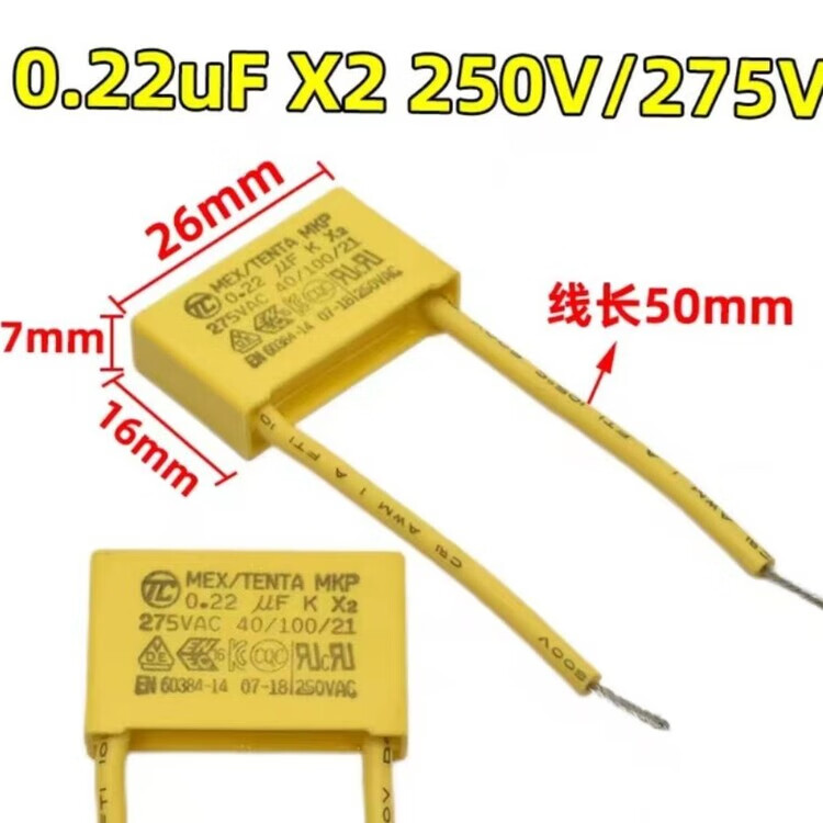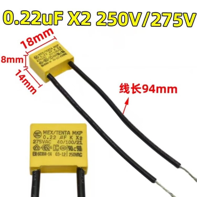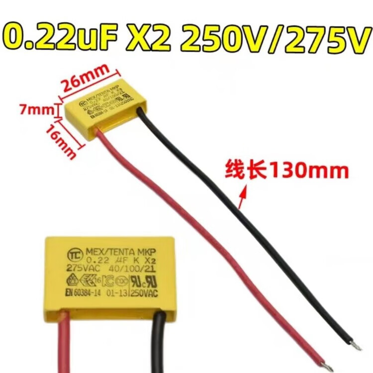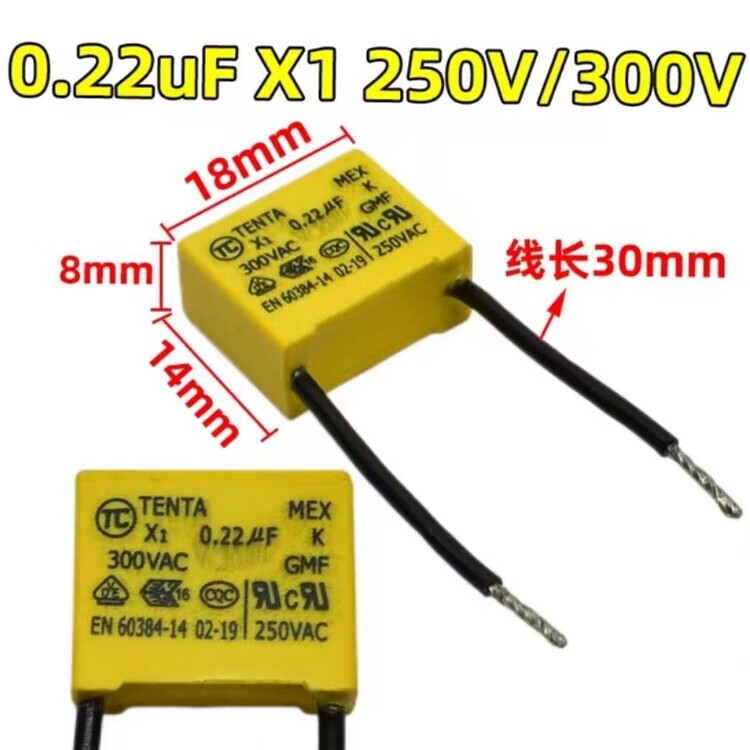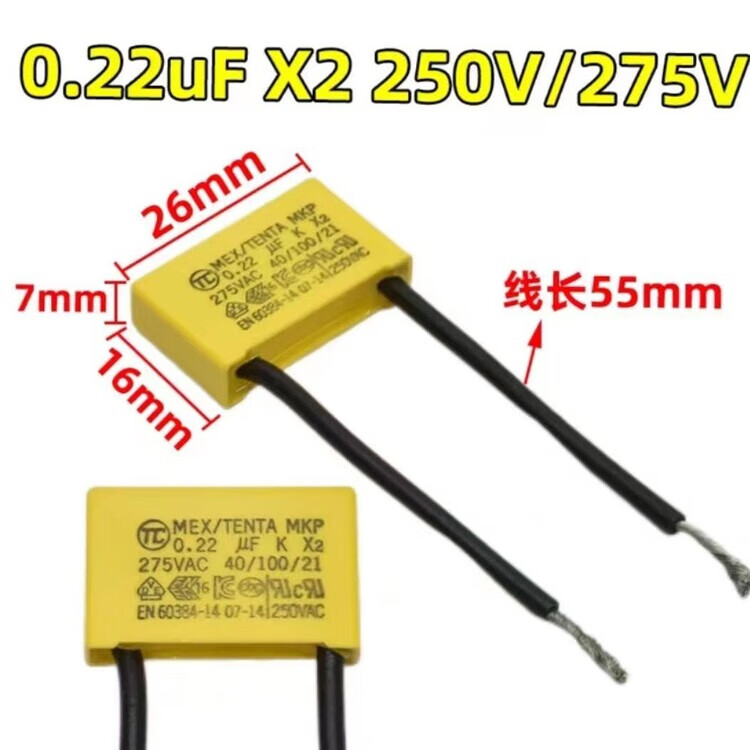 Safety capacitor Safety capacitor 0.1/0.15/0.22/0.33/0.68/1.0uF Vacuum cleaner water absorber hand drill capacitor 0.22UF black and red wire