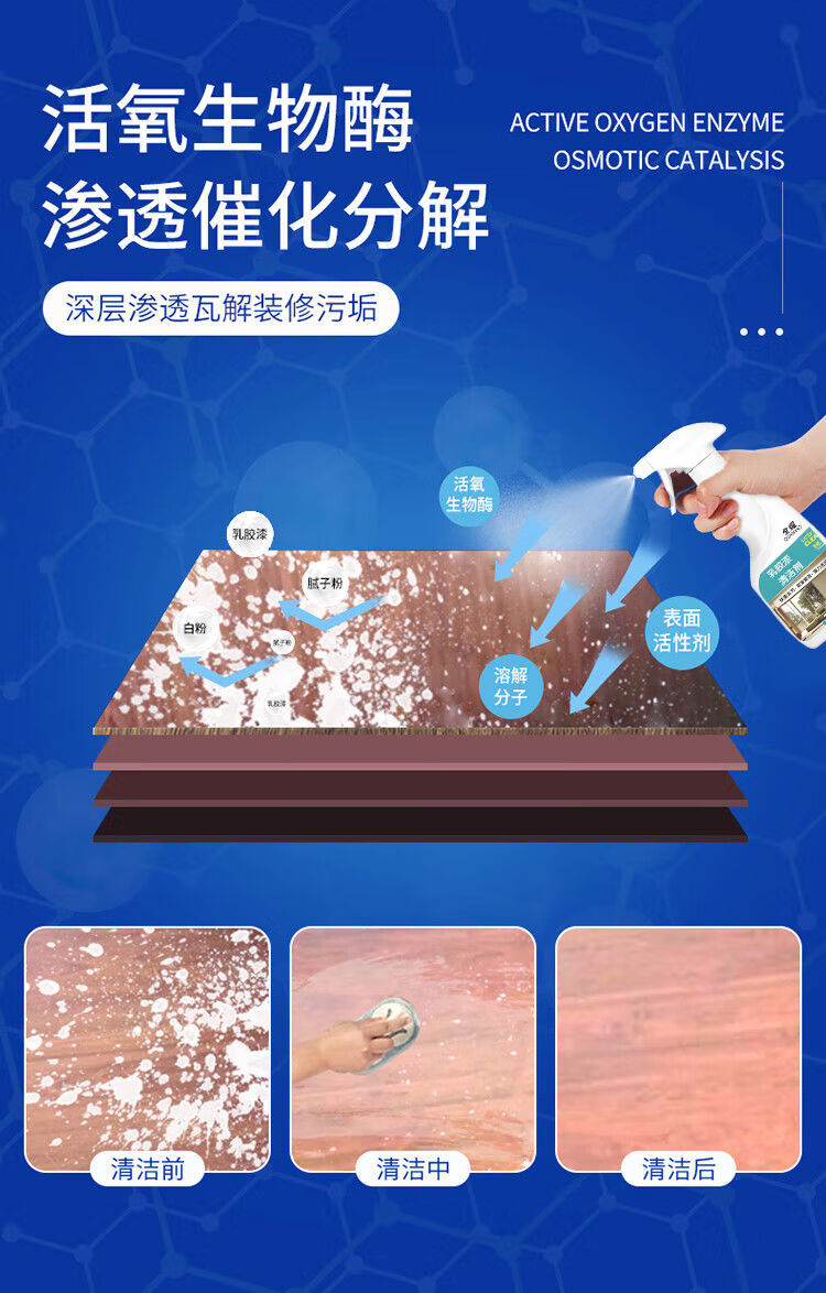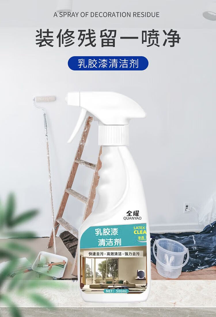 Latex paint cleaner, wall household decontamination, new house decoration, paint removal, indoor cleaning, putty powder removal, land reclamation, latex paint cleaner 500ml*1 bottle + with nozzle