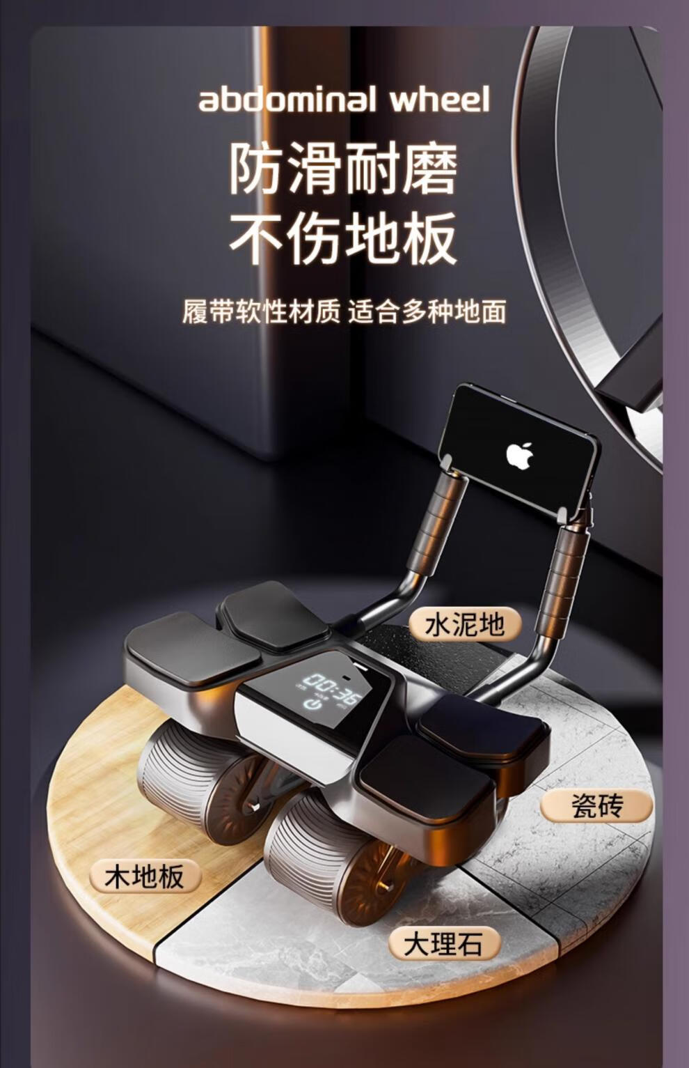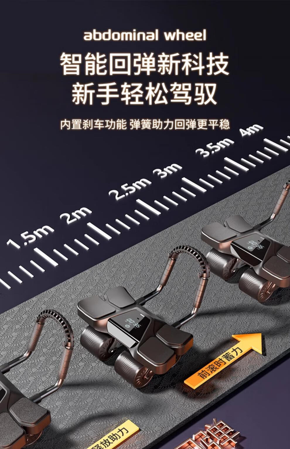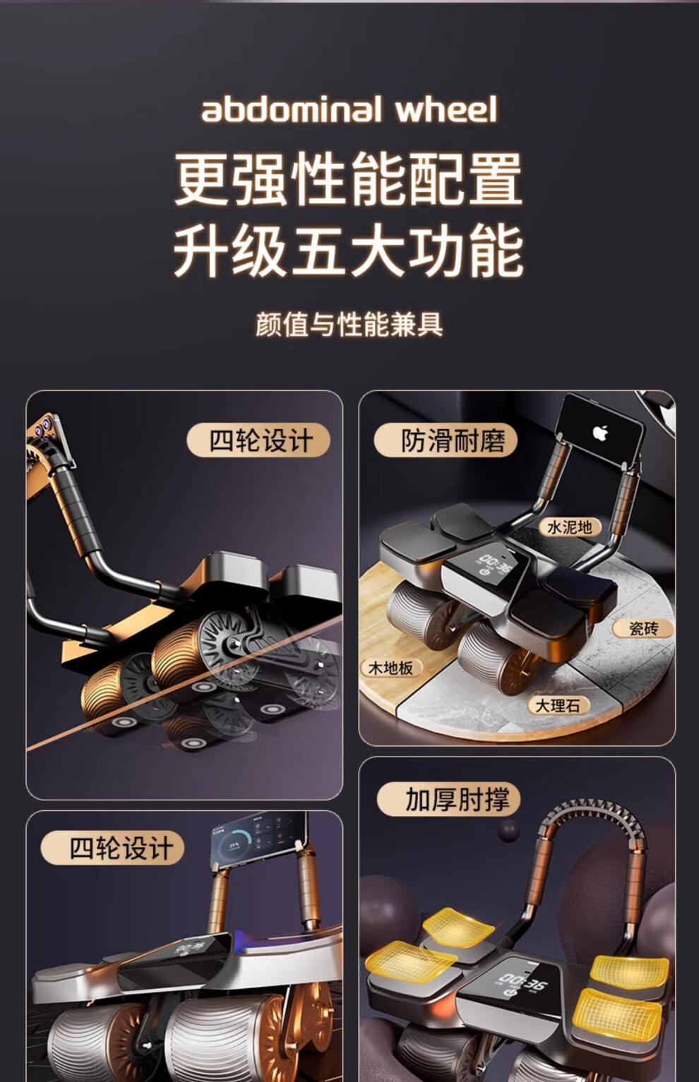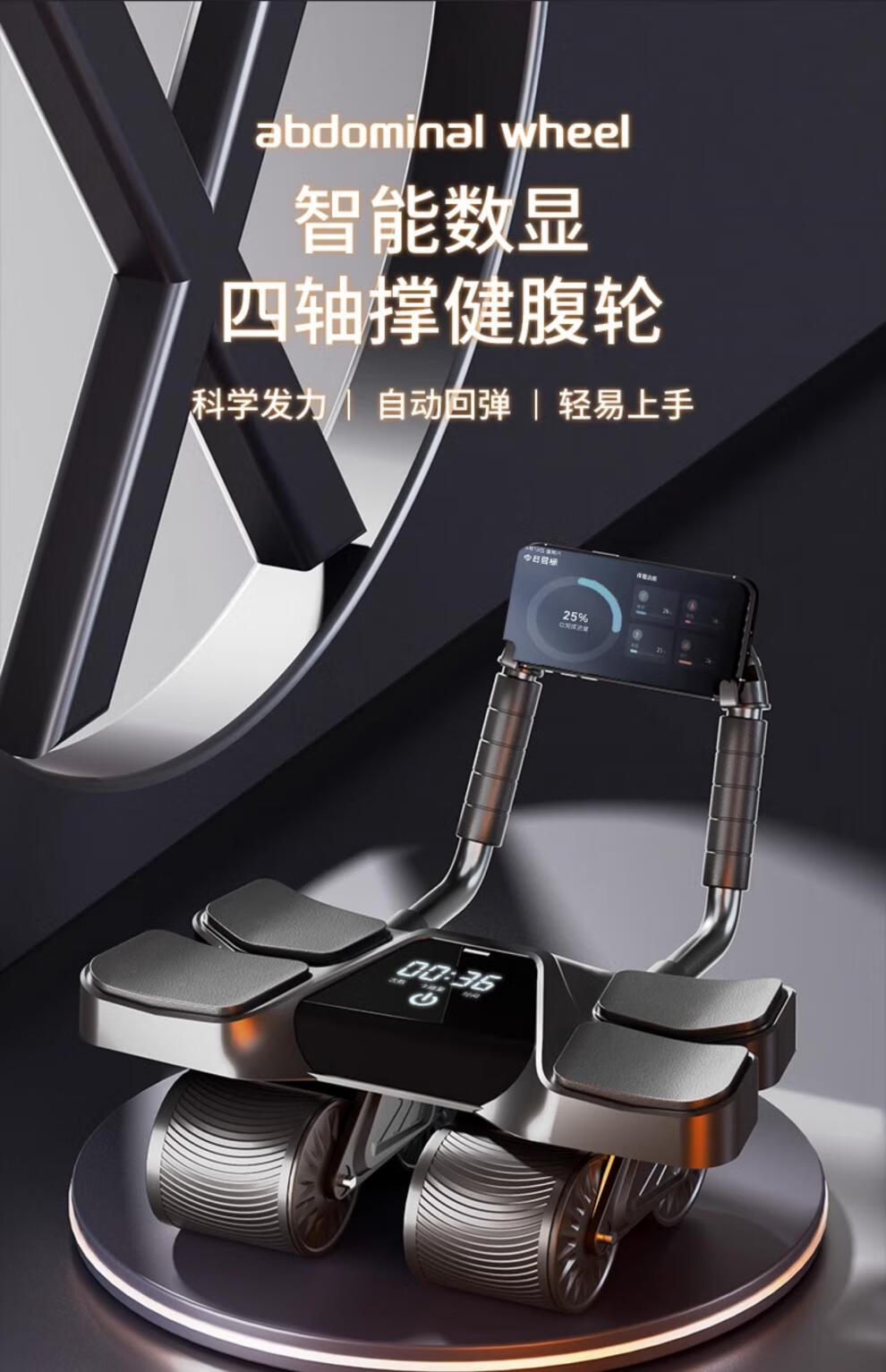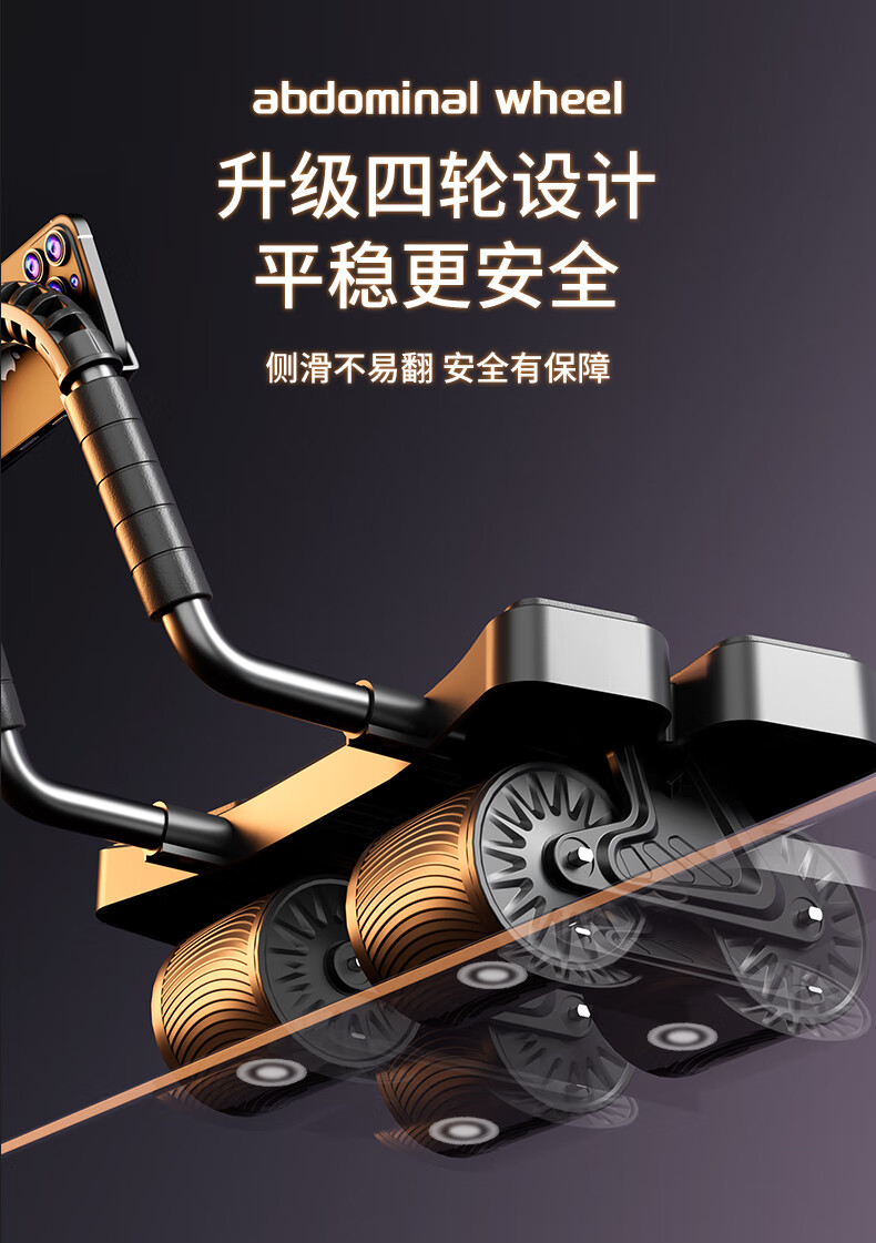 German quality four-wheel 2025 new automatic rebound abdominal wheel to train abdominal muscles for men, abdominal curling machine, slim belly artifact, flagship four-wheel four-elbow support-grey