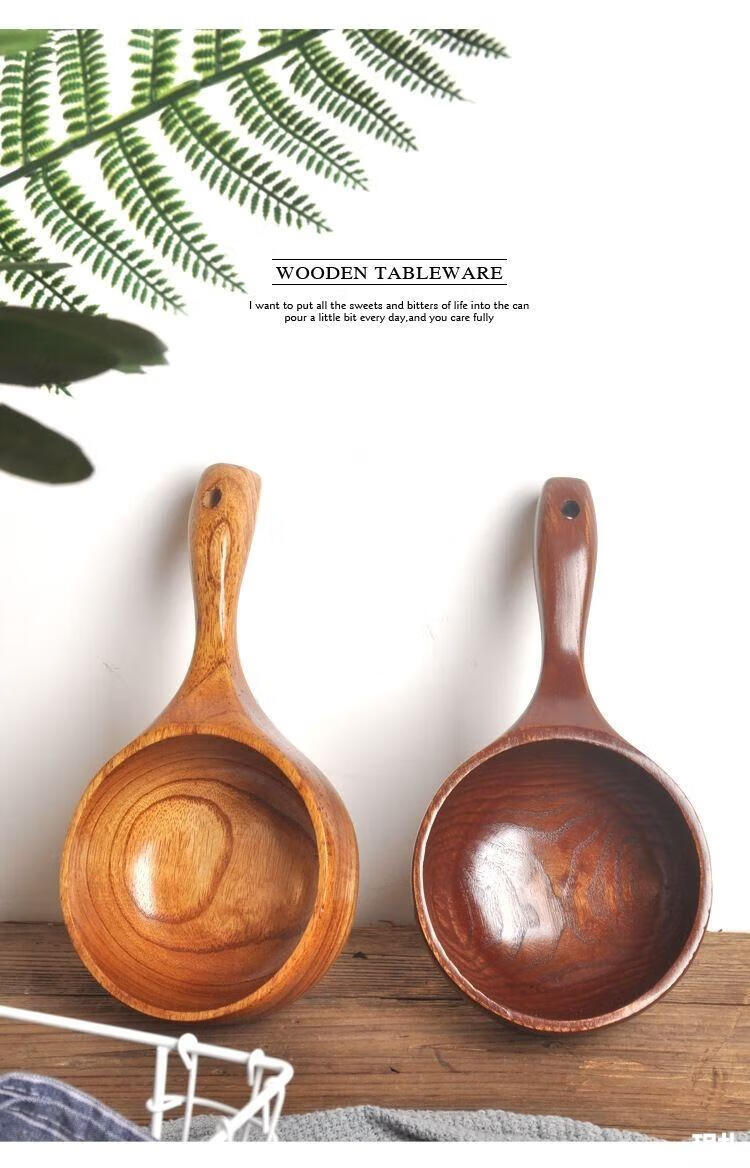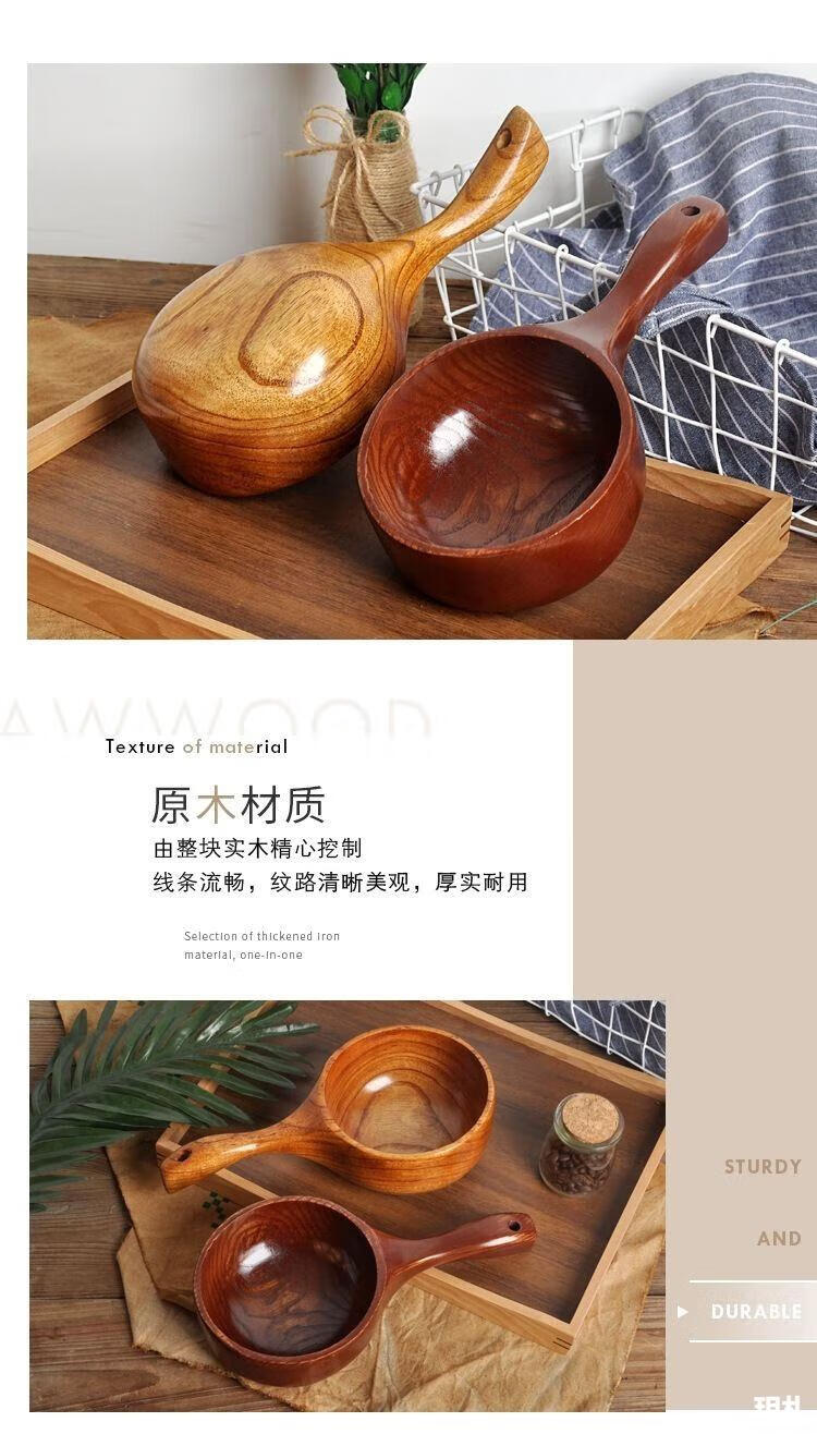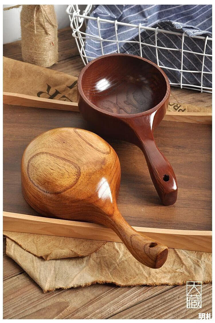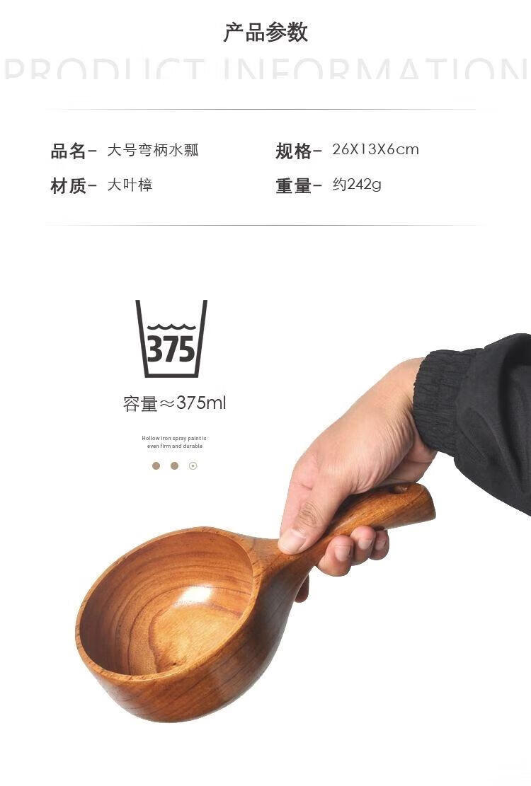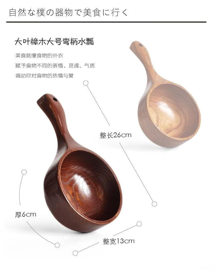 Water spoon Korean style whole wood handle solid wood measuring spoon large natural color large leaf camphor water scoop 375ml