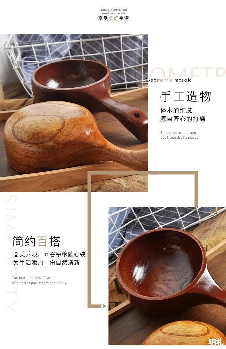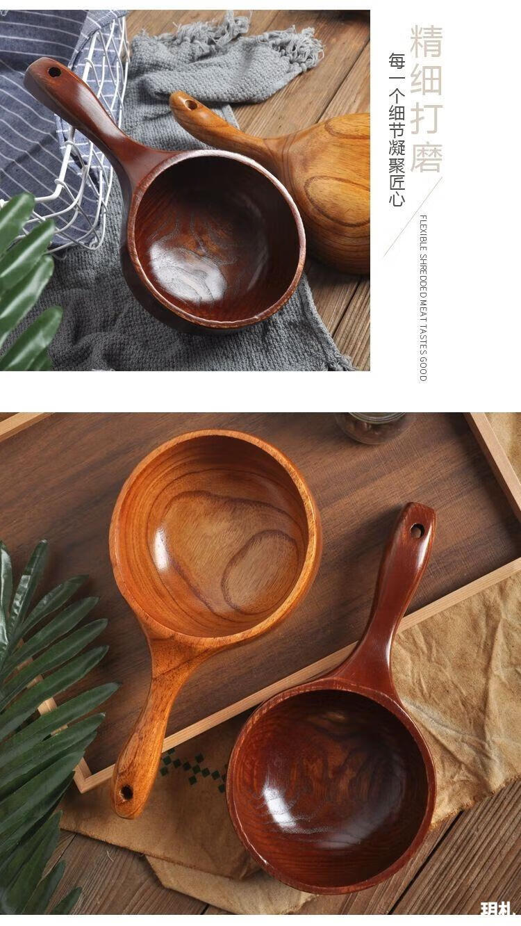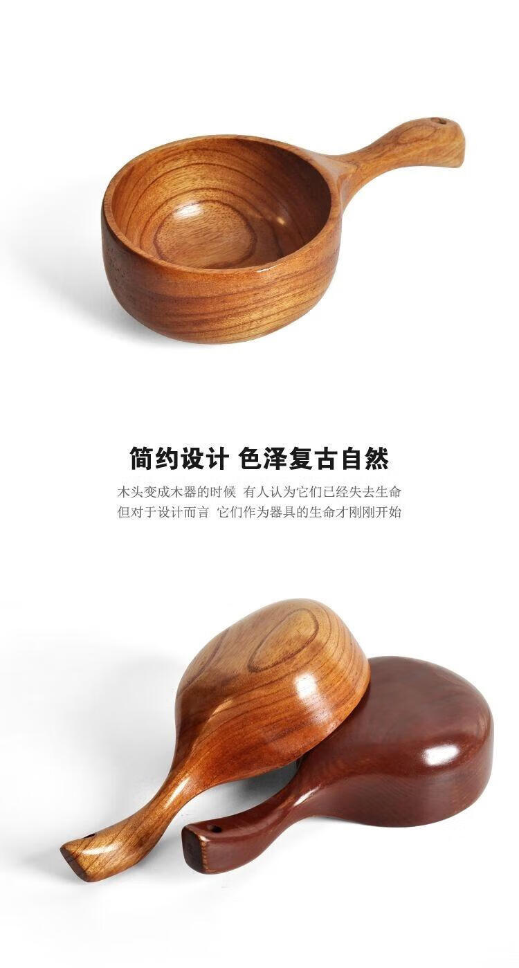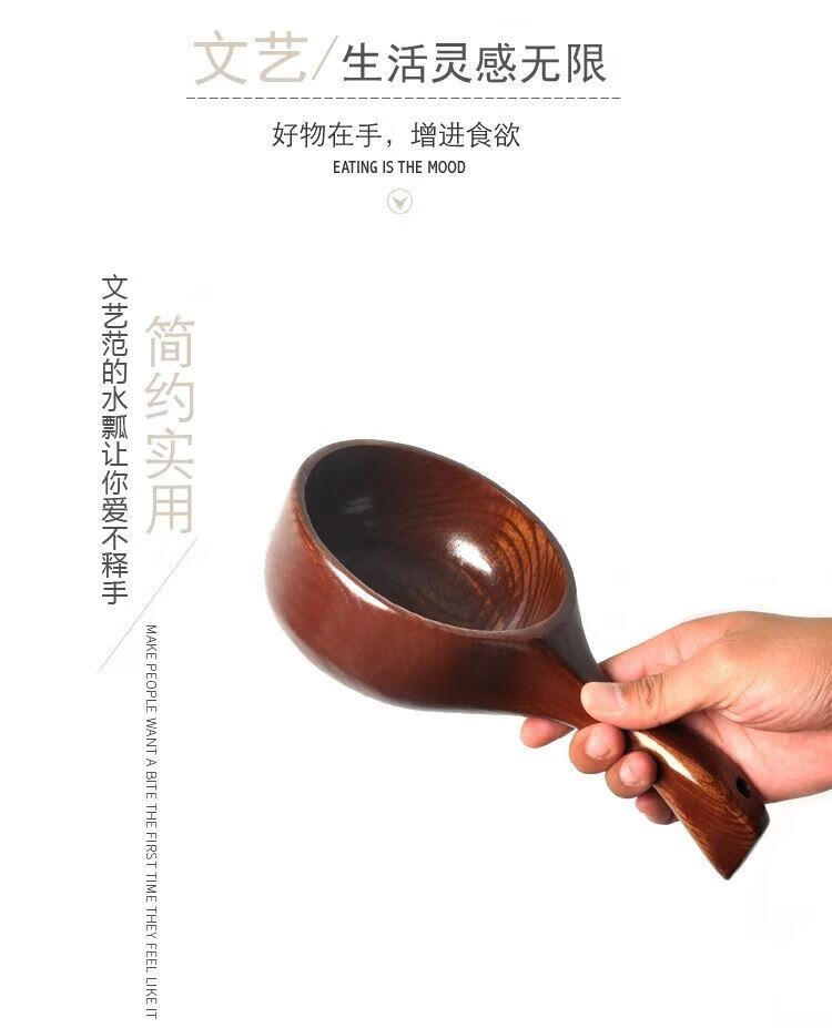 Water spoon Korean style whole wood handle solid wood measuring spoon large natural color large leaf camphor water scoop 375ml