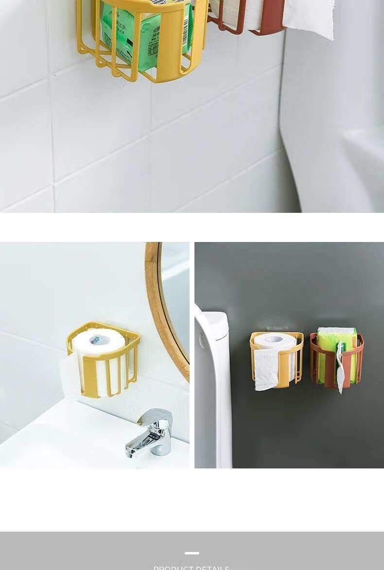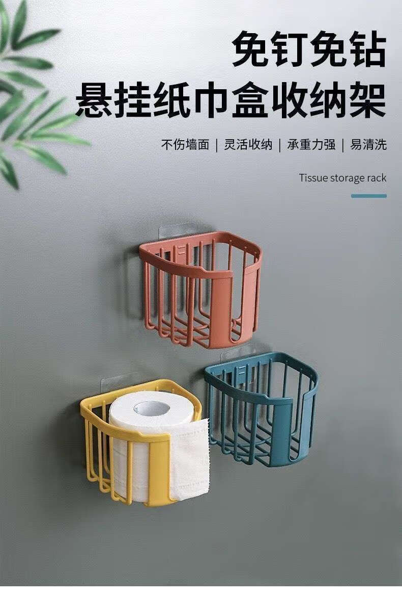 No punching toilet tissue box bathroom storage rack for toilet paper toilet paper roll wall hanging roll paper storage 1 strong sticker