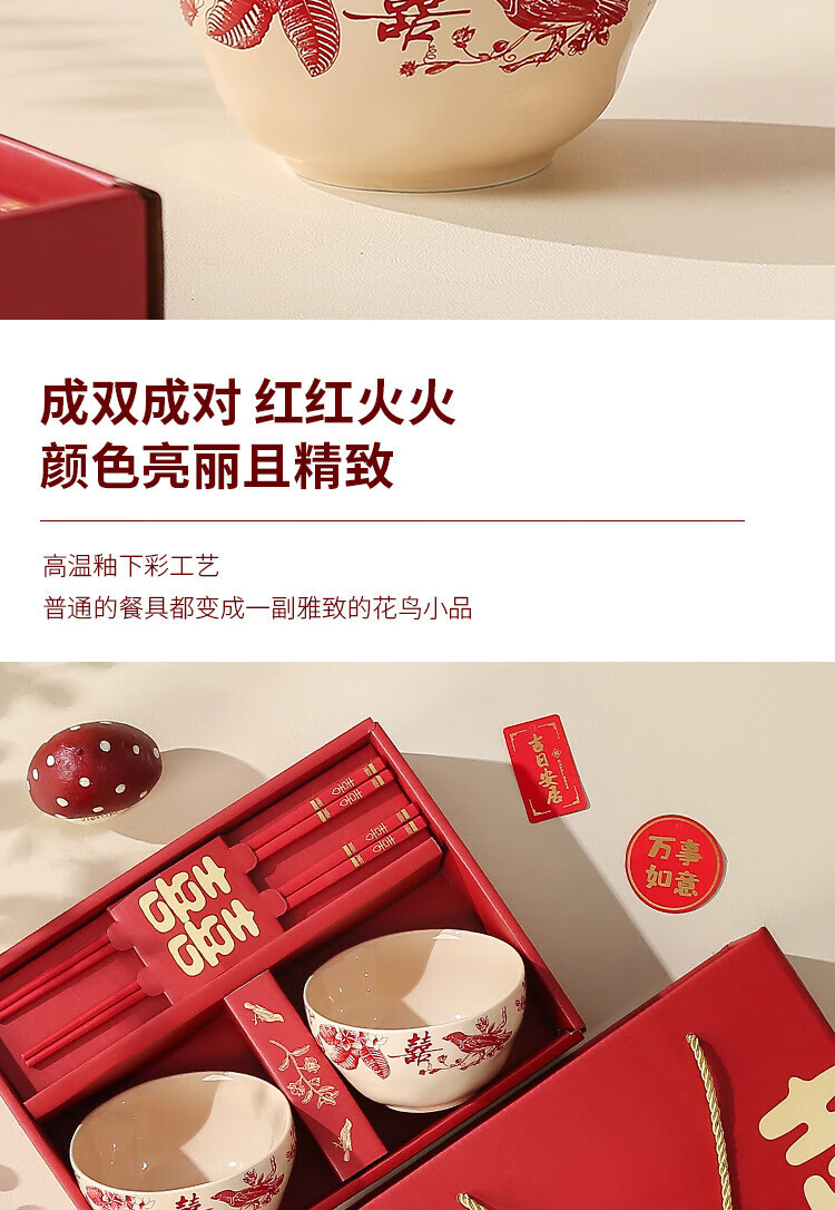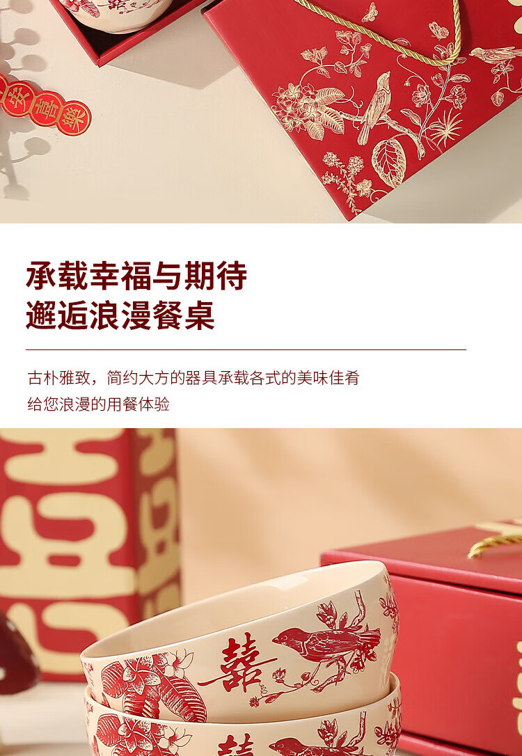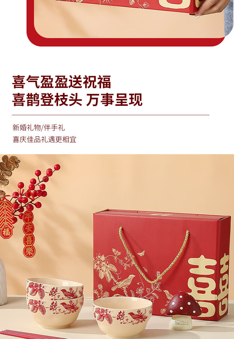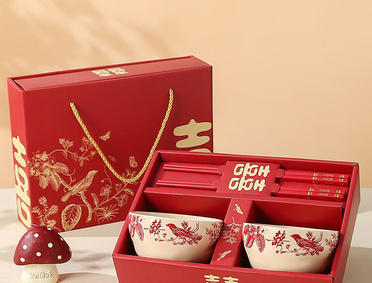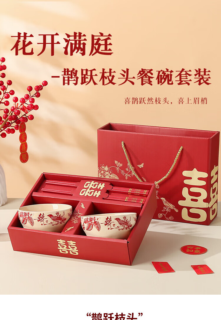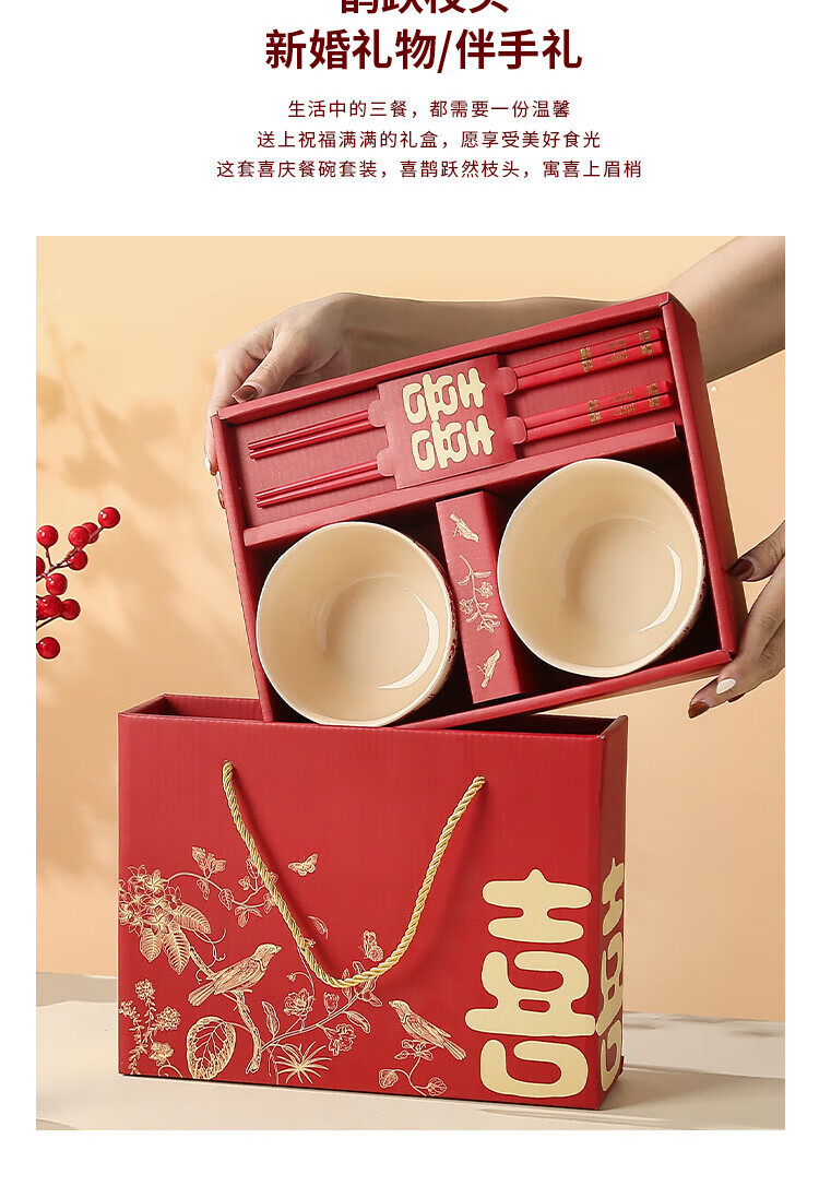 He Pei wedding bowl and chopsticks set wedding bowl souvenir engagement gift gift box thank you gift wedding gift wedding supplies Magpie 2 bowls 2 chopsticks high-end gift box