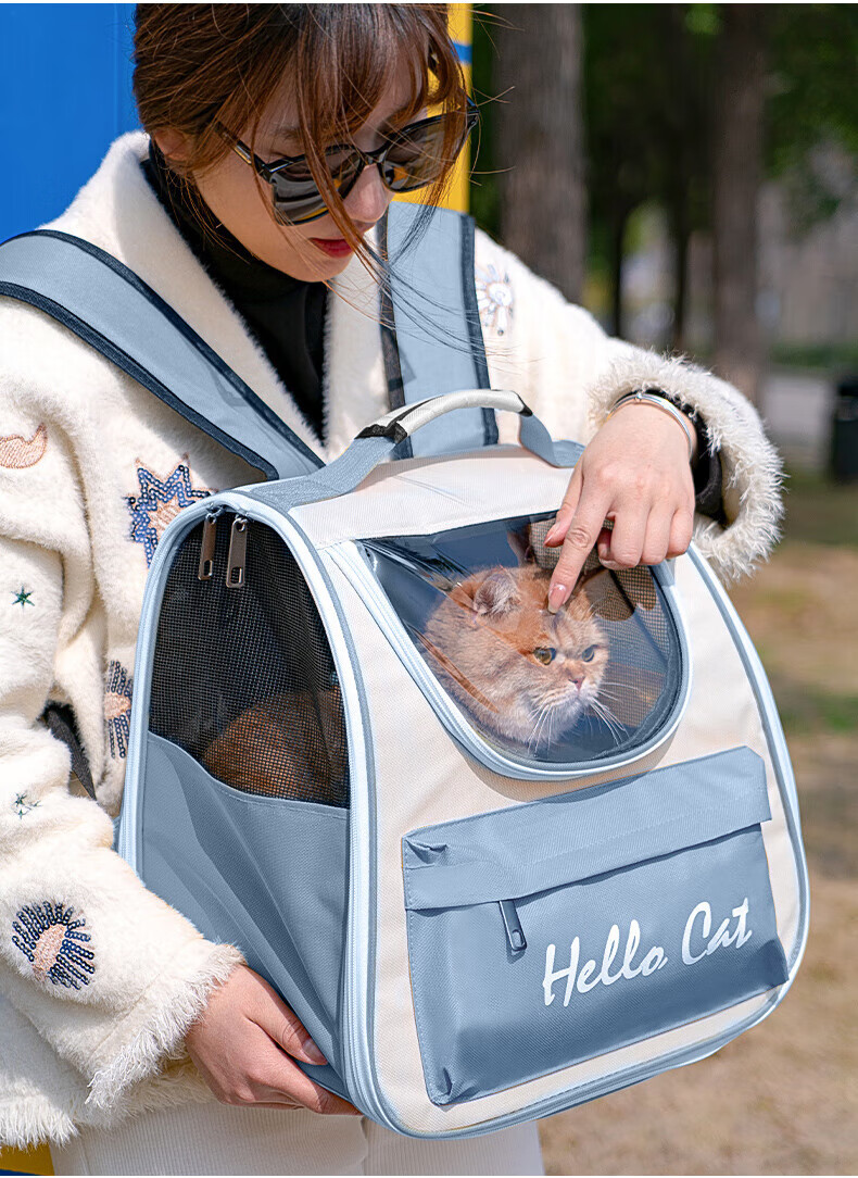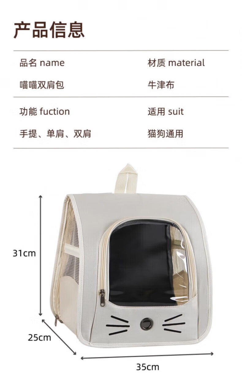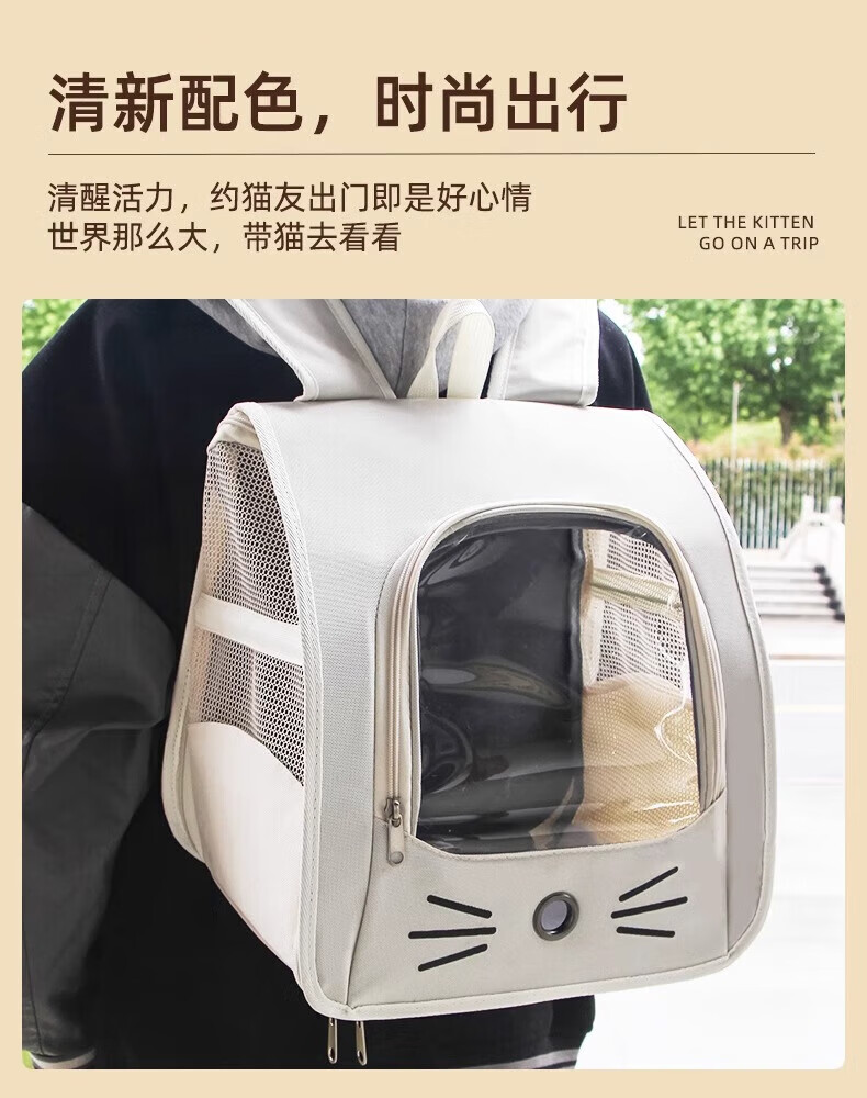 Zhizhou Cat Bag Outdoor Portable Bag Backpack Large 20 catties Pet Cat Bag Space Capsule Dog Car Air Case Beige Breathable and Not Stuffy + Side Storage Universal for Cats and Dogs up to 15 catties Can be carried on both shoulders/hand-held