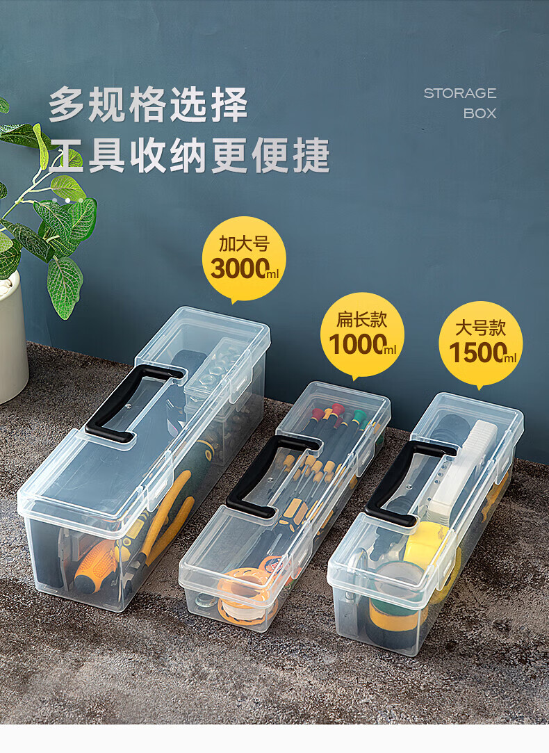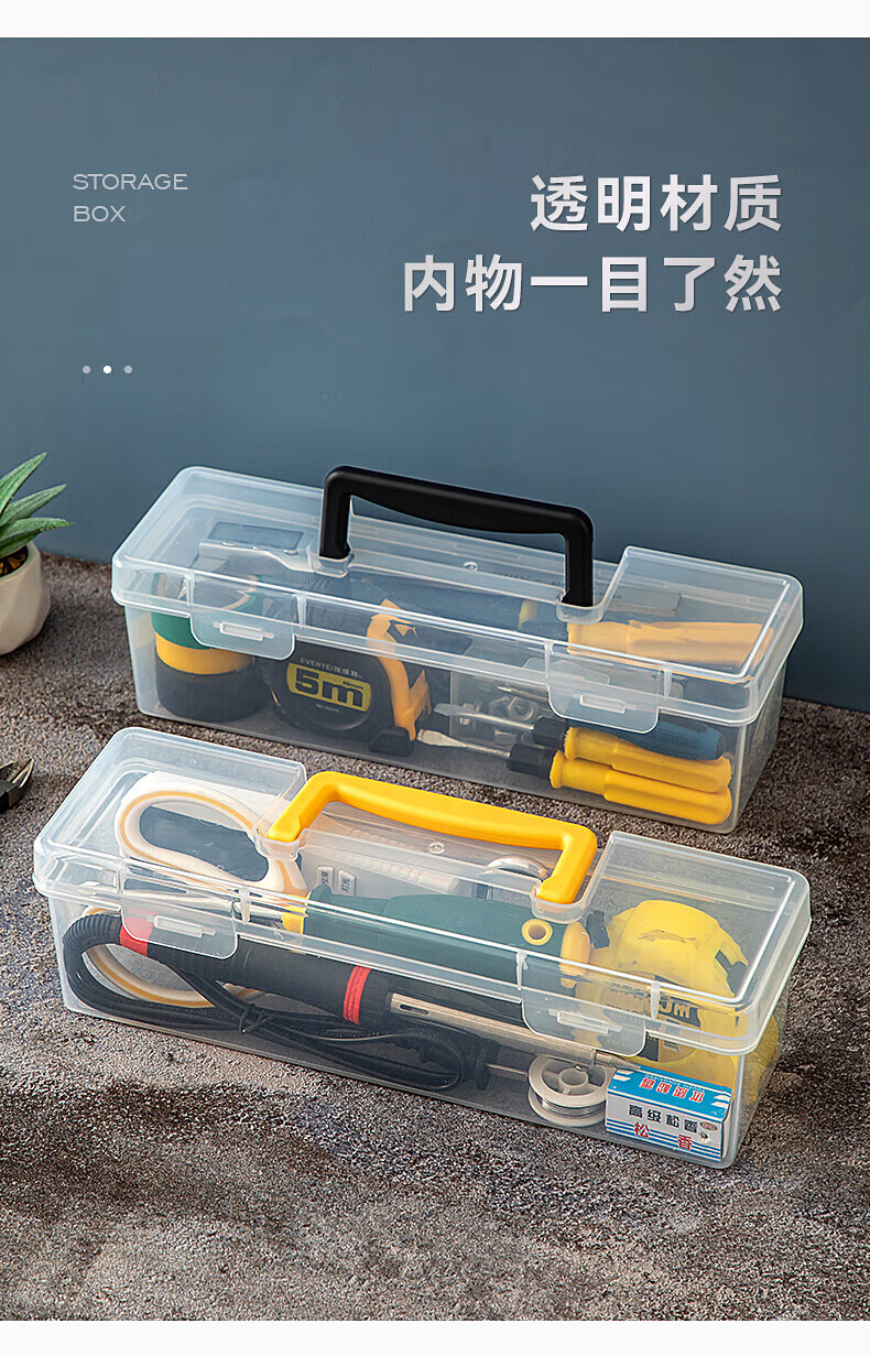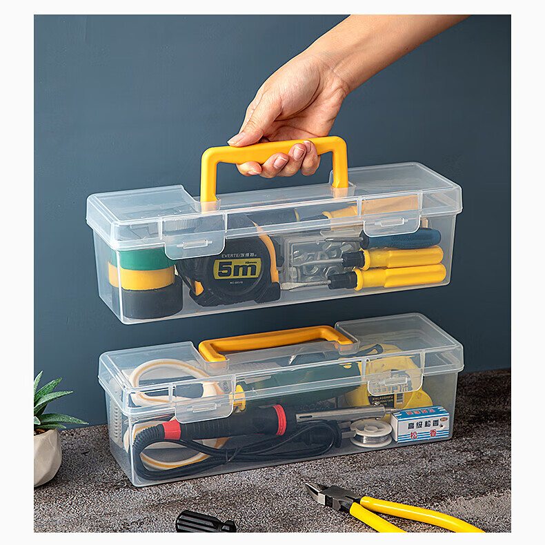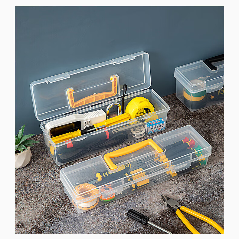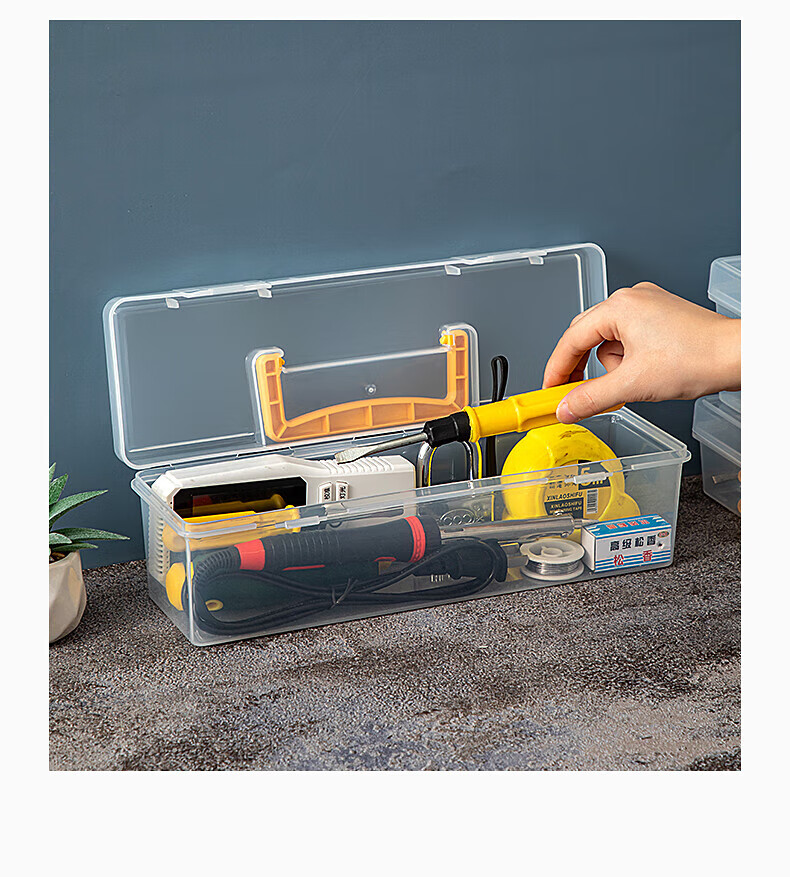 Jiyunmao household hardware tool box transparent rectangular portable screw-type tool box drill bit storage box plastic suitcase extra large black 1 piece