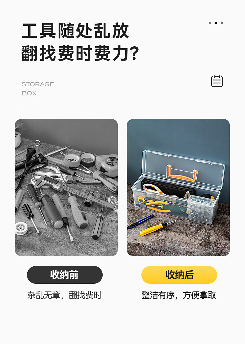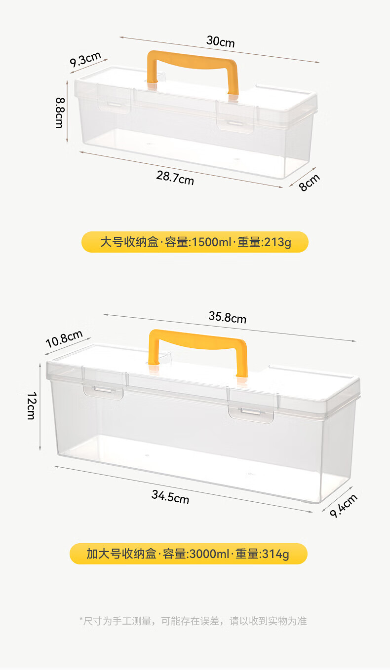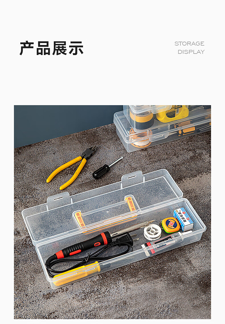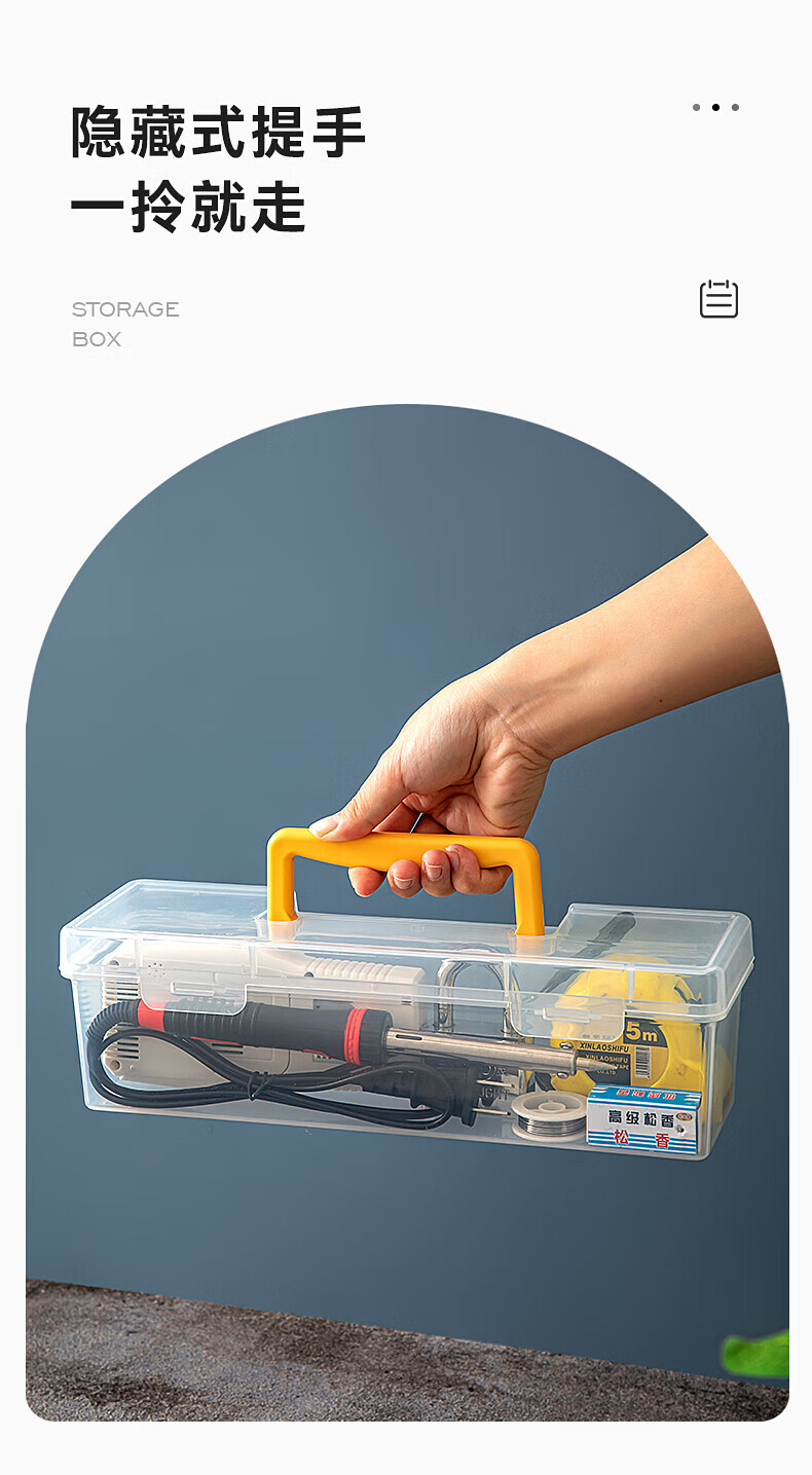 Jiyunmao household hardware tool box transparent rectangular portable screw-type tool box drill bit storage box plastic suitcase extra large black 1 piece