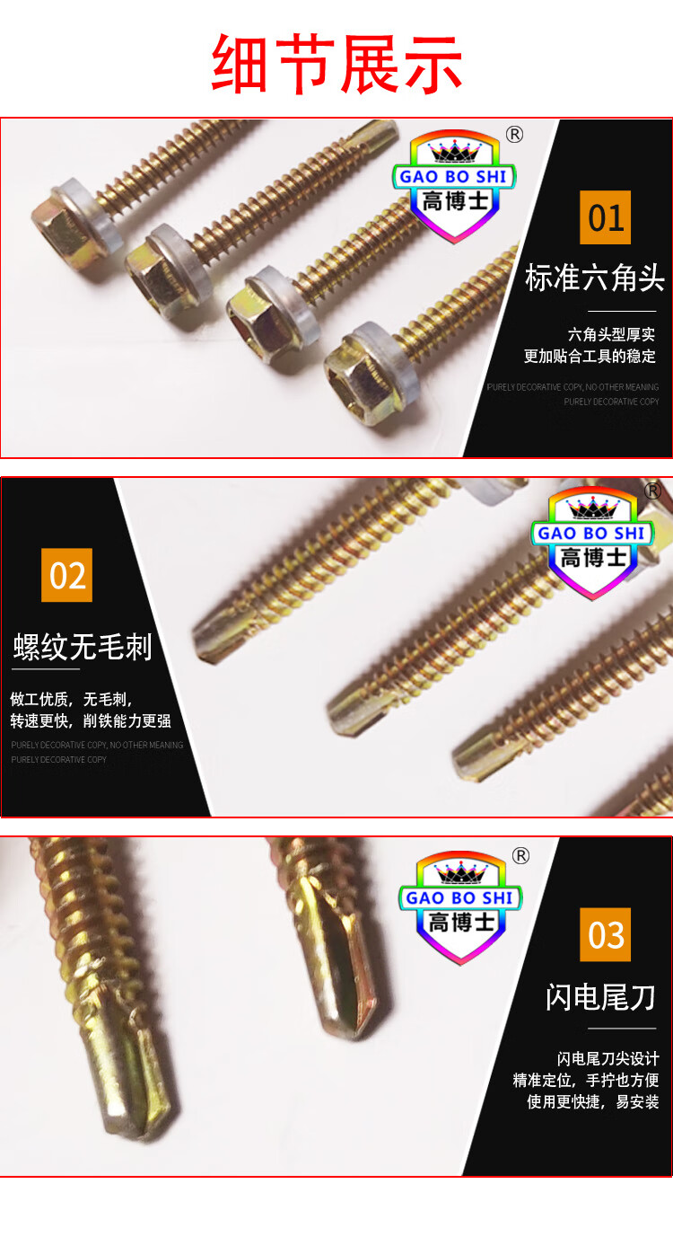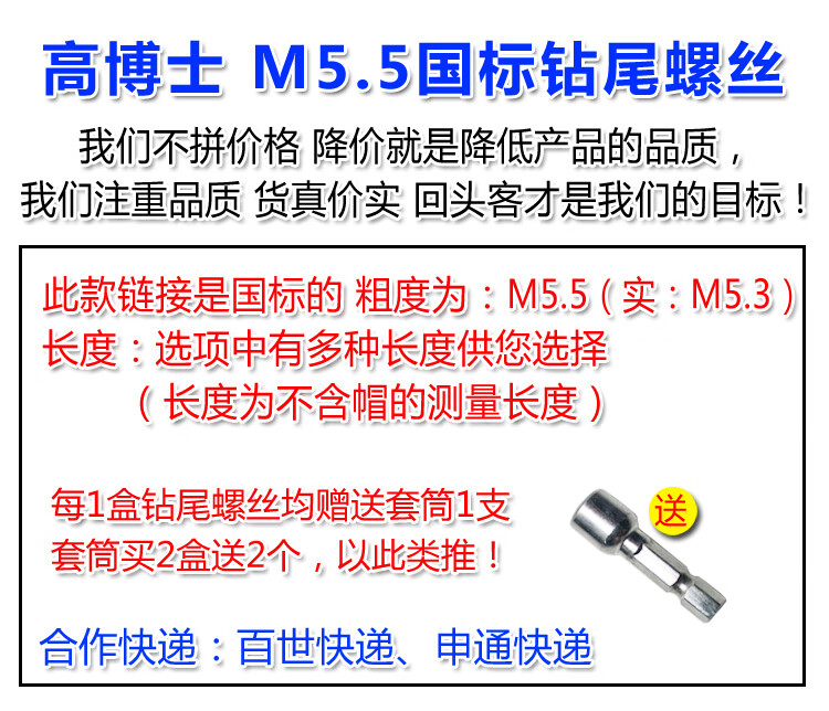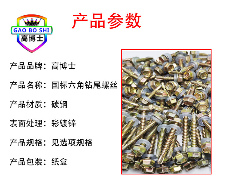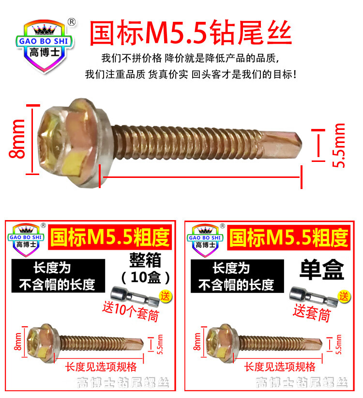 Bingyu national standard M5.5 external hexagonal drill tail wire self-tapping screw self-drilling dovetail screw galvanized color steel tile nails M5.5*19mm (full box of 6000 pieces)