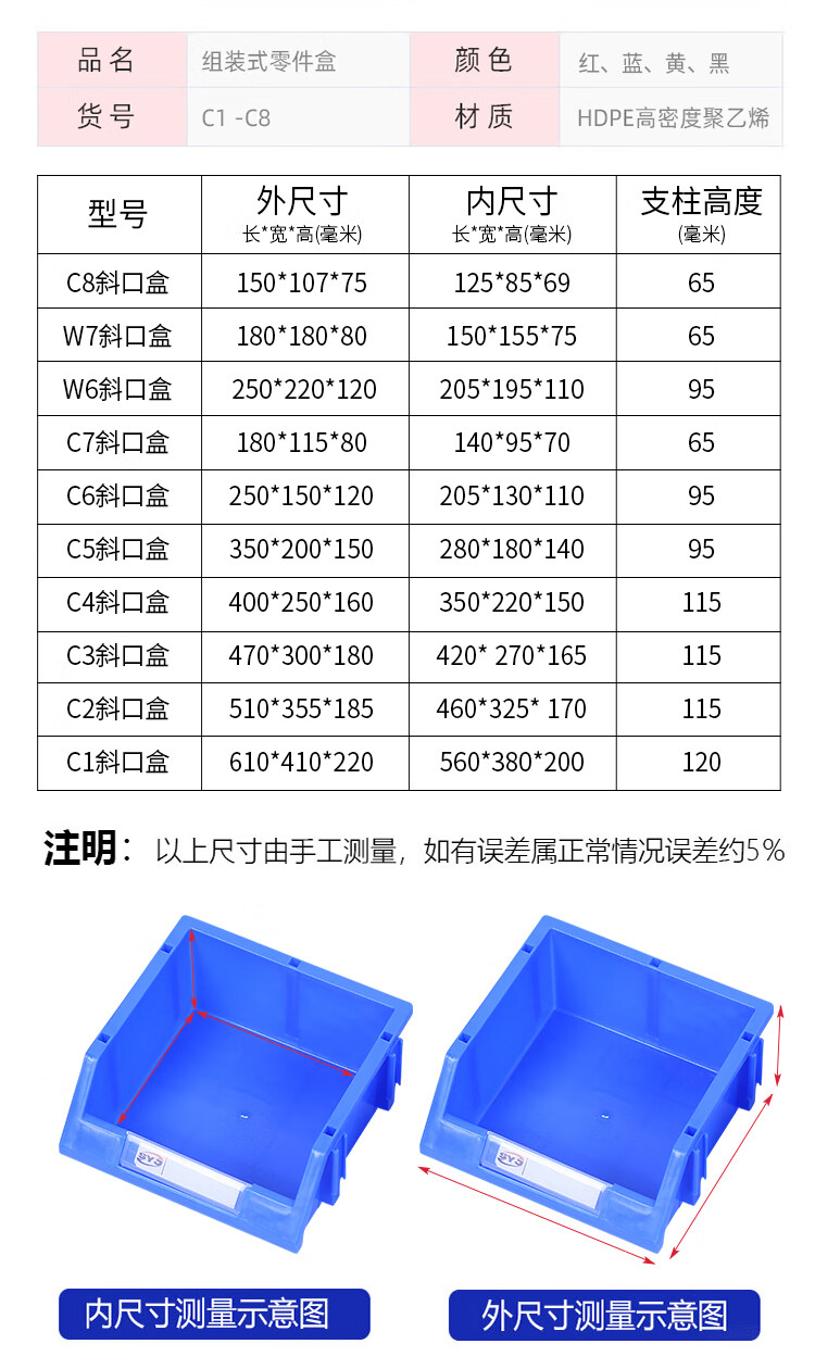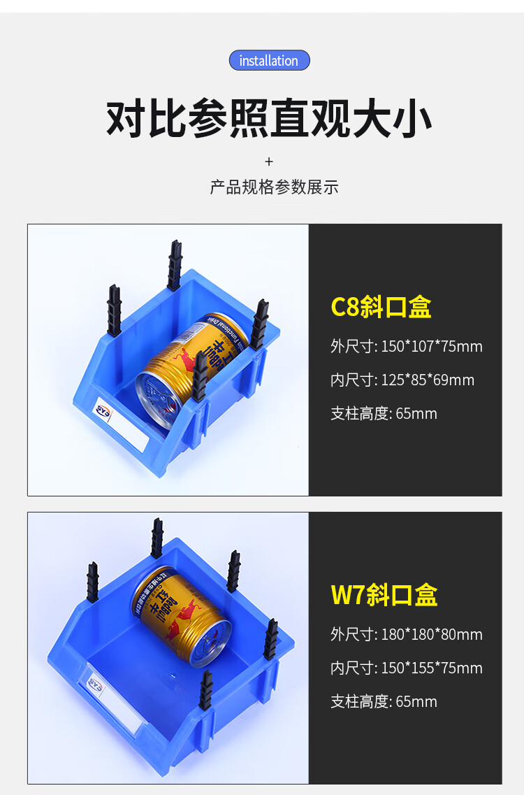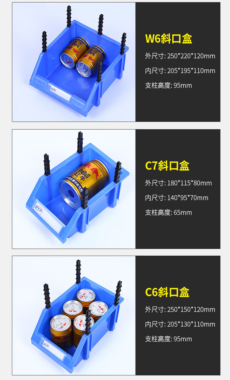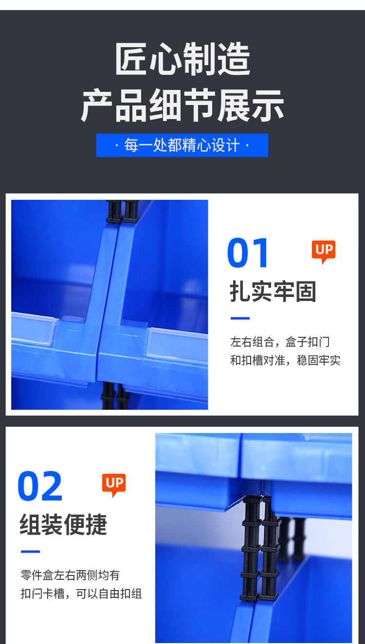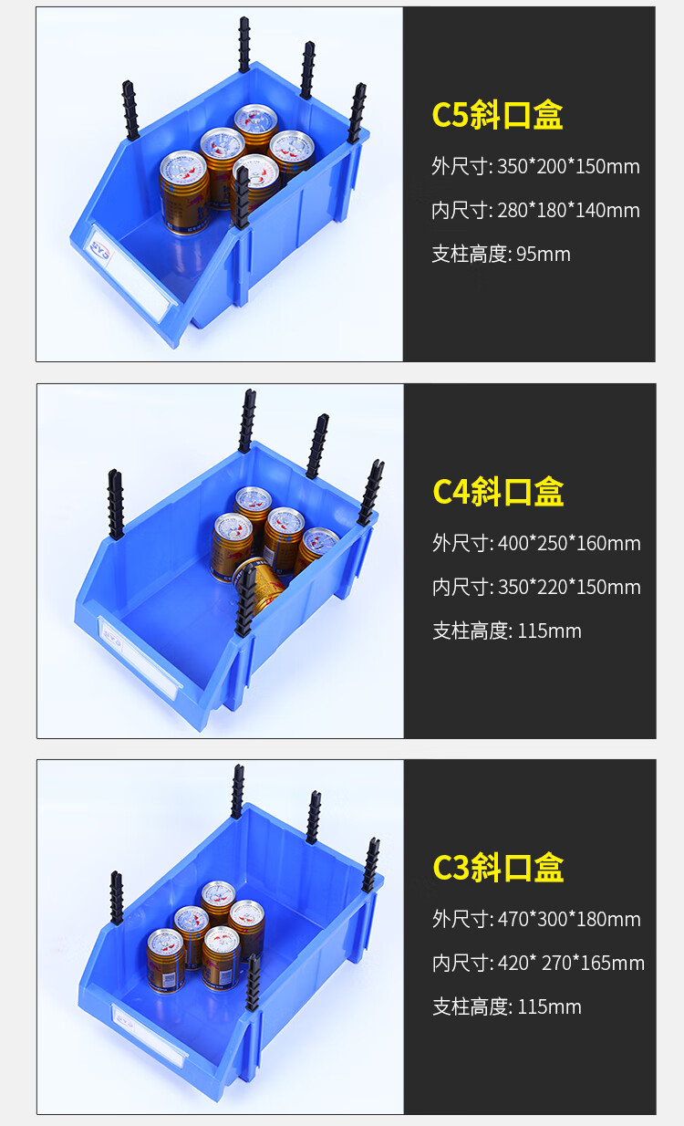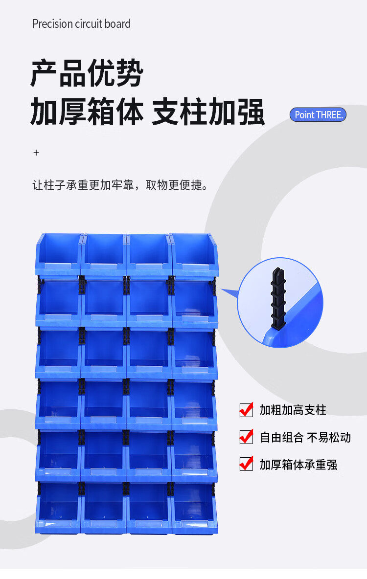 Parts box plastic combined storage box shelf oblique mouth classification material box screw box component box tool box A8 blue 155*107*75MM new material thickened