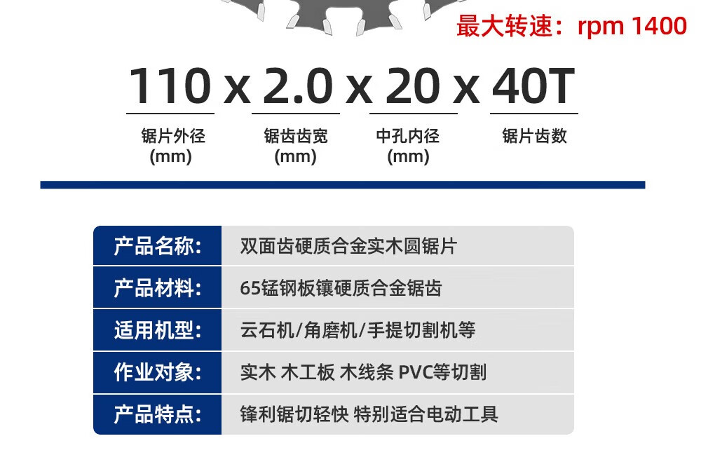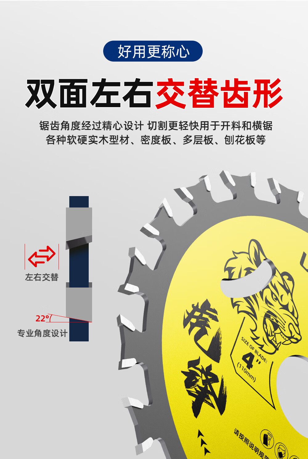 Lansheng two-way saw blade for woodworking 4-inch multi-function double-sided tooth PVC portable saw angle grinder wood board cutting blade Hufeng 110*2.0*20 left and right alternating teeth 10 pieces
