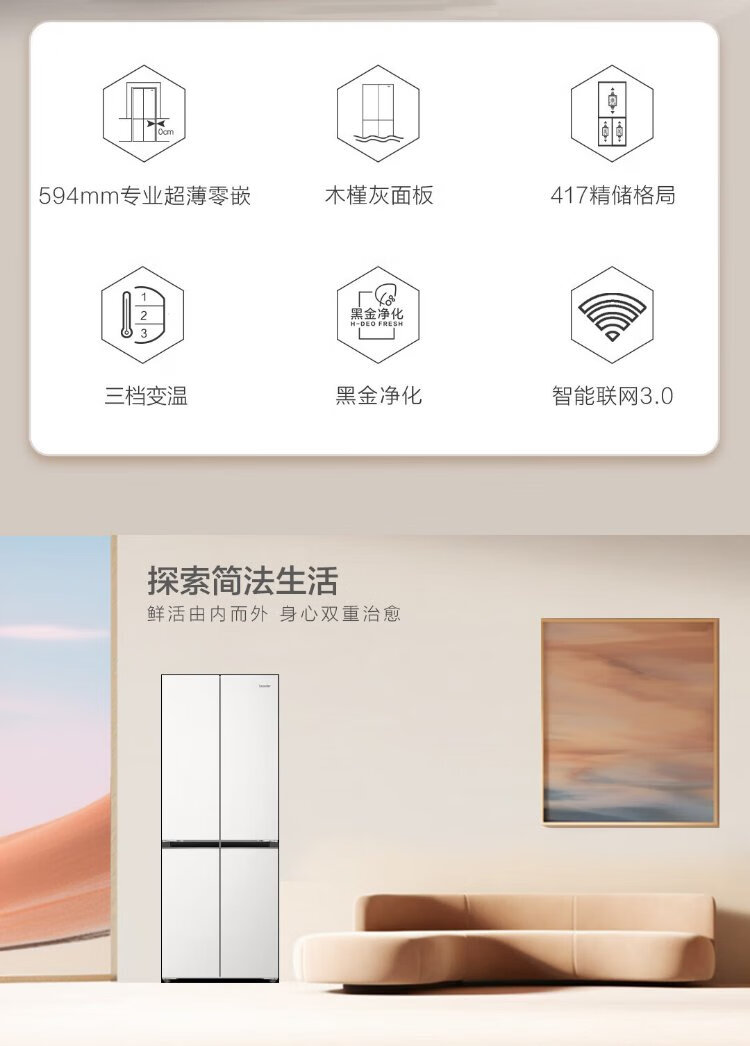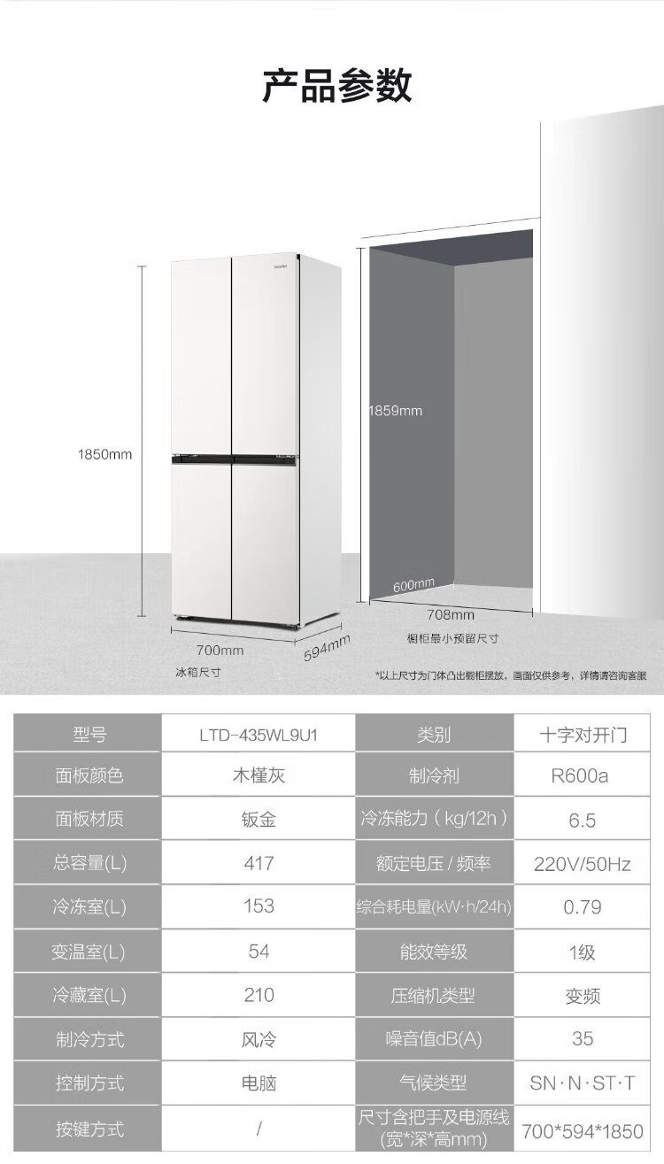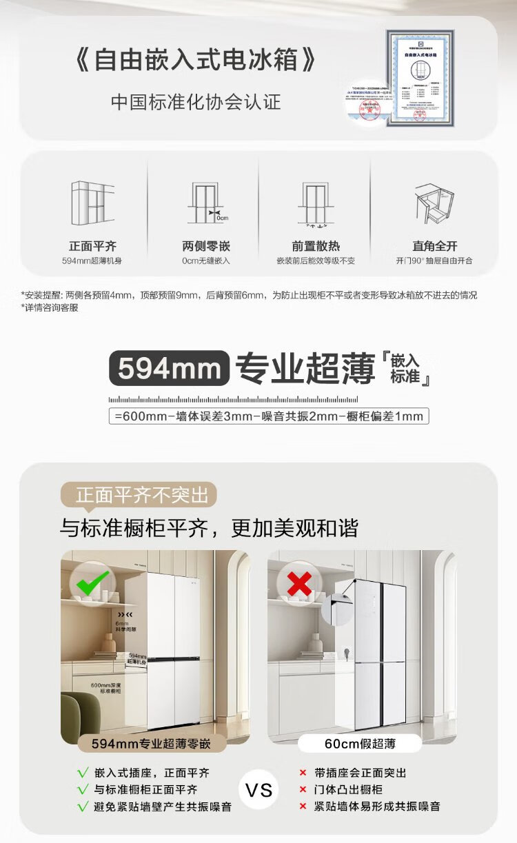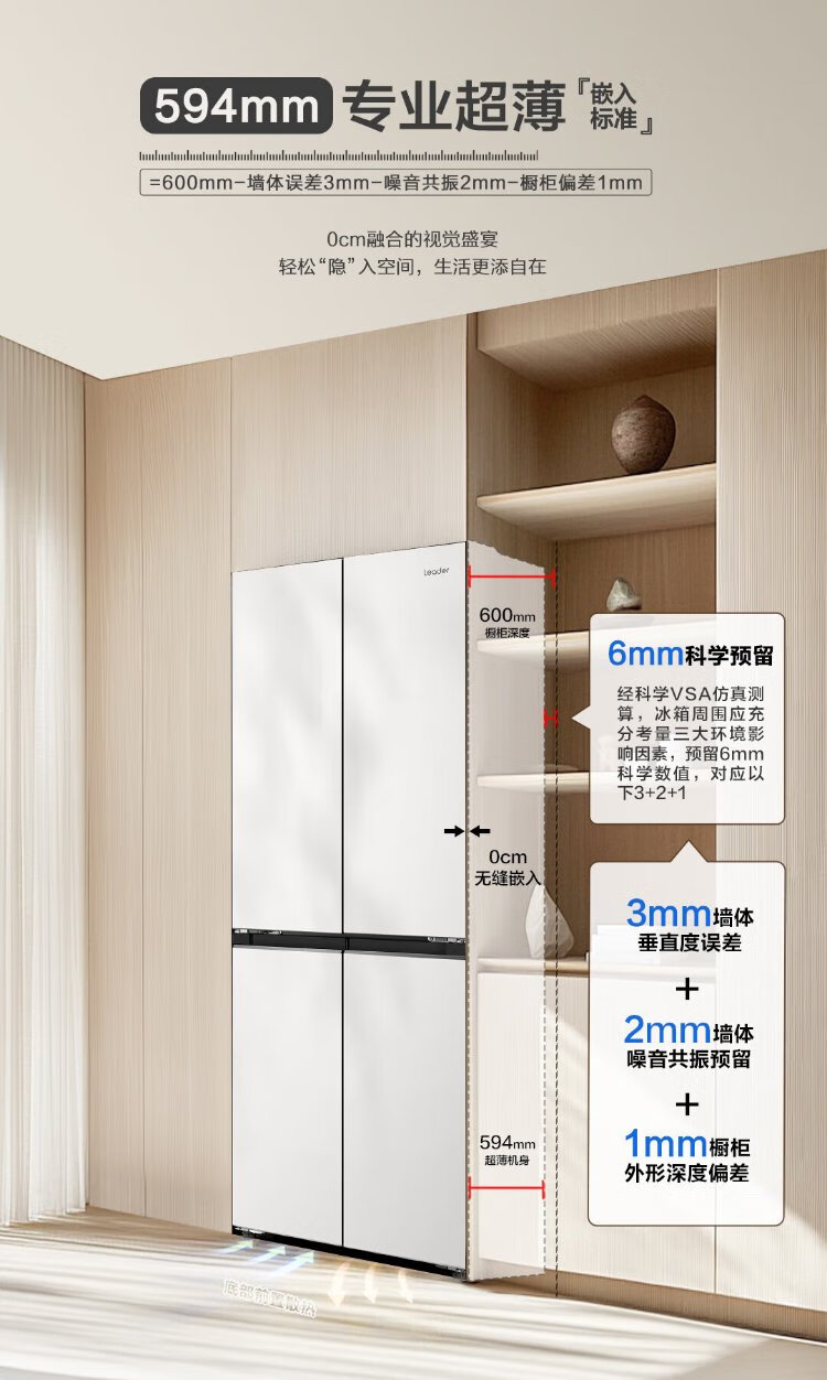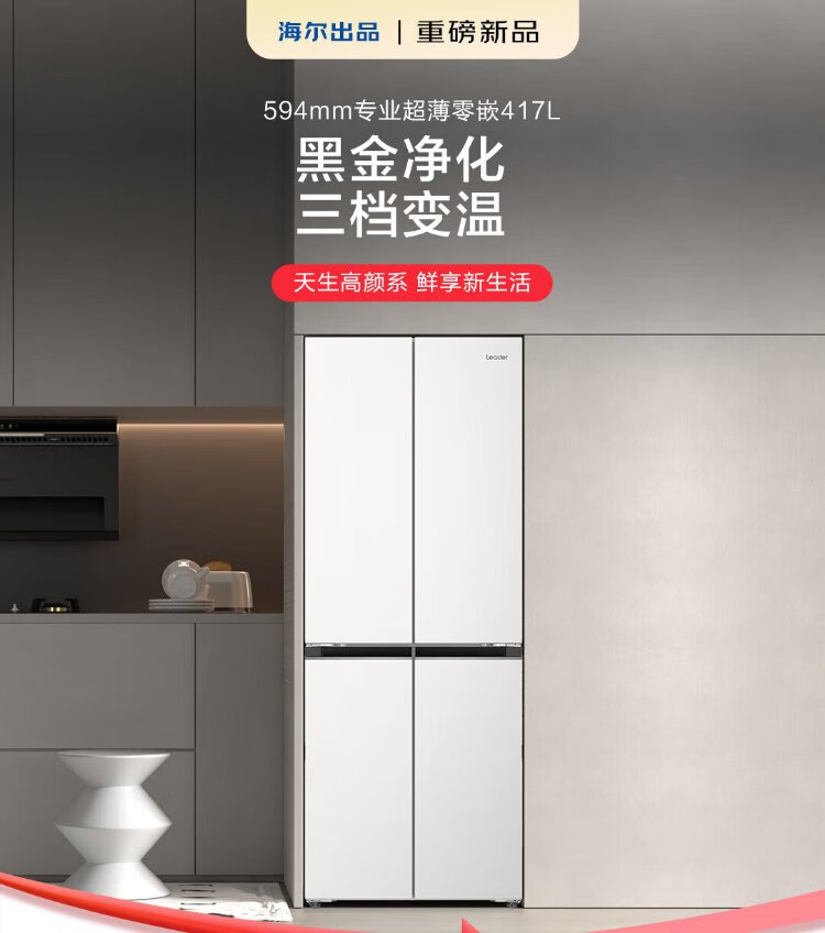 Haier refrigerator cross door 435 ultra-thin zero-embedded 417-liter side-by-side door dual-frequency air-cooled frost-free household refrigerator first-class energy efficiency state subsidy trade-in 594mm ultra-thin zero-embedded + black gold purification + three-speed temperature change