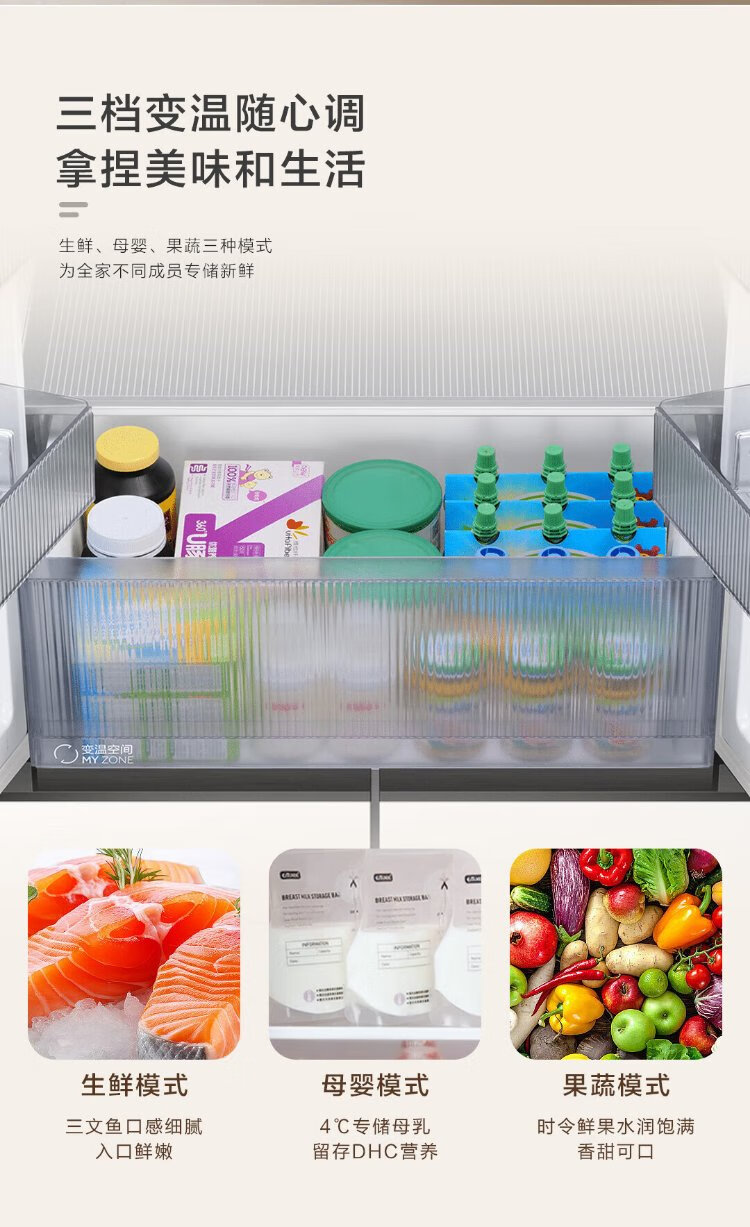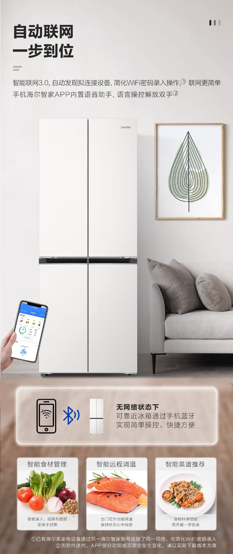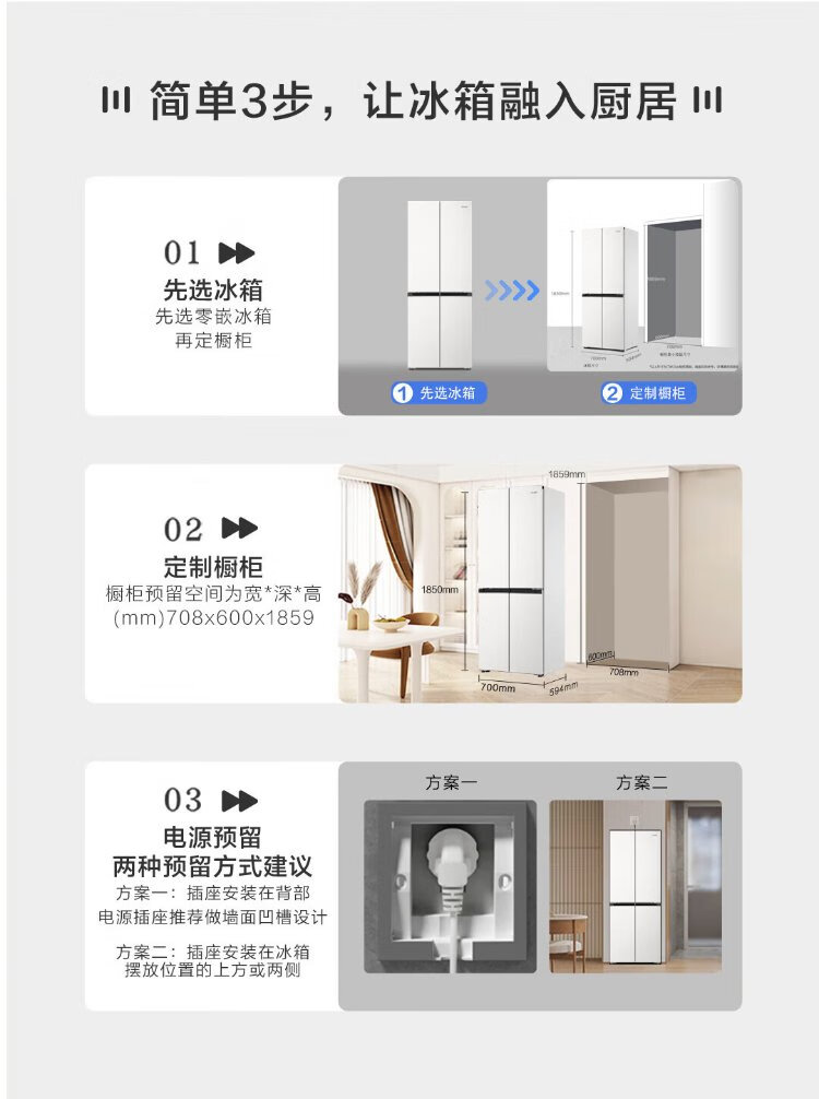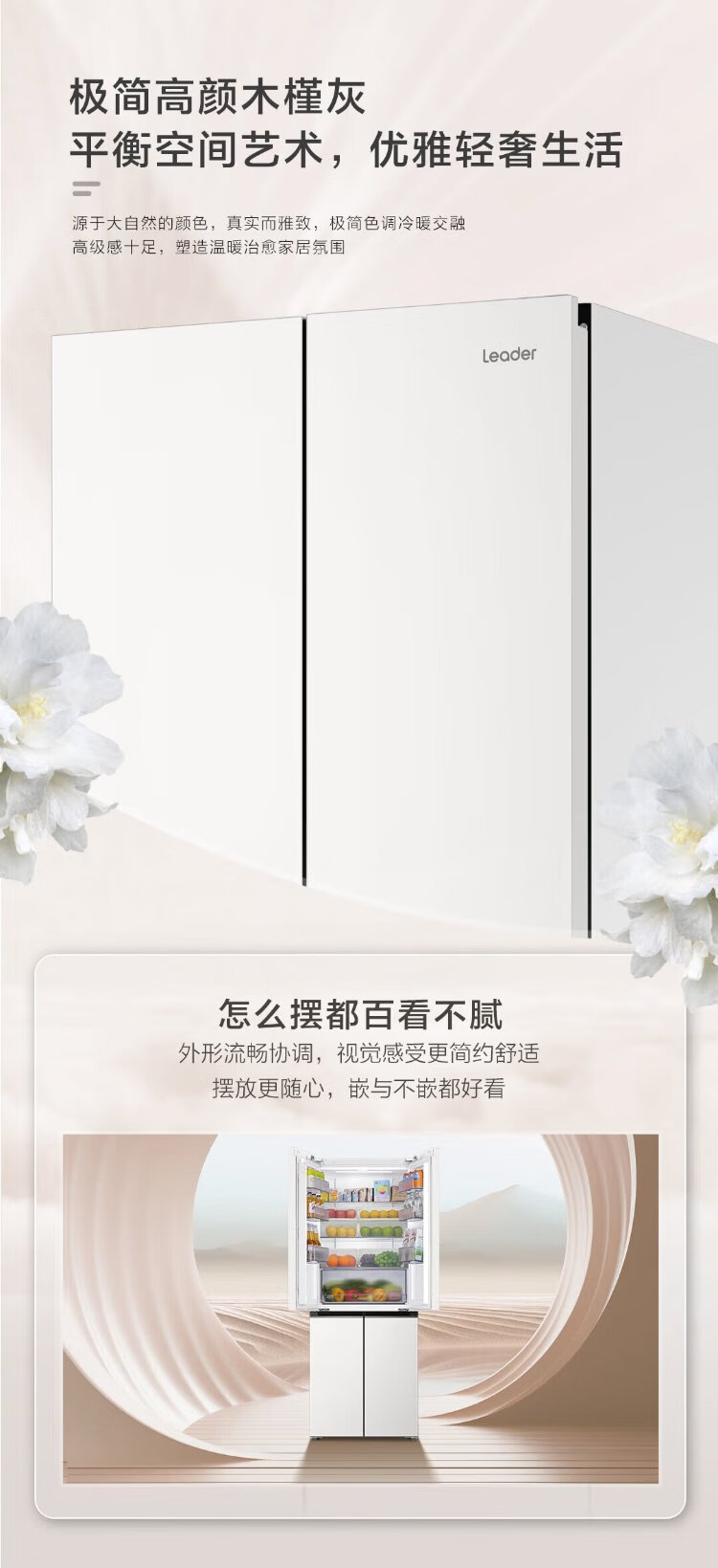 Haier refrigerator cross door 435 ultra-thin zero-embedded 417-liter side-by-side door dual-frequency air-cooled frost-free household refrigerator first-class energy efficiency state subsidy trade-in 594mm ultra-thin zero-embedded + black gold purification + three-speed temperature change