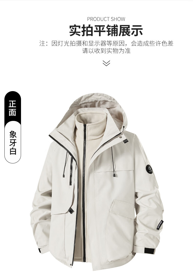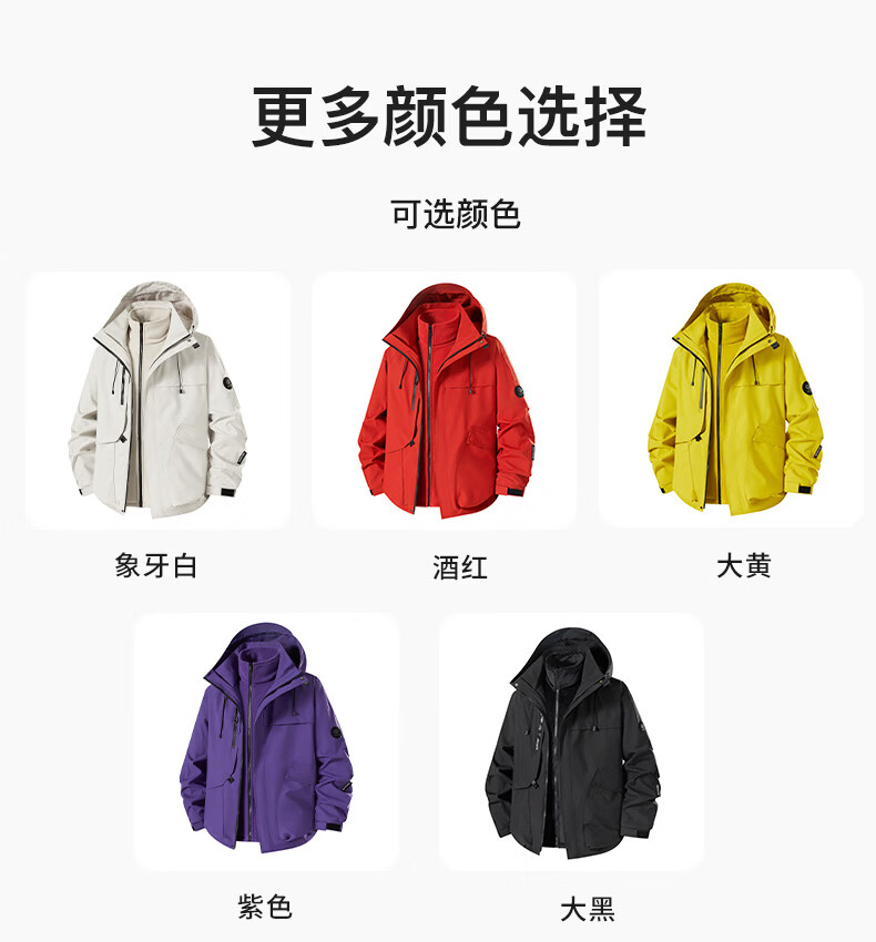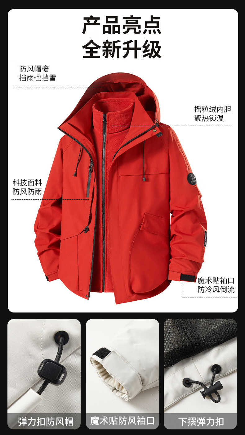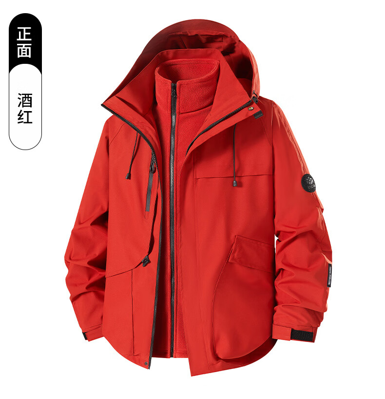 NASA URBAN Jacket Men's and Women's Outdoor Three-in-One Jacket Spring, Autumn and Winter Removable Liner Windproof and Waterproof Thickened Jacket Winter Red XL (140-160 catties)