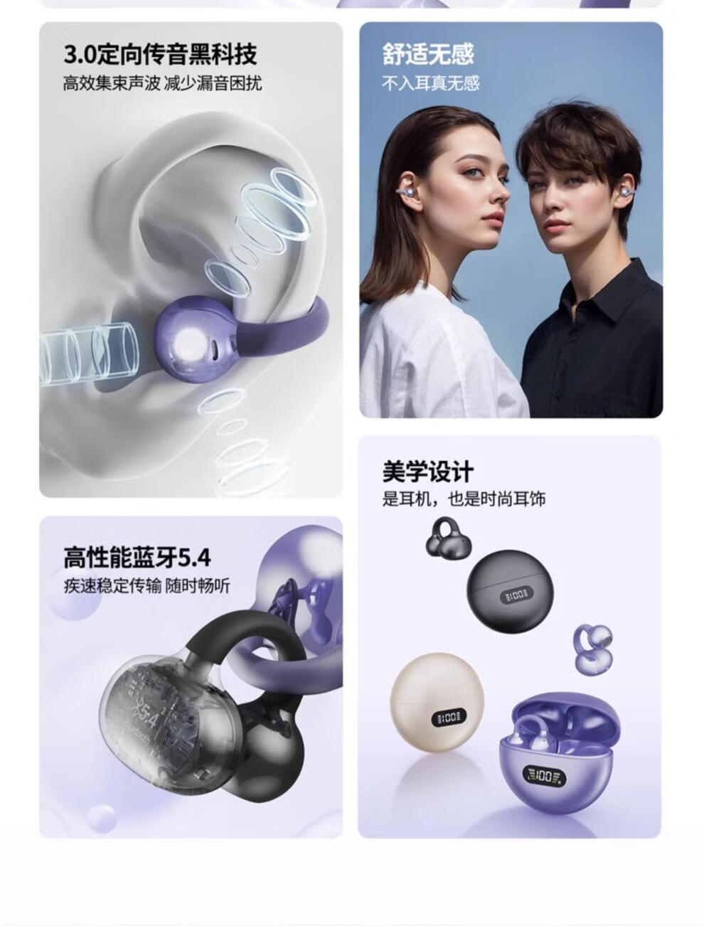Huawei Xiaomi mobile phone is suitable for the 2025 new air bone conduction Bluetooth headset, high-quality, wireless, long-lasting, painless and ear-clip open sports Apple, top version, skin color, flagship Bluetooth 5.4 chip, Dolby panoramic spatial sound effect E