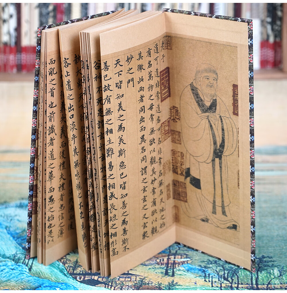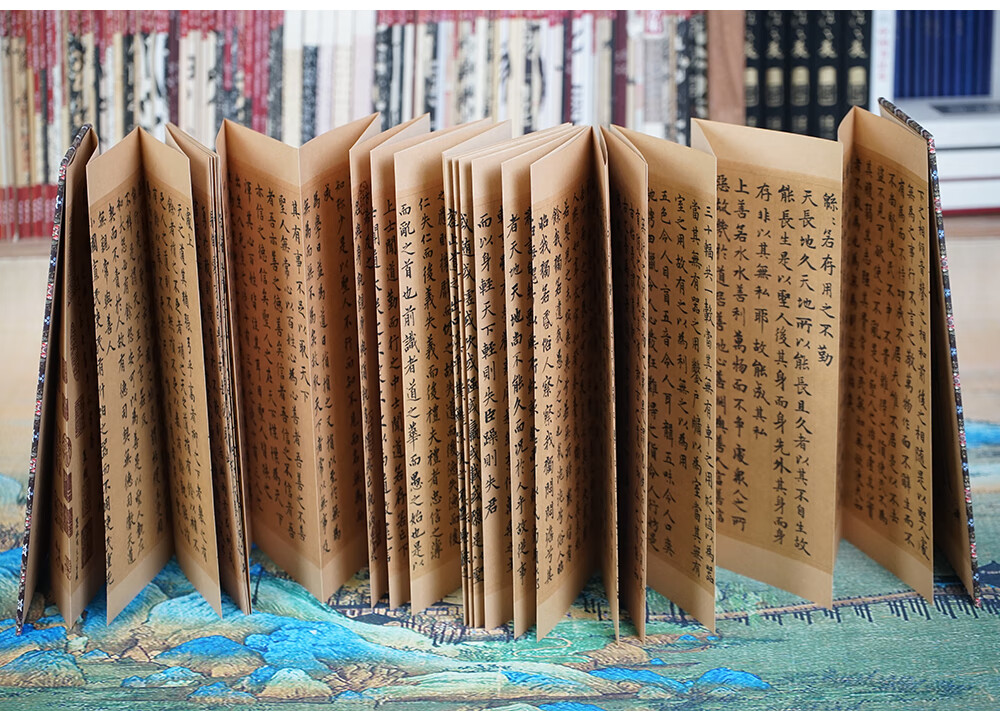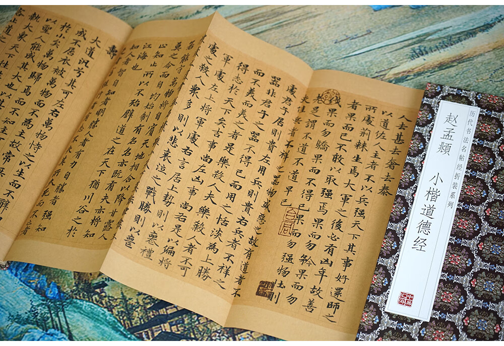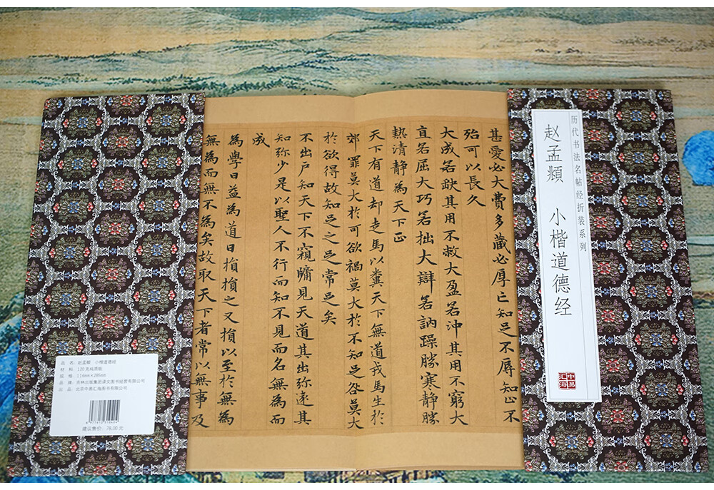 Folded pages Zhao Mengfu's Tao Te Ching in small regular script, Famous Calligraphy Calligraphy Classics of the Past Dynasties folded series, fully unfolded for easy reading, full length copy of the original calligraphy model, calligraphy enthusiasts collection copybook, 2 folded volumes, Zhao Mengfu's Tao Te Ching in small regular script + Huang Ting Jing, Heart Sutra