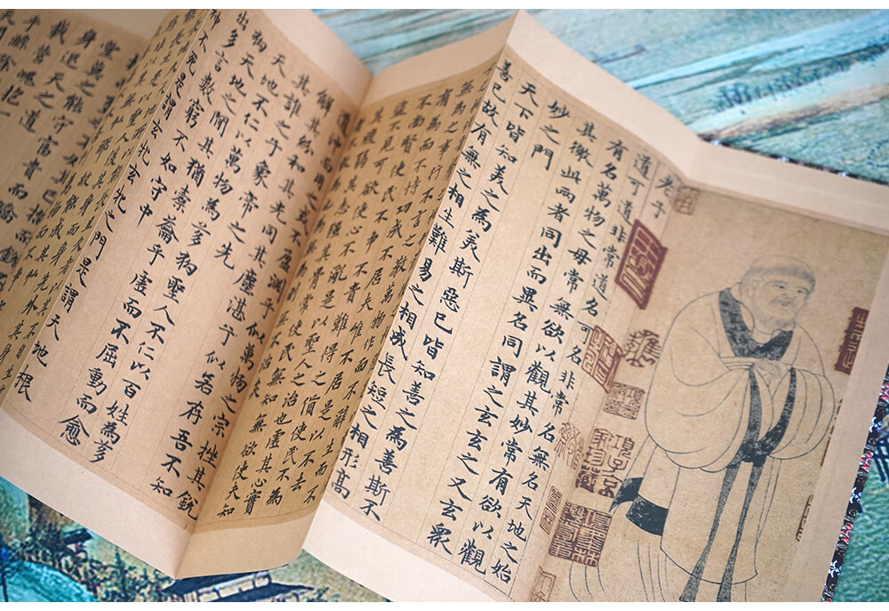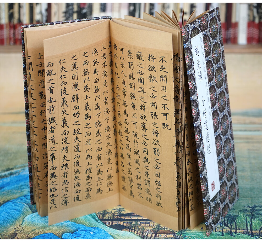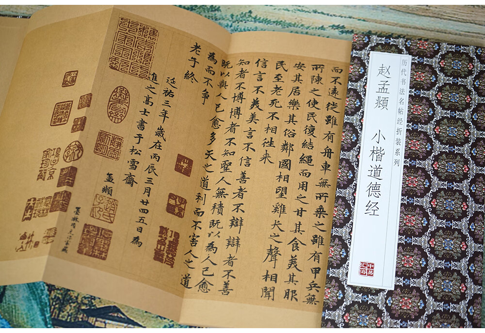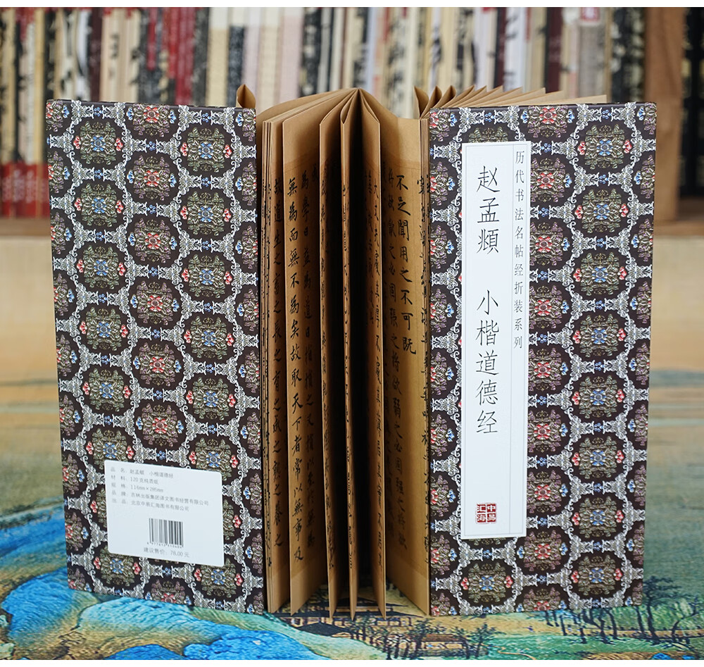 Folded pages Zhao Mengfu's Tao Te Ching in small regular script, Famous Calligraphy Calligraphy Classics of the Past Dynasties folded series, fully unfolded for easy reading, full length copy of the original calligraphy model, calligraphy enthusiasts collection copybook, 2 folded volumes, Zhao Mengfu's Tao Te Ching in small regular script + Huang Ting Jing, Heart Sutra