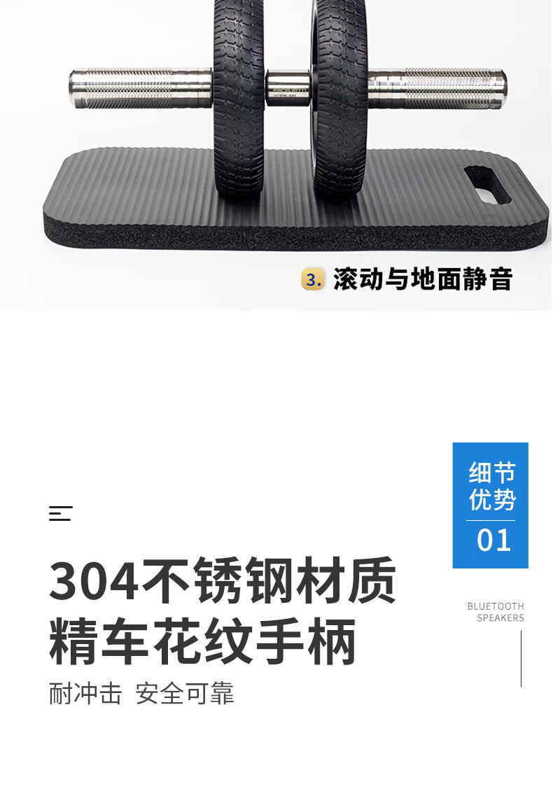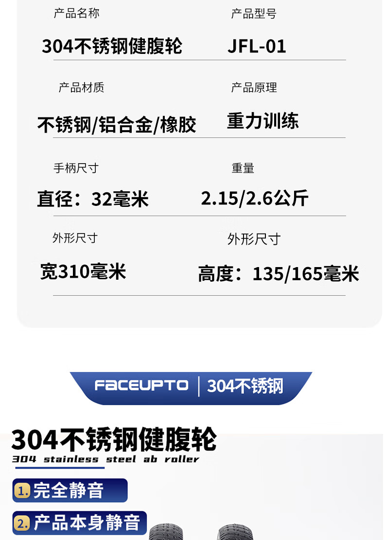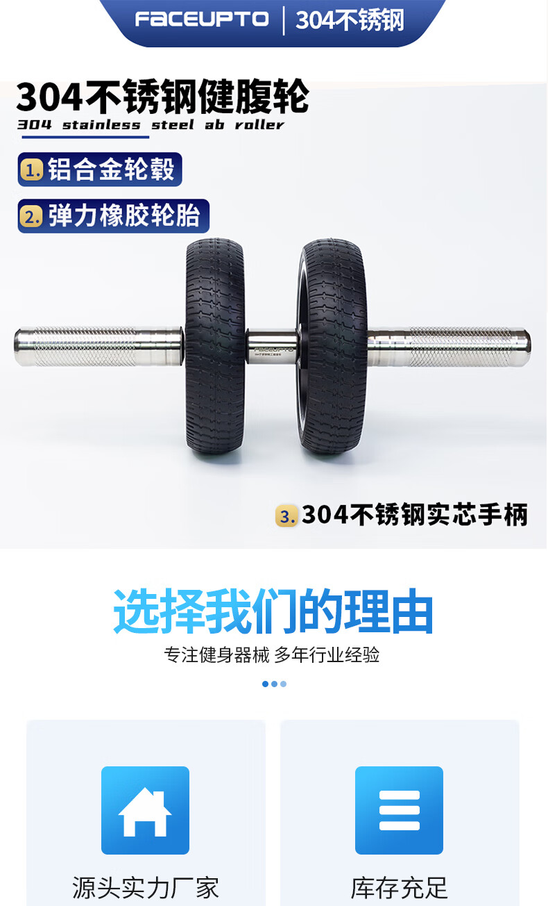 FaCEUPTO304 stainless steel abdominal wheel, aluminum alloy wheel, elastic rubber tire, home abdominal reduction new product fitness equipment, large double wheel 16.5 cm wheel diameter