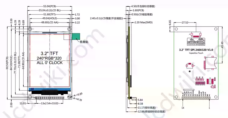 3.2-inch SPI serial port TFT LCD screen capacitive touch screen display module 240*320 IPS version black no touch IPS