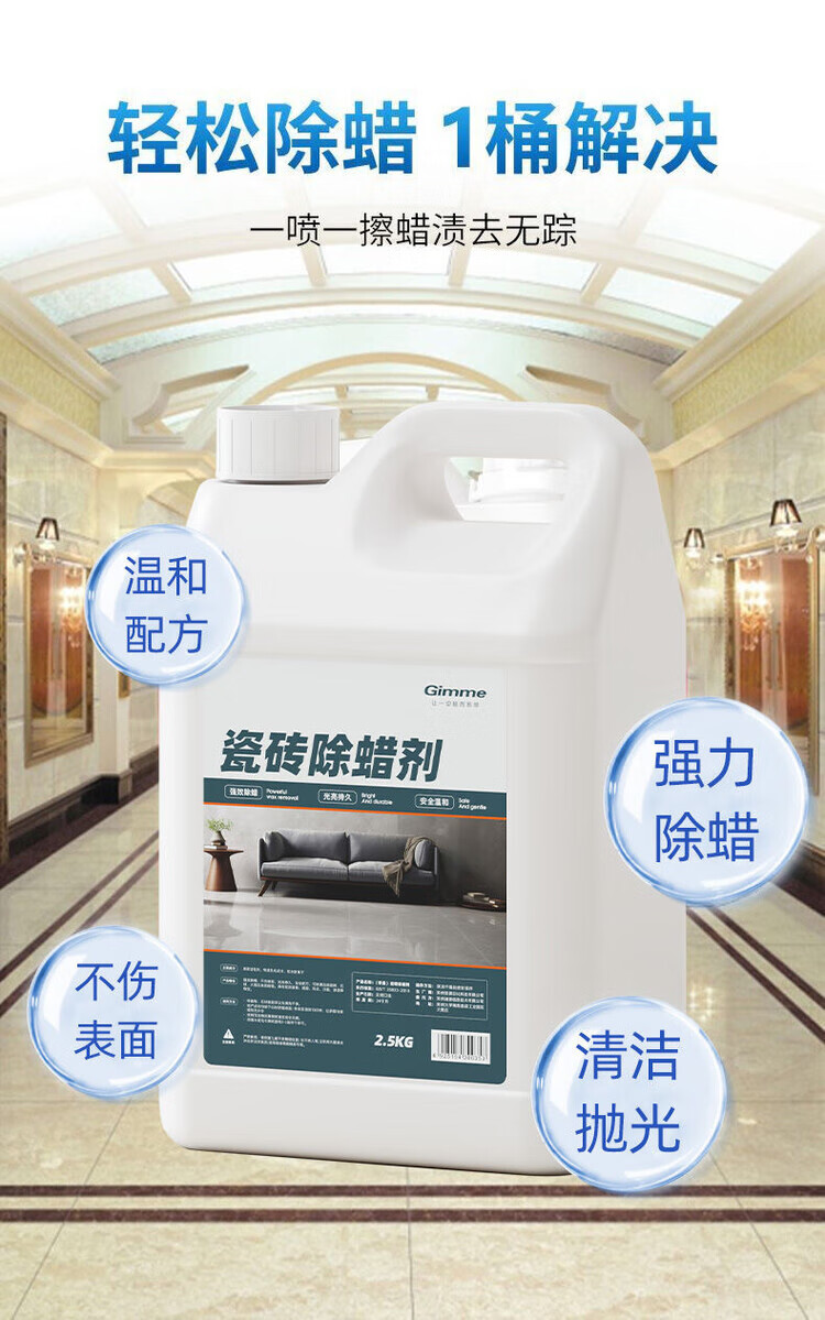 Floor wax remover, glazed tiles, ceramic tiles, household new house decoration, surface wax removal and brightening artifact, floor tile decontamination and polishing cleaner, five kilograms (concentrated), free tools