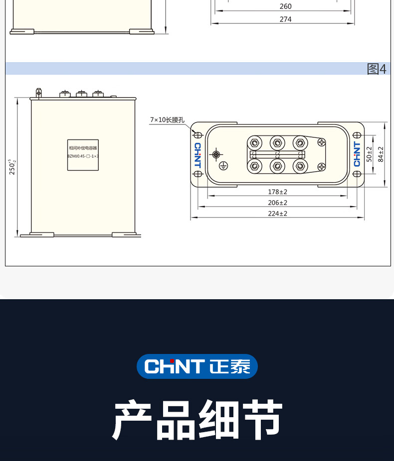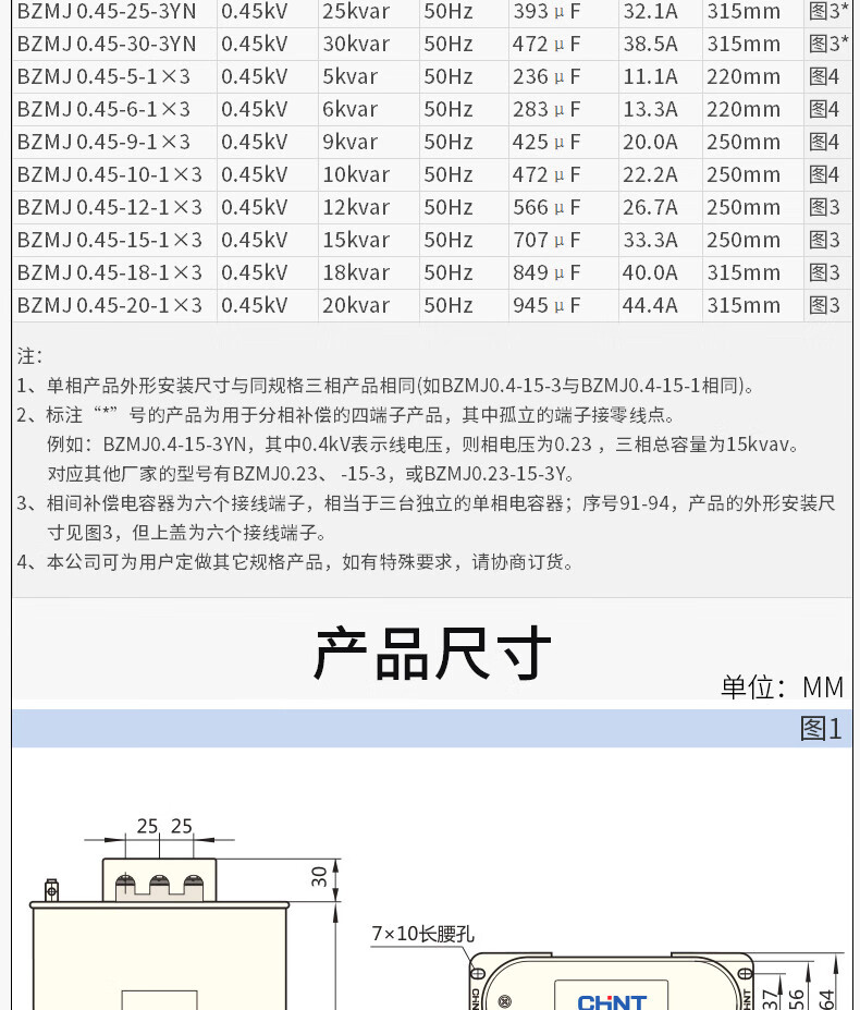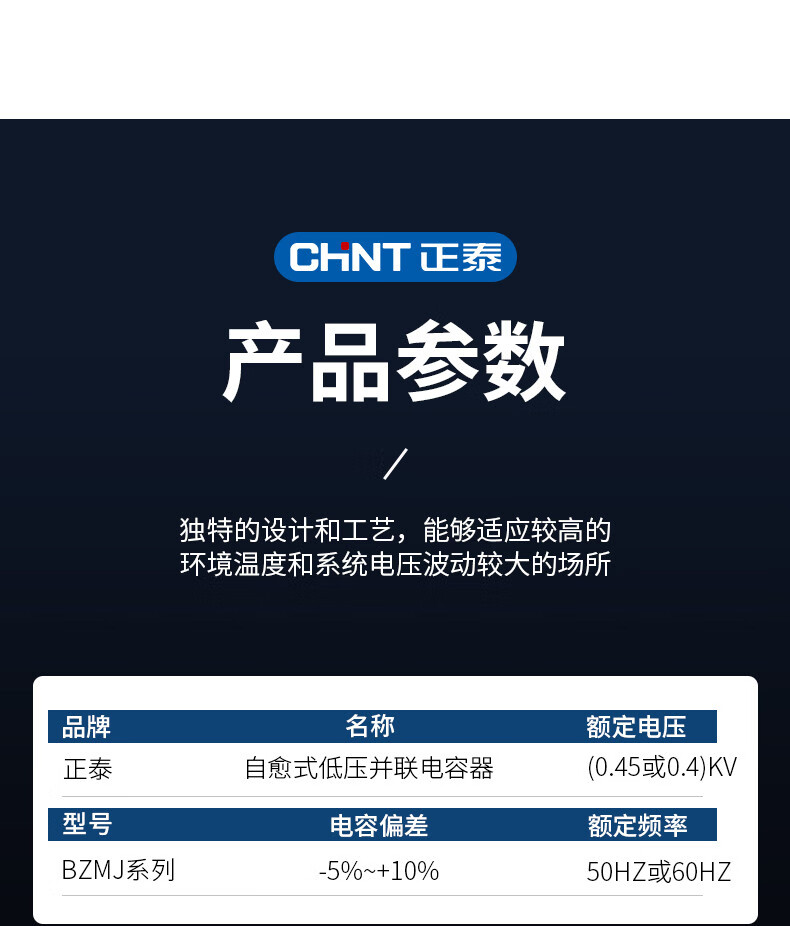 Chint bzmj reactive voltage compensator three-phase large-capacity self-healing low-voltage parallel power capacitor 450v 5kvar 450v BZMJ 0.45-57