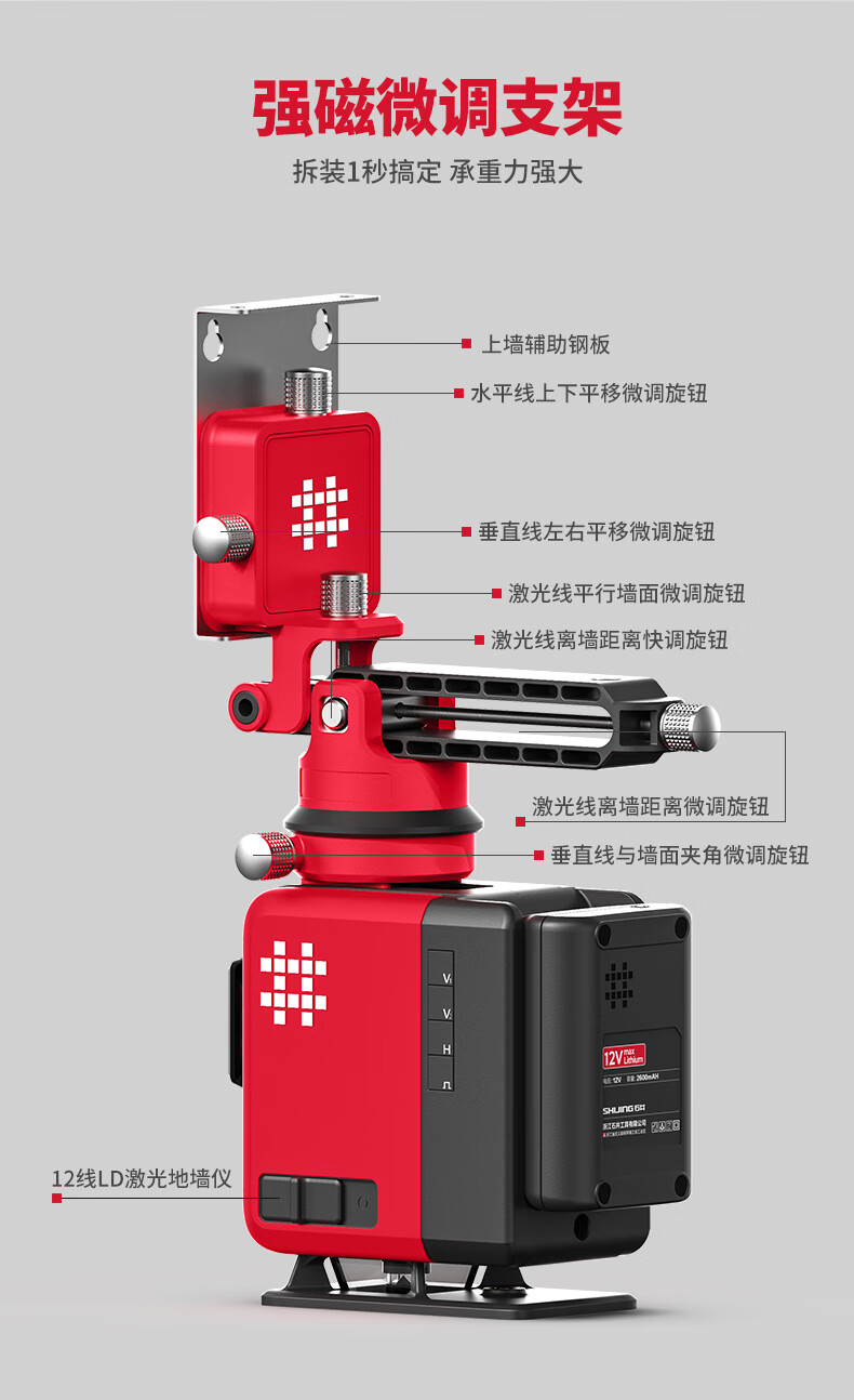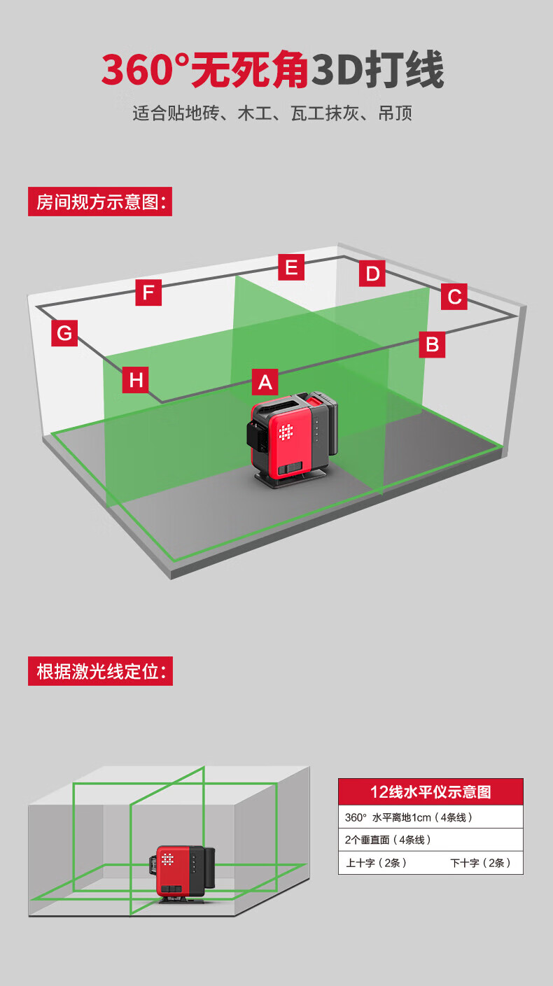 Ishii infrared level meter 12-line green light fine high-precision strong light water level meter automatic leveling wall leveling 12-line green light 7659 standard