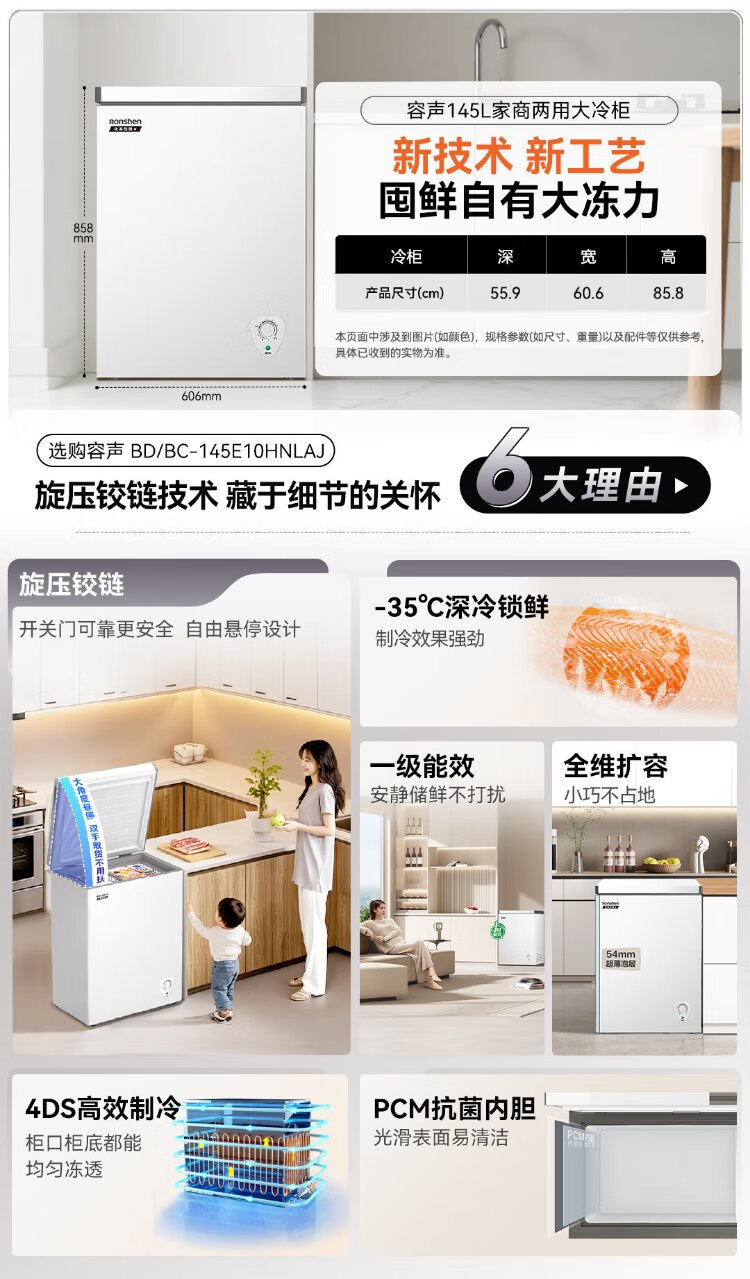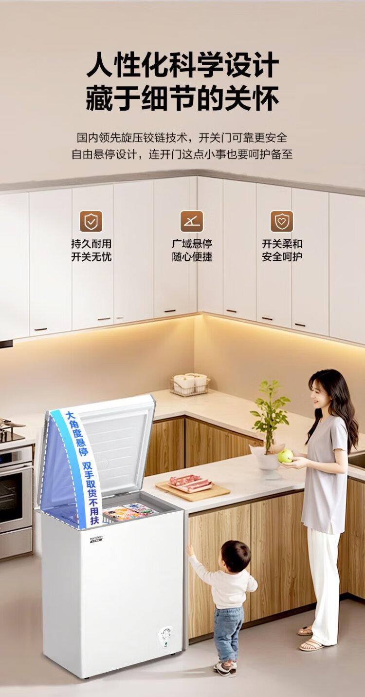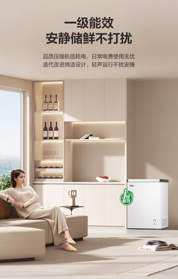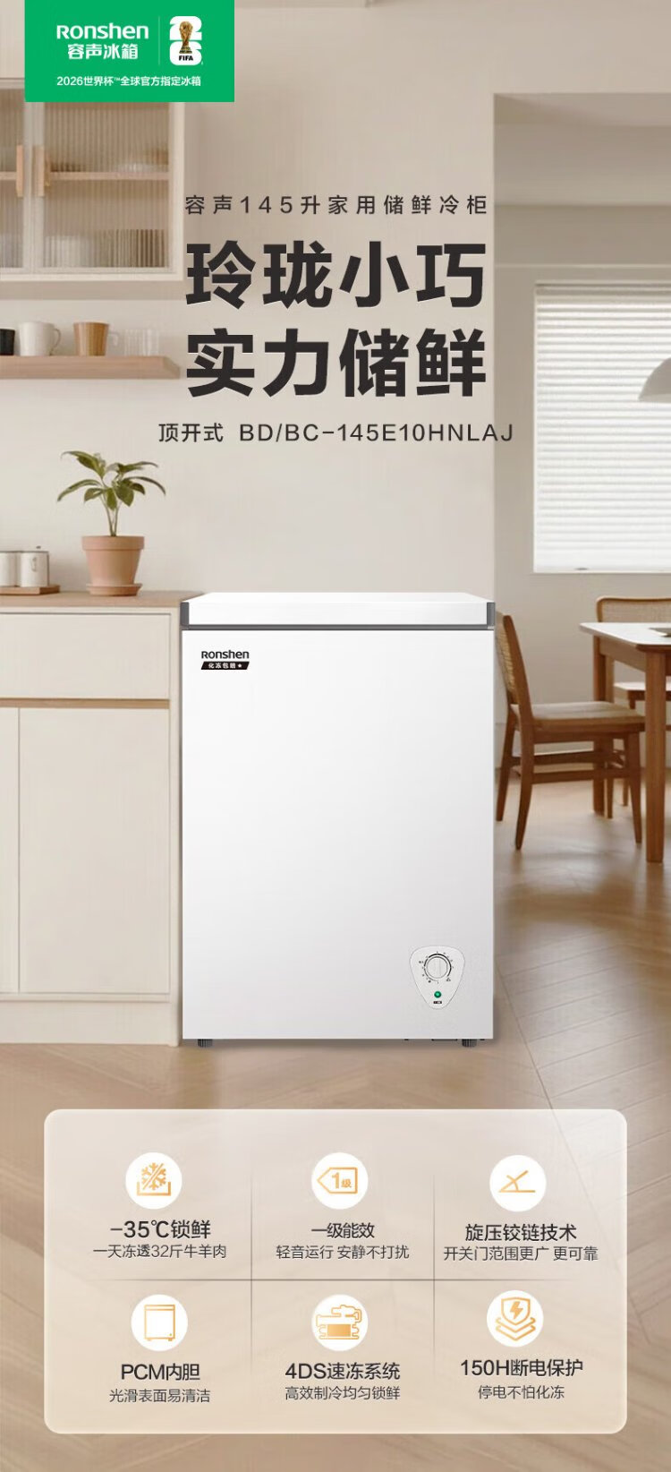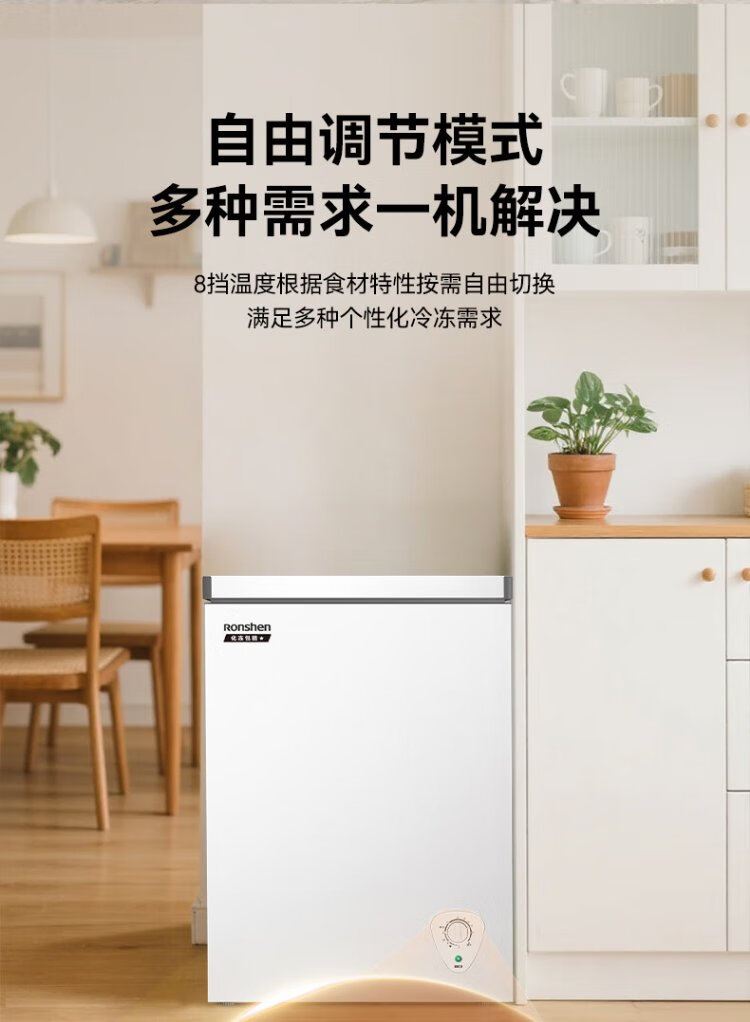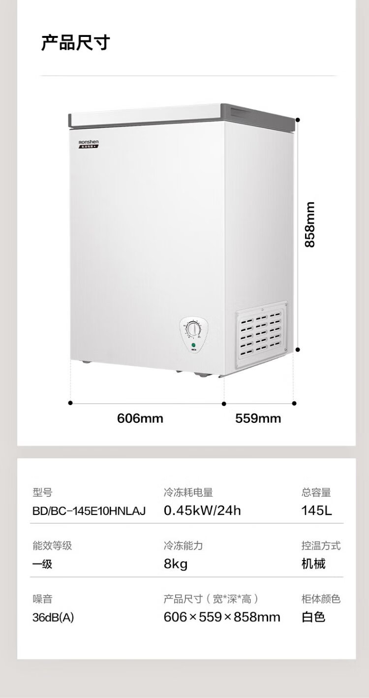 Rongsheng 145L small mini freezer household refrigeration and freezing single-temperature horizontal freezer first-class energy efficiency energy saving trade-in BD/BC-145E10HNLAJ Pearl White 145L