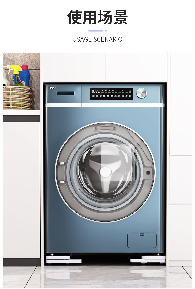 MPPMCK universal shock-proof washing machine base frame movable lifting wheel bracket Panasonic Midea Haier drum white (pair) liftable shock-proof mobile base
