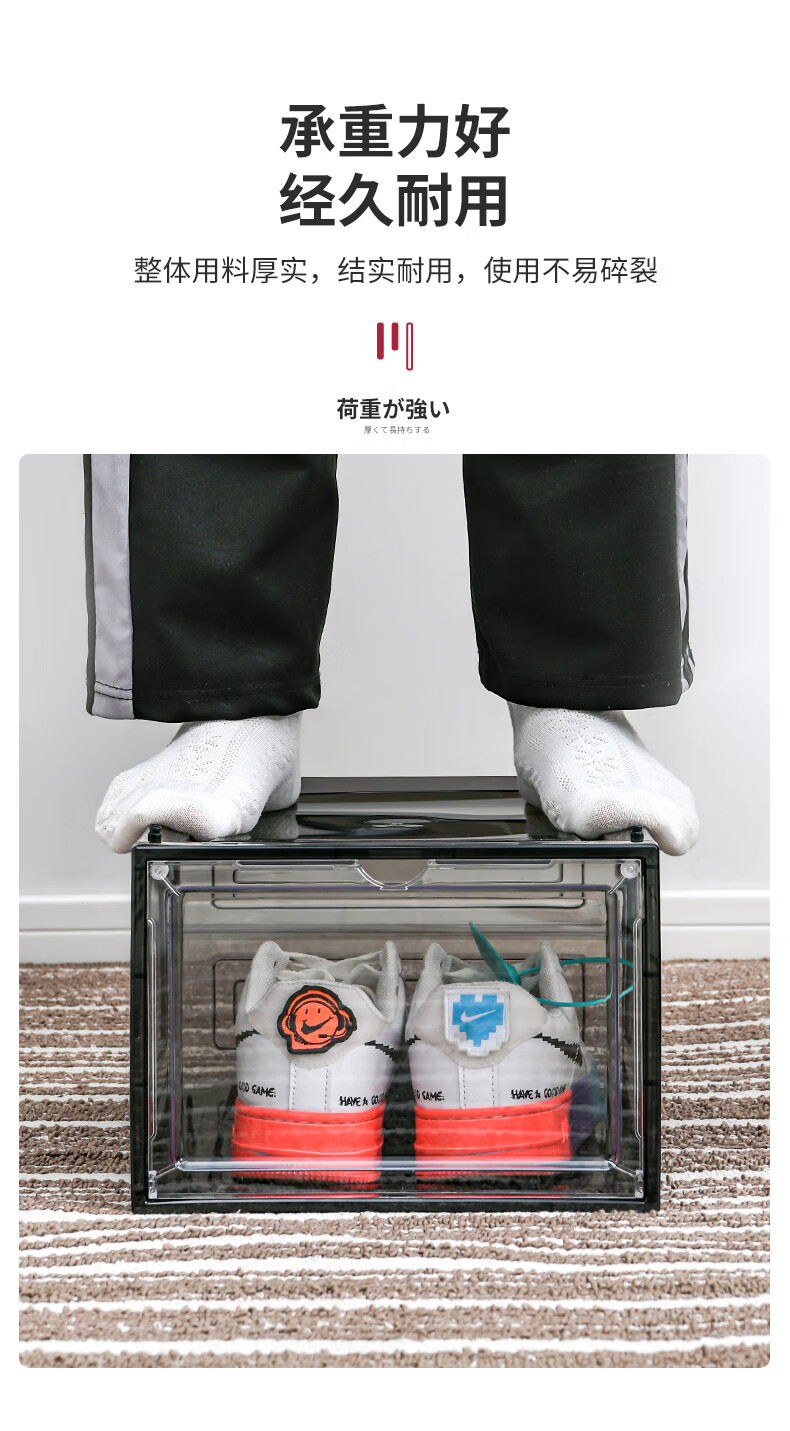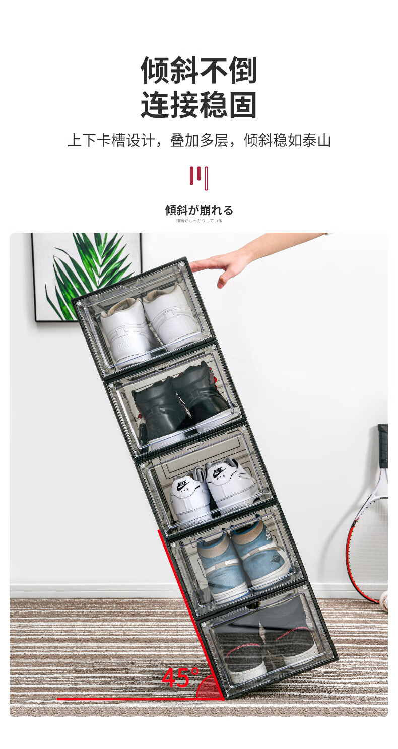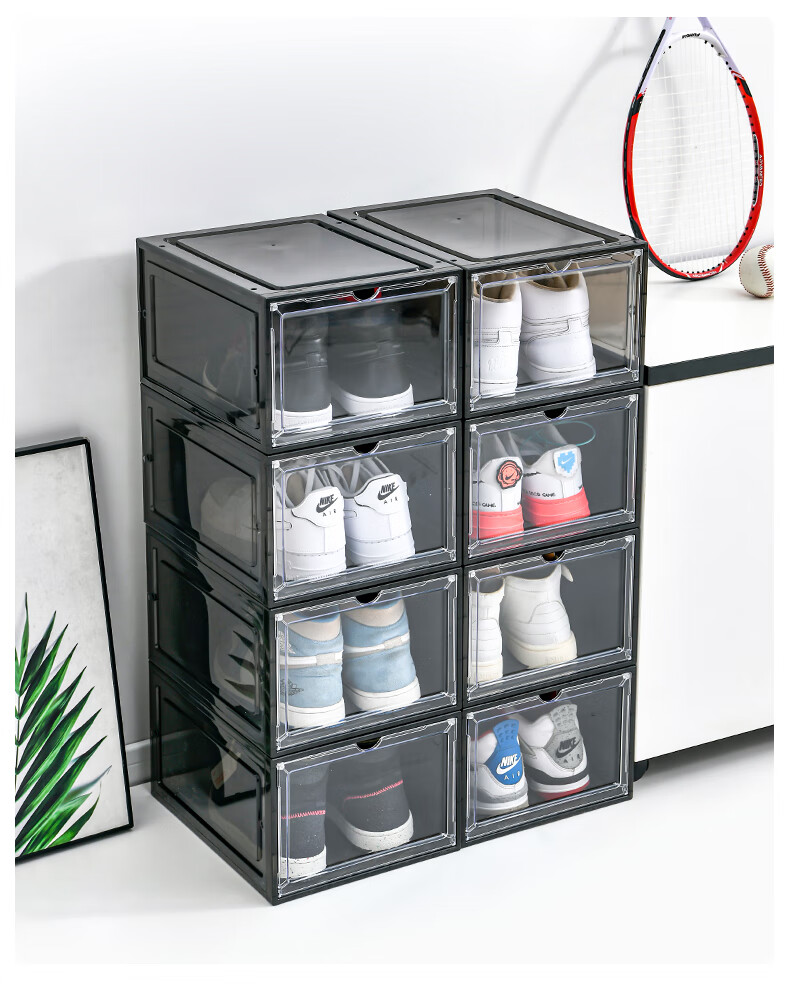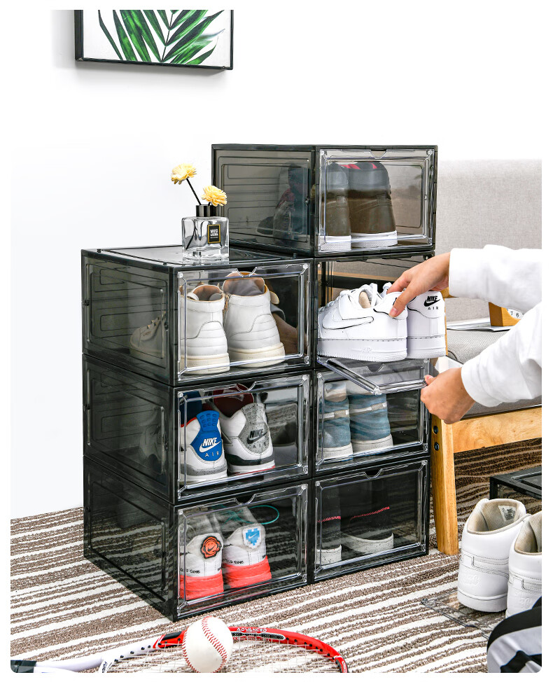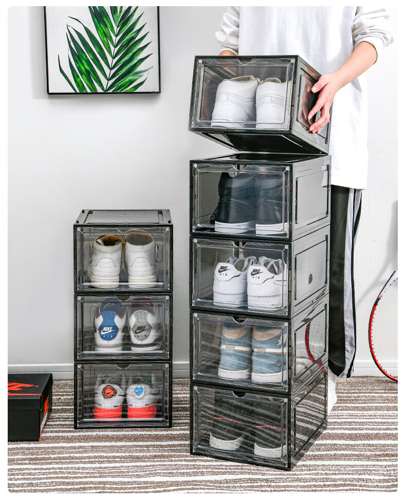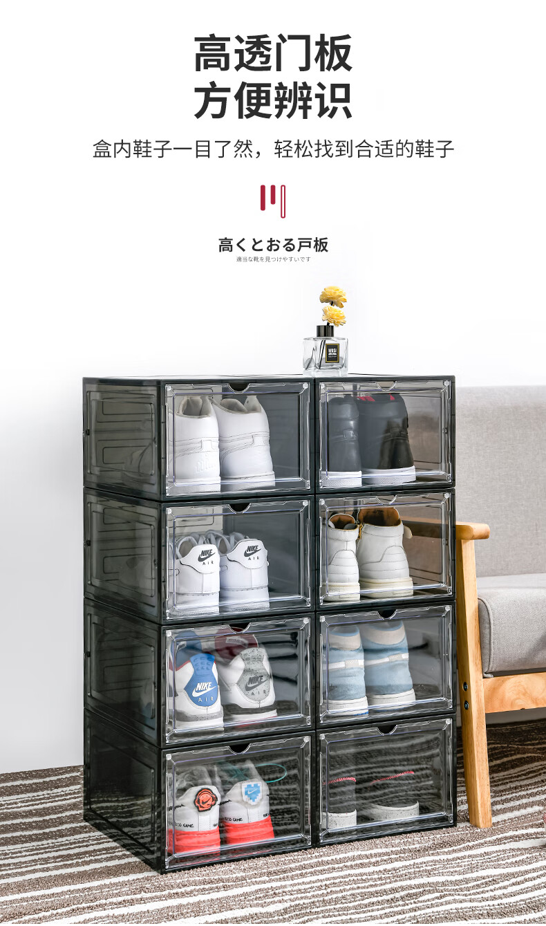 Magnetic suction high-looking transparent drawer-type shoe box shoe storage box dormitory artifact space-saving shoe rack shoe cabinet separate front door medium size magnetic suction 46 size low-top shoes transparent black one pack