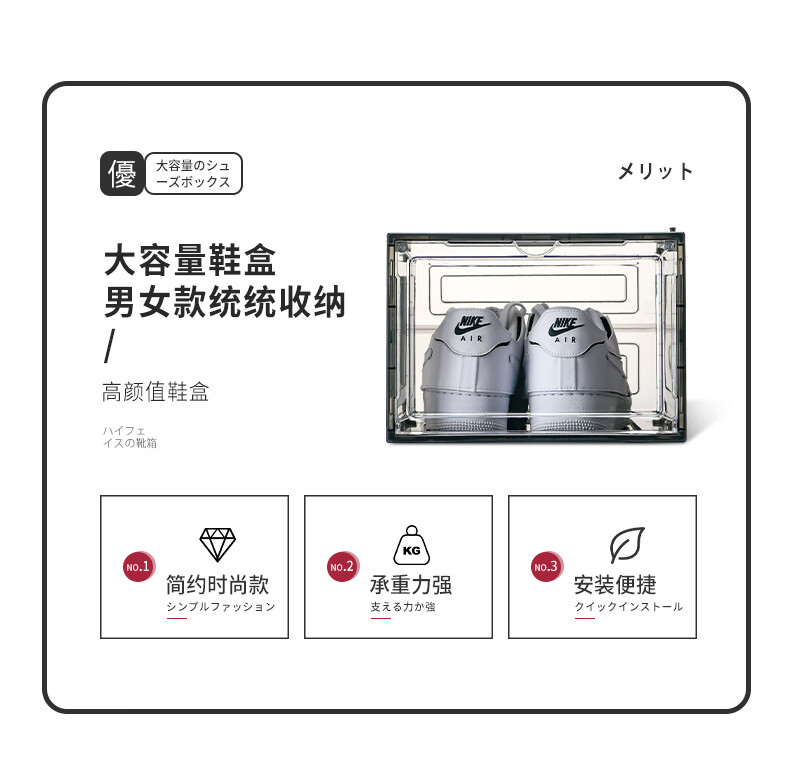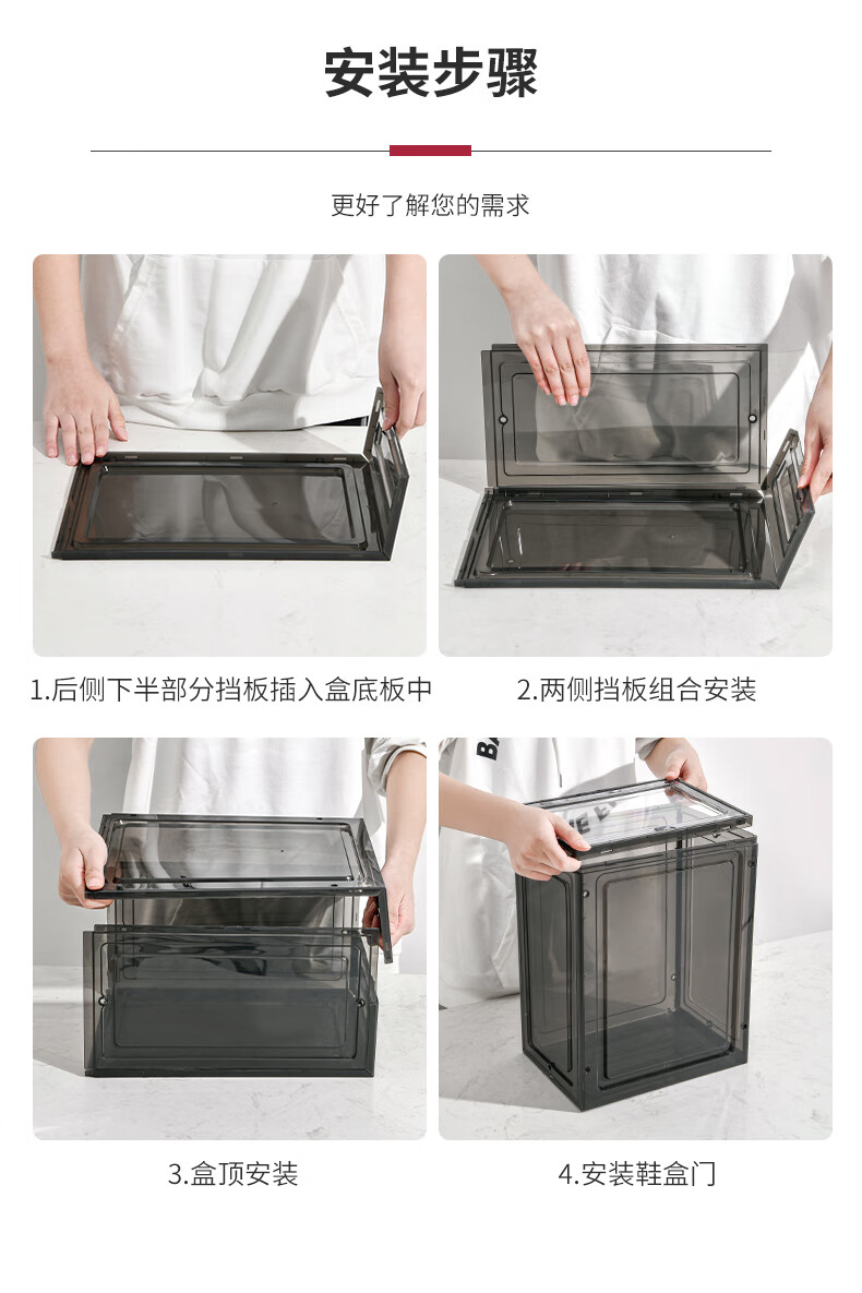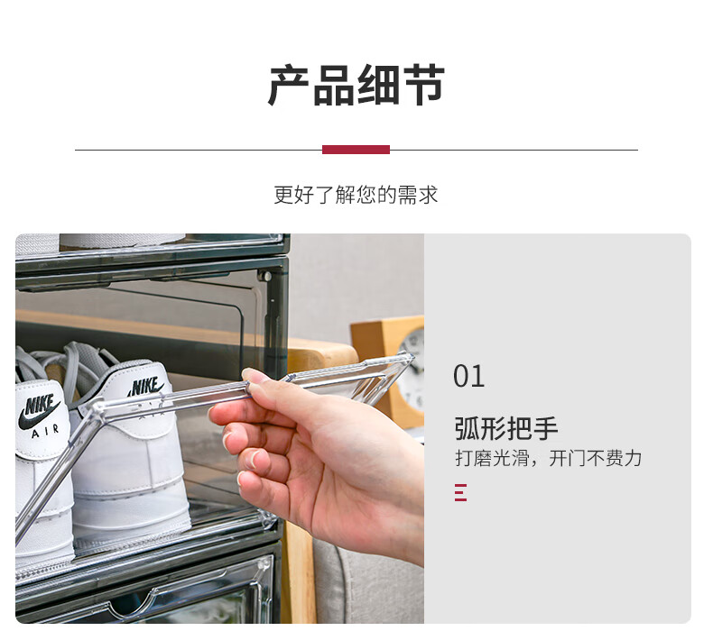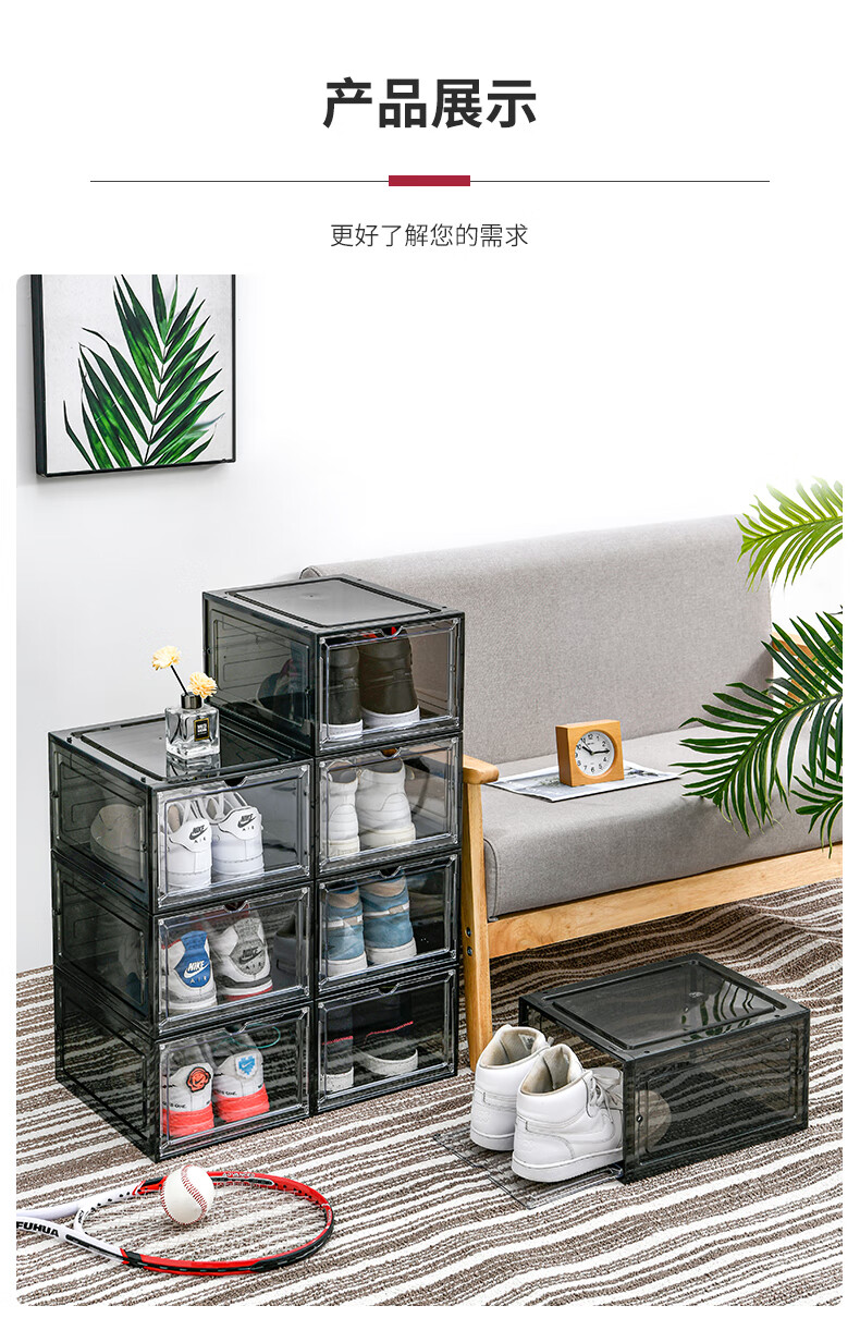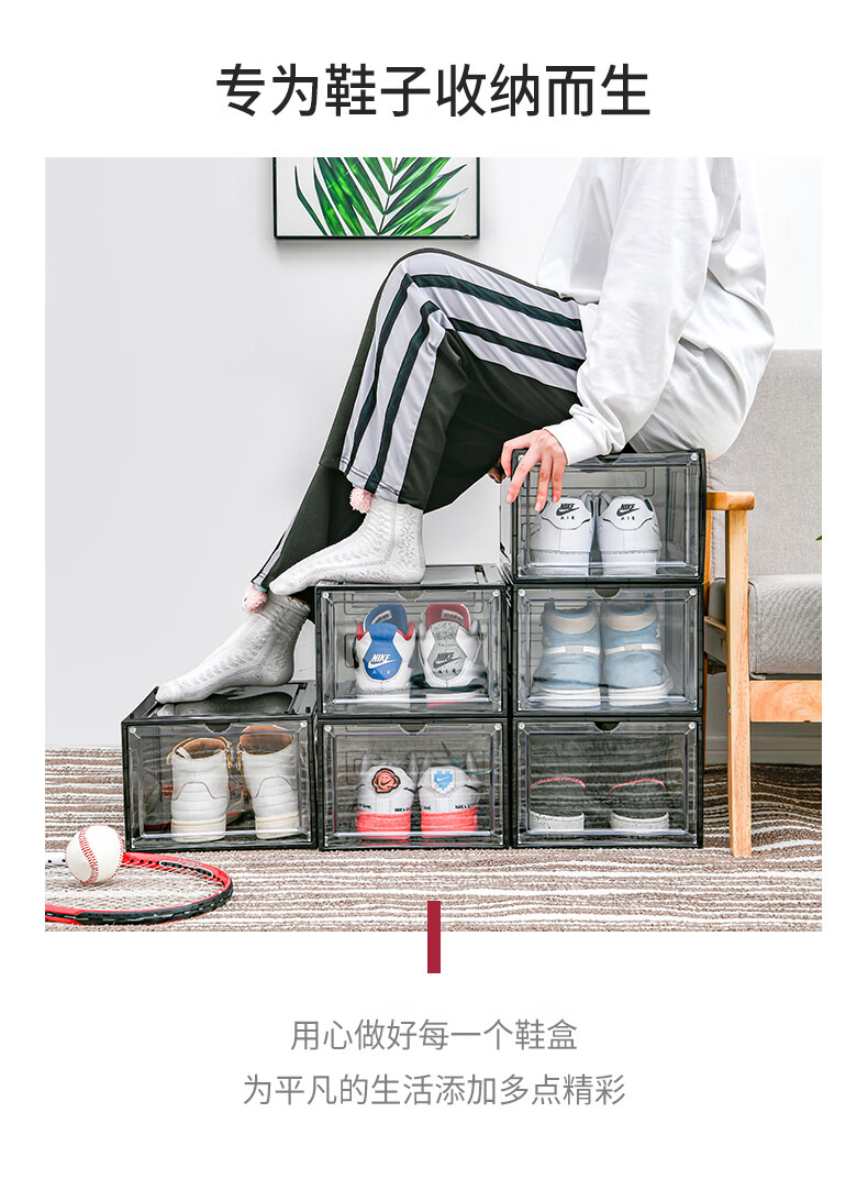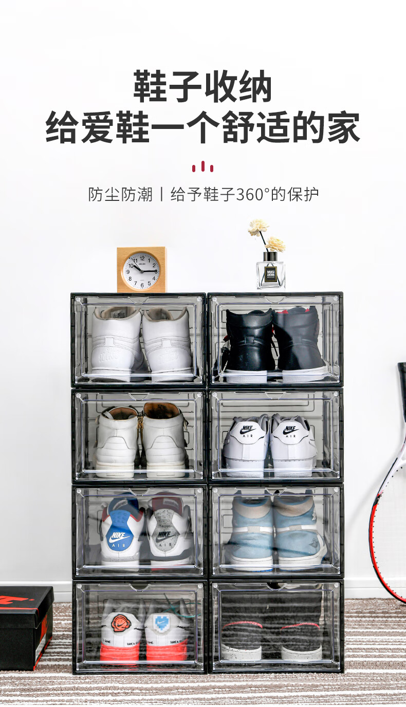 Magnetic suction high-looking transparent drawer-type shoe box shoe storage box dormitory artifact space-saving shoe rack shoe cabinet separate front door medium size magnetic suction 46 size low-top shoes transparent black one pack