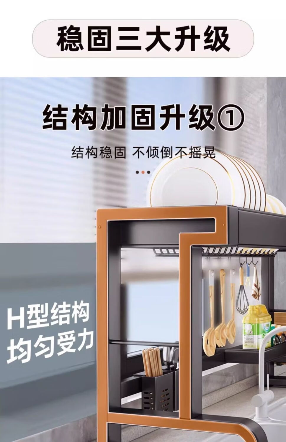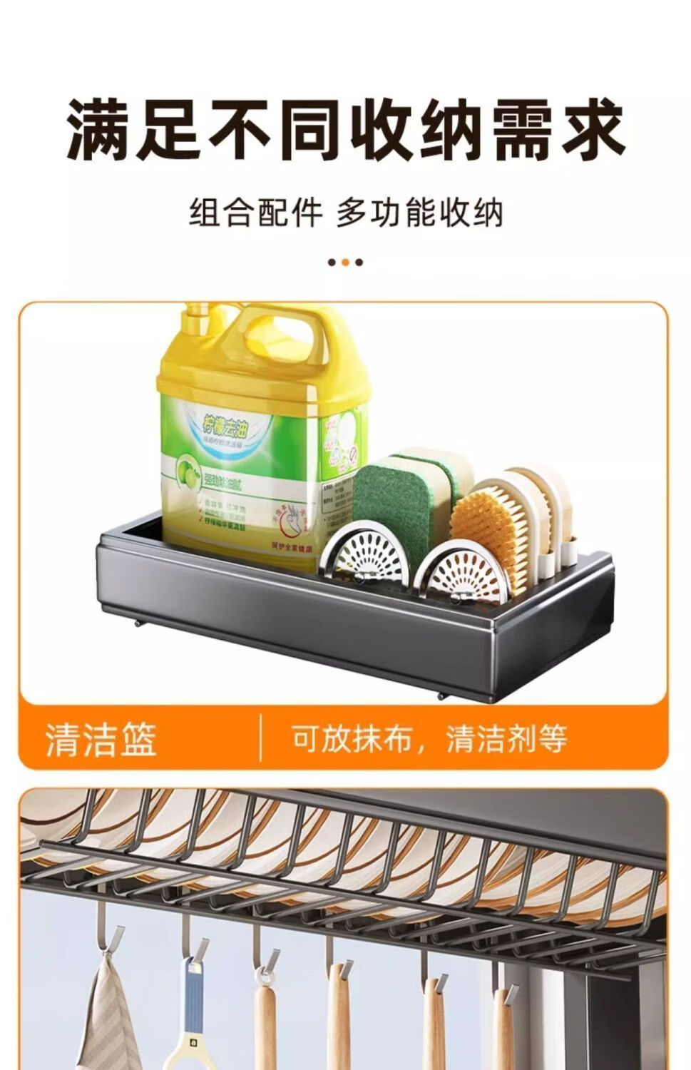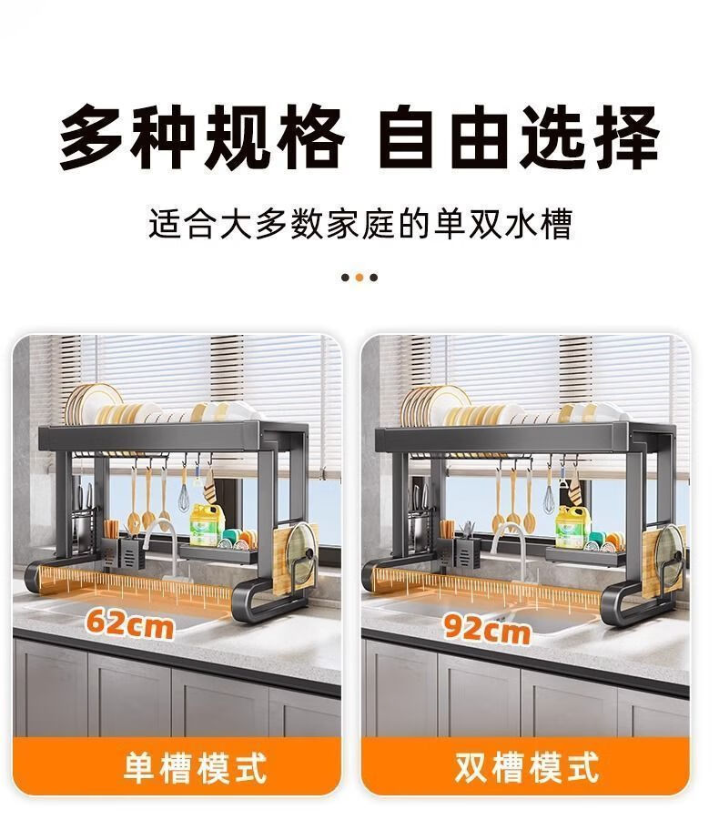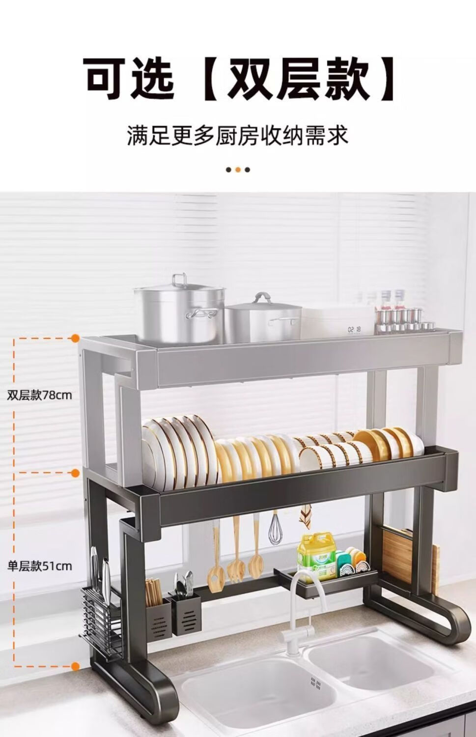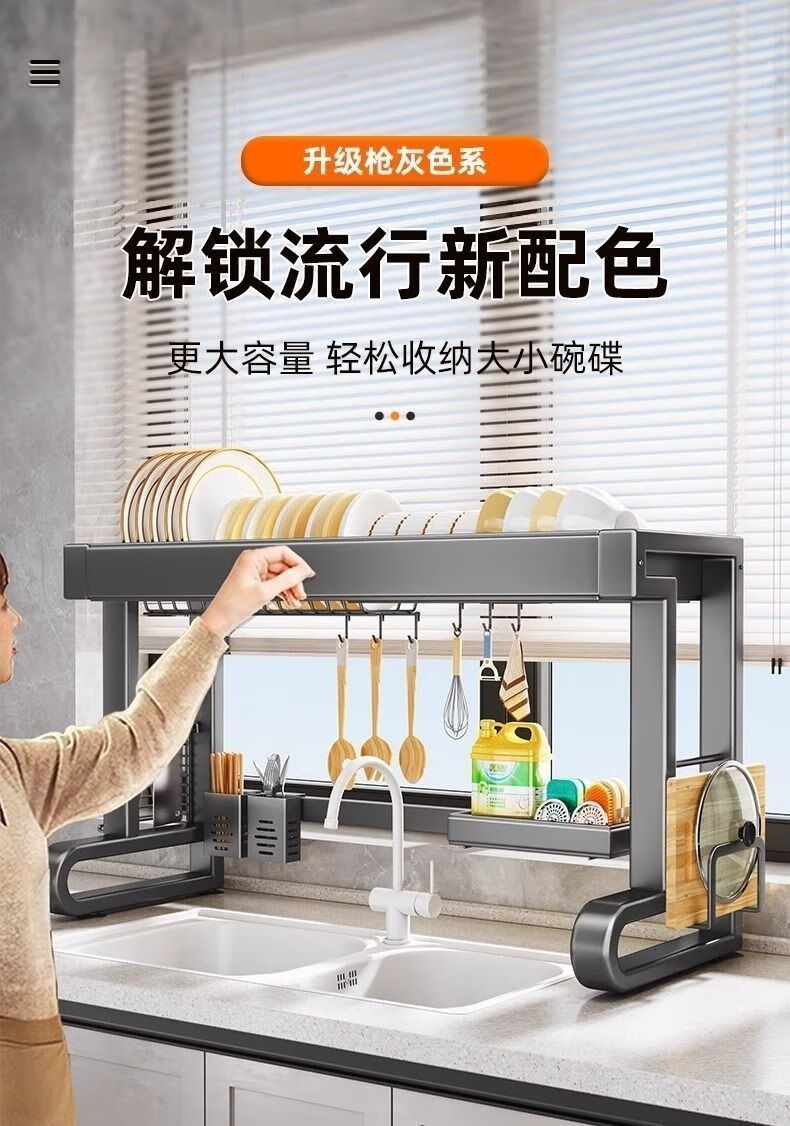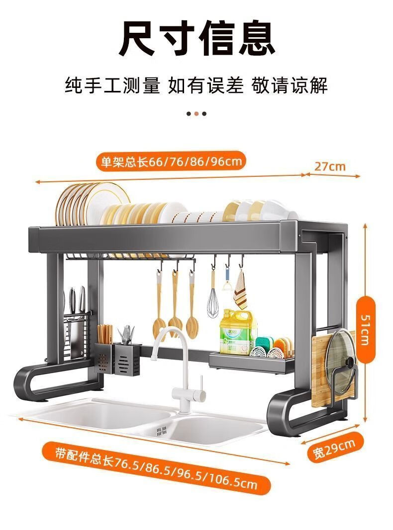 Jubufan kitchen sink rack, dishwasher sink, multi-functional dish rack, drain rack, sink dish storage rack, gun gray, 76cm long, single layer - luxury model