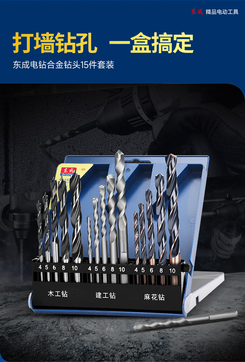 Dongcheng adaptable drill bit impact drill bit metal alloy combination drill bit 15-piece set drill bit 15-piece set