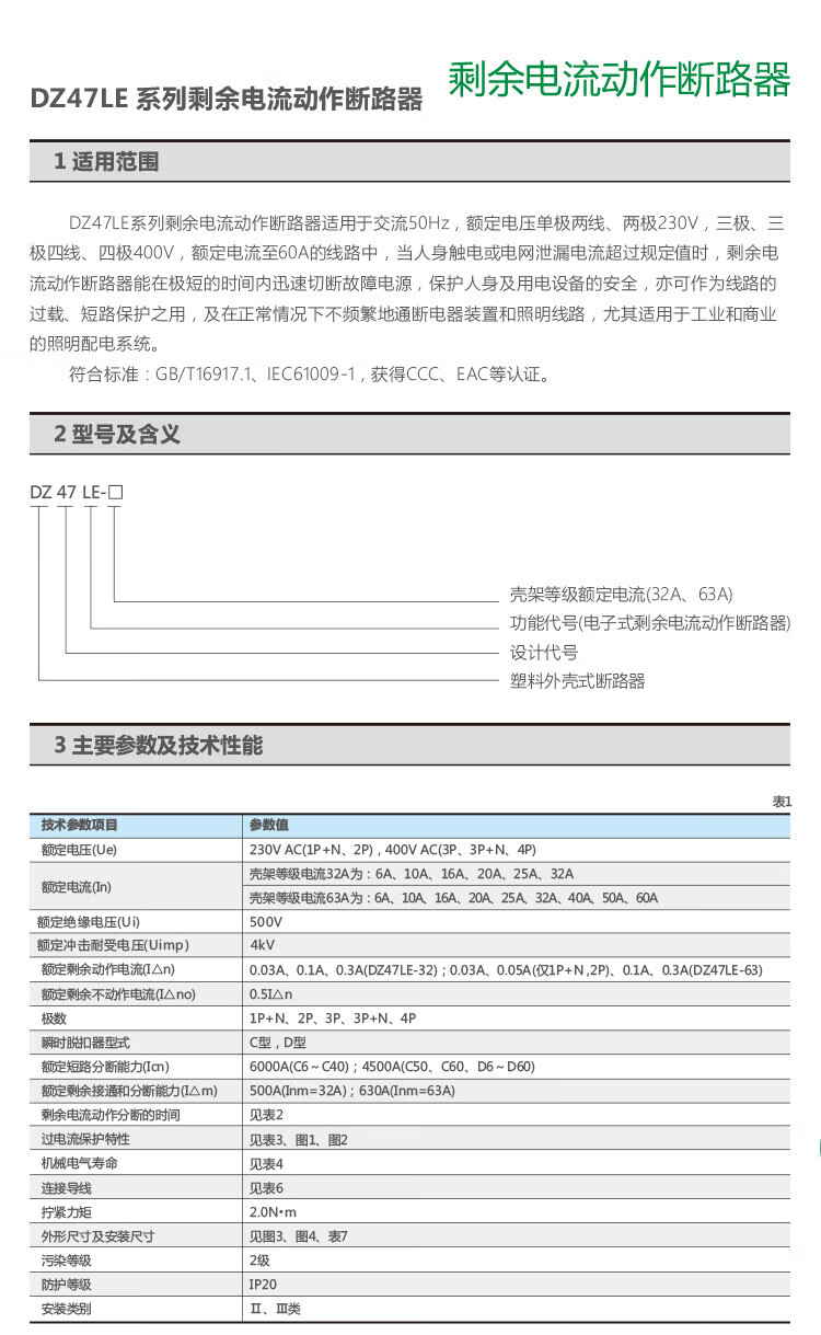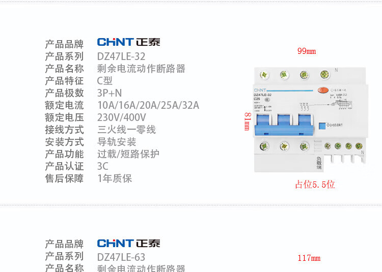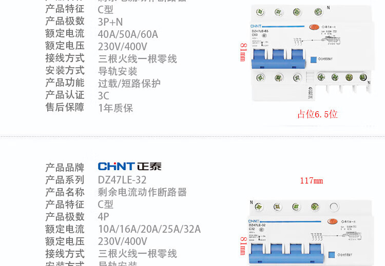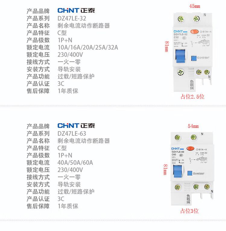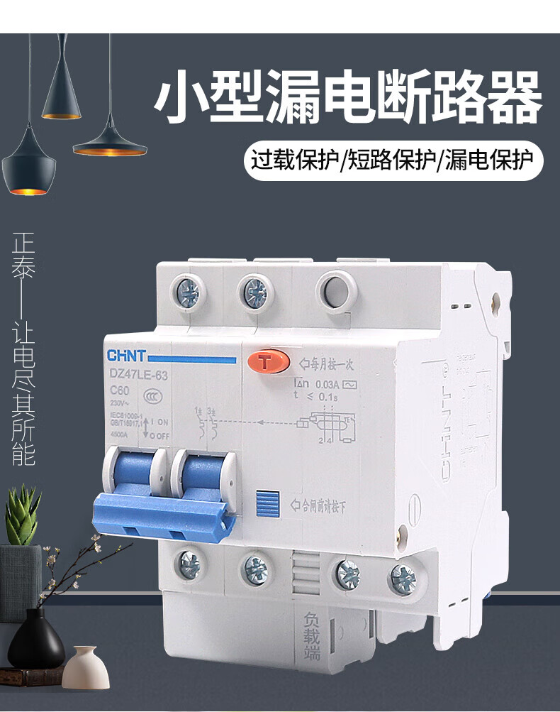 Chint leakage circuit breaker DZ47LE household leakage switch 1P+N4P with leakage C 20A 2P