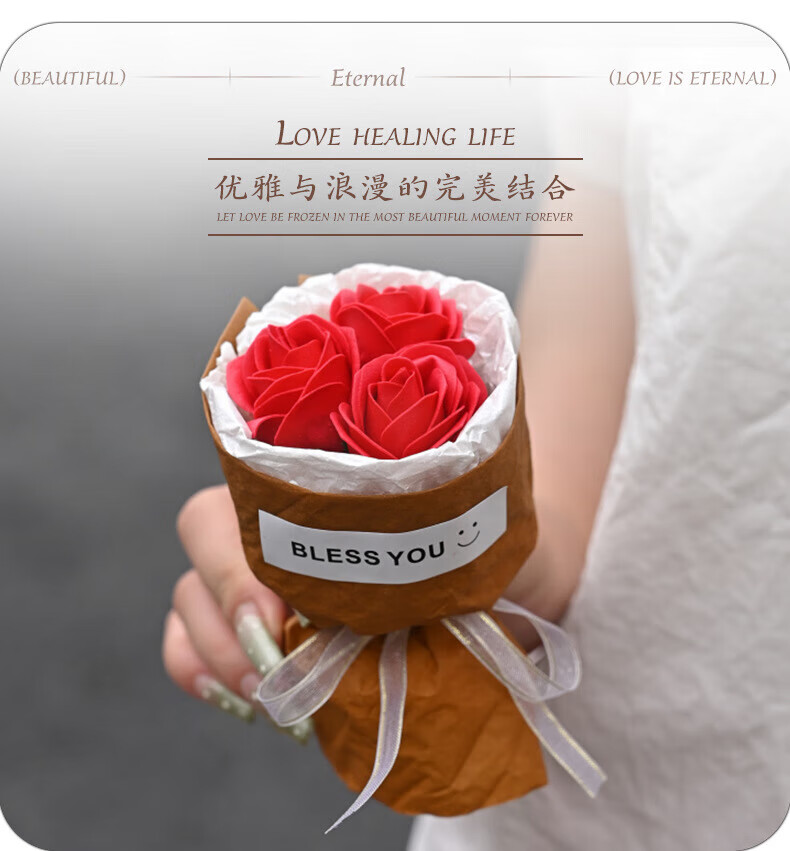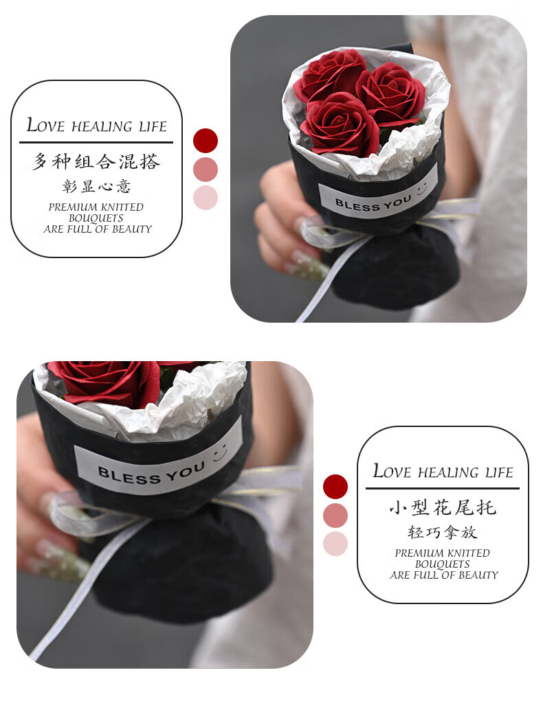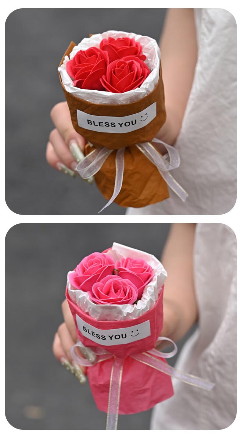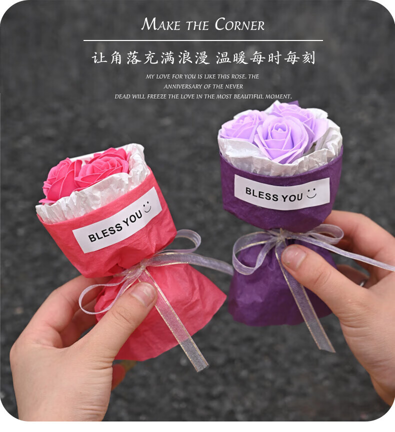 Wilkie pocket flower bouquet mini meet bouquet New Year's Eve gift roses dried flowers fake flowers immortal flowers three roses romantic princess pink