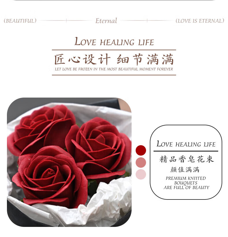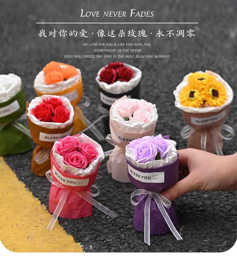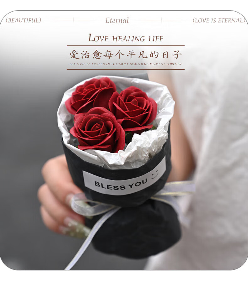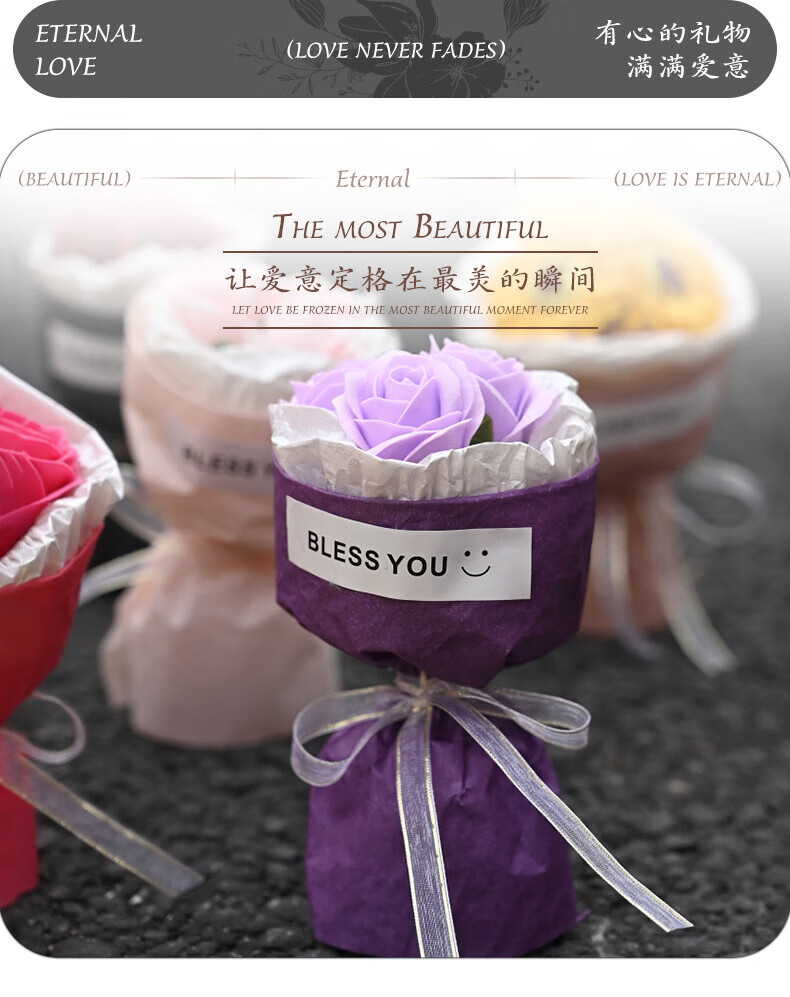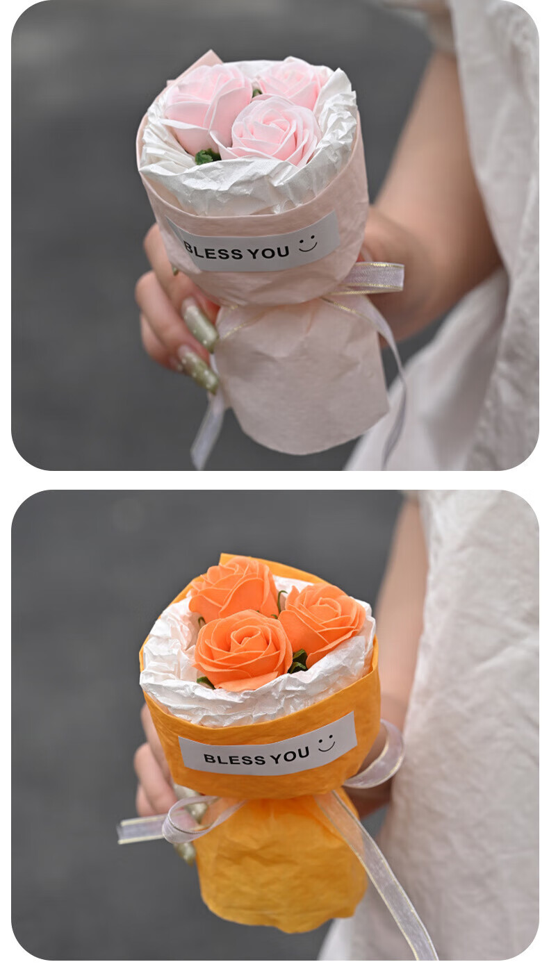 Wilkie pocket flower bouquet mini meet bouquet New Year's Eve gift roses dried flowers fake flowers immortal flowers three roses romantic princess pink
