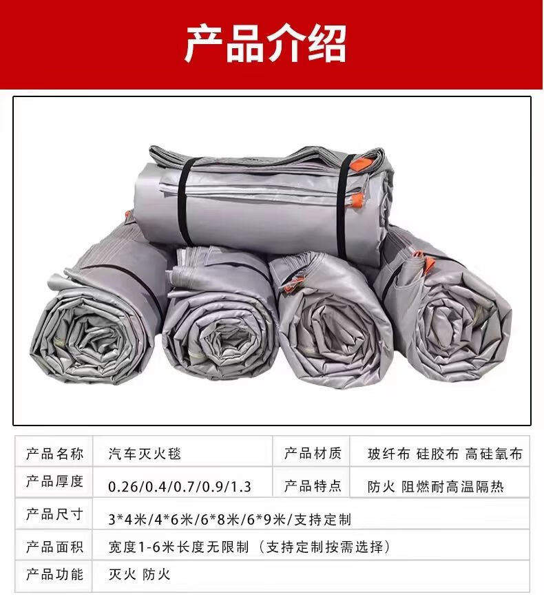 New energy vehicle fire blanket fire cover fiberglass fire retardant mall fire protection silicone fire blanket fire blanket super temperature resistant 6mx8m high silica cloth double-sided silicone coating