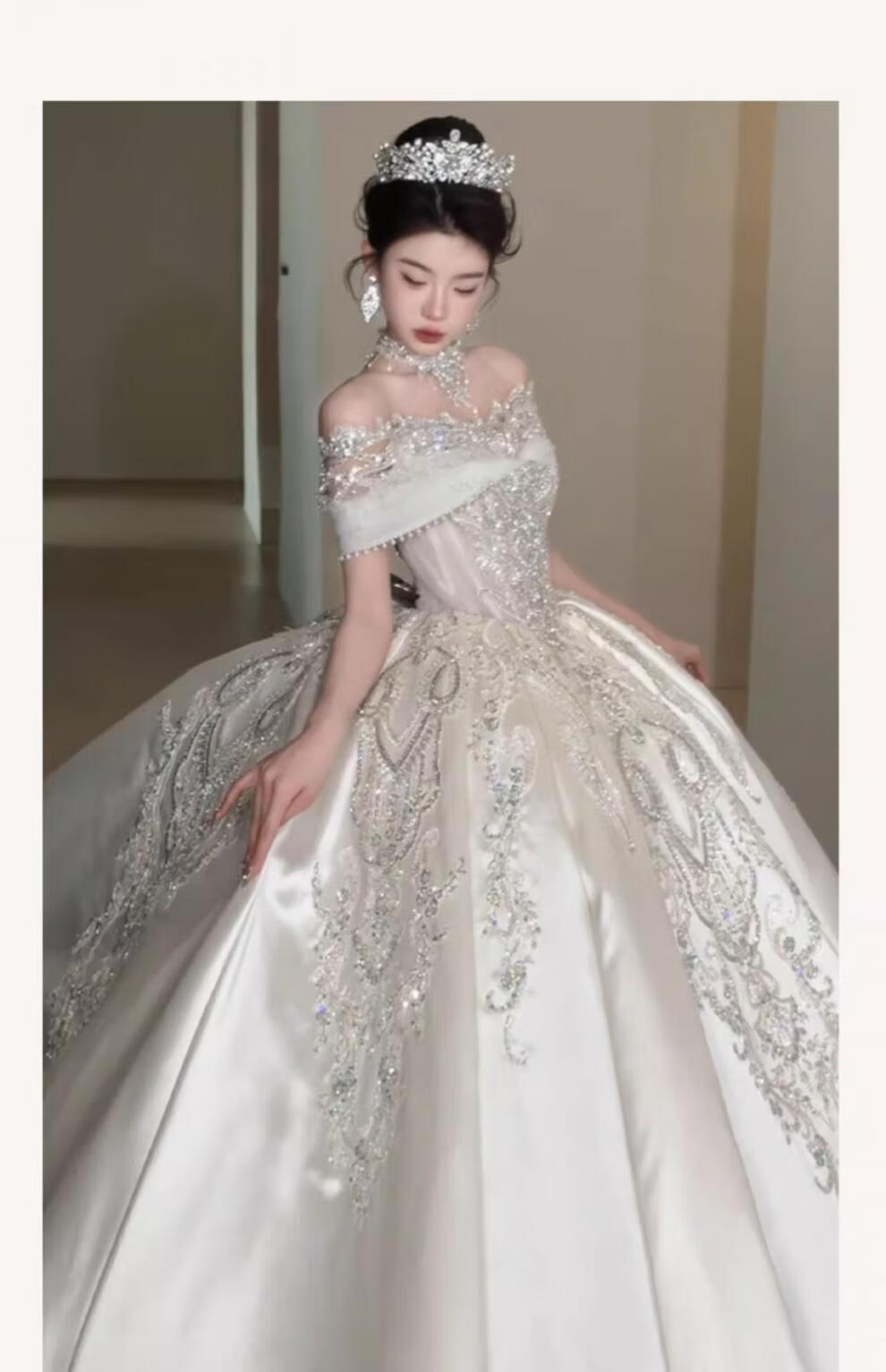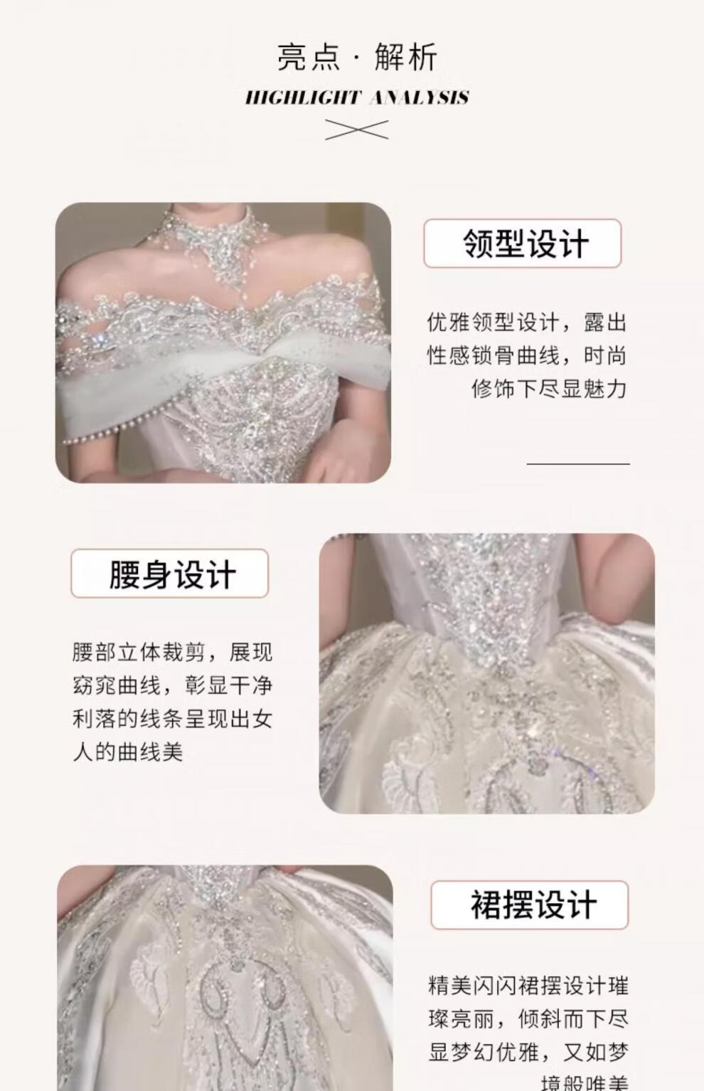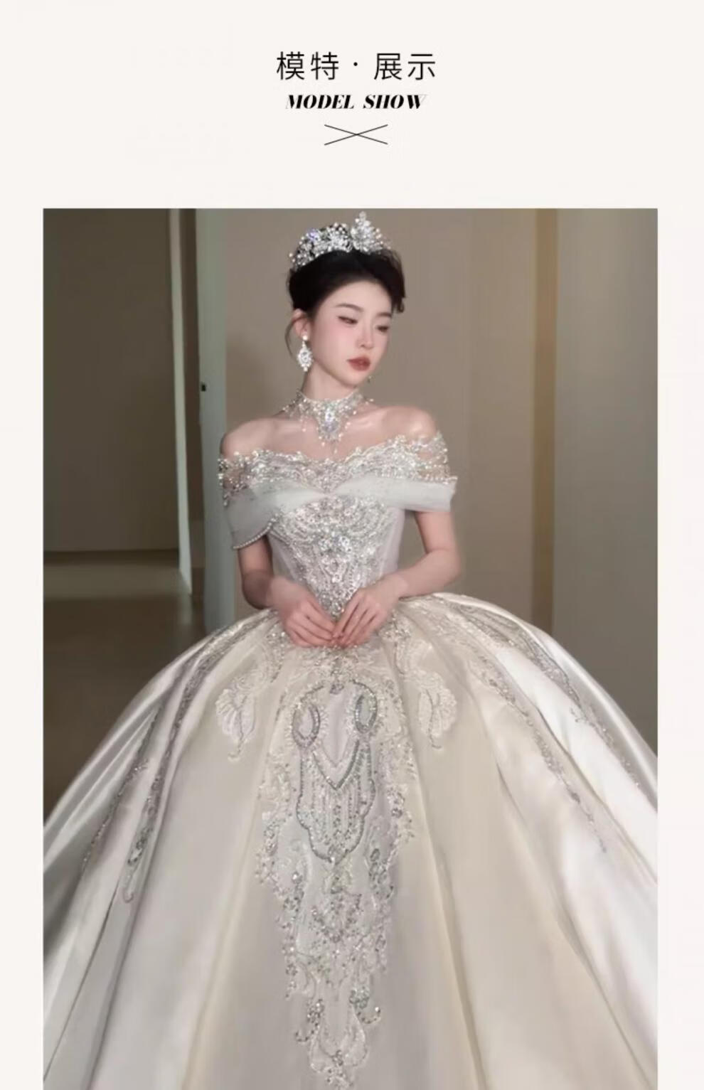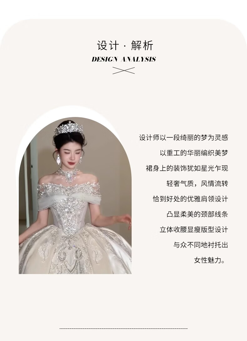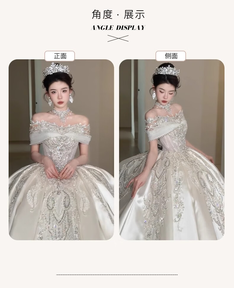 Rich collar French wedding dress bridal main yarn one-shoulder fugitive princess 2025 new textured dress satin style trailing three-piece set L