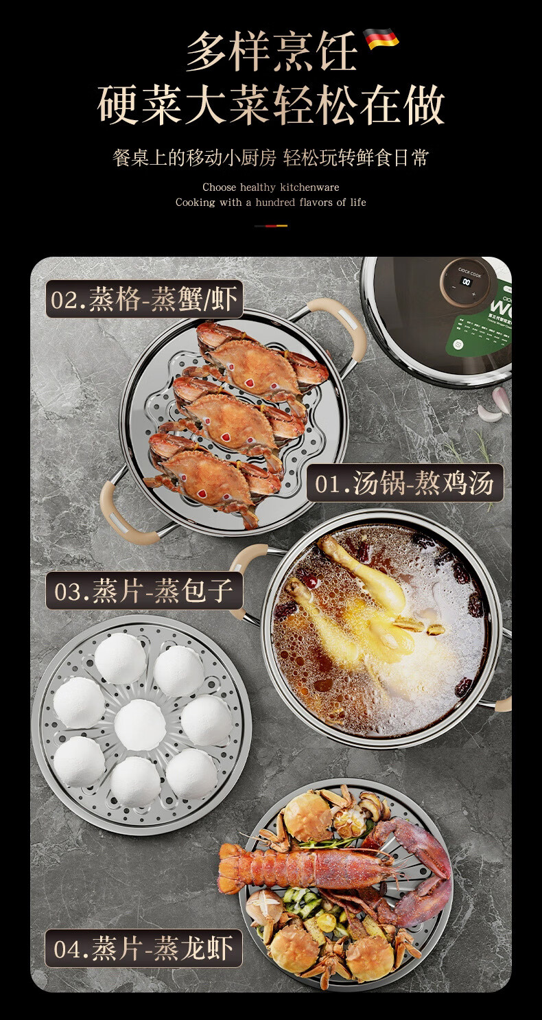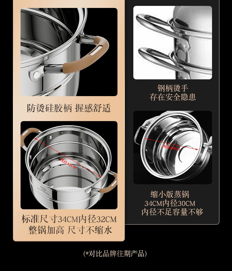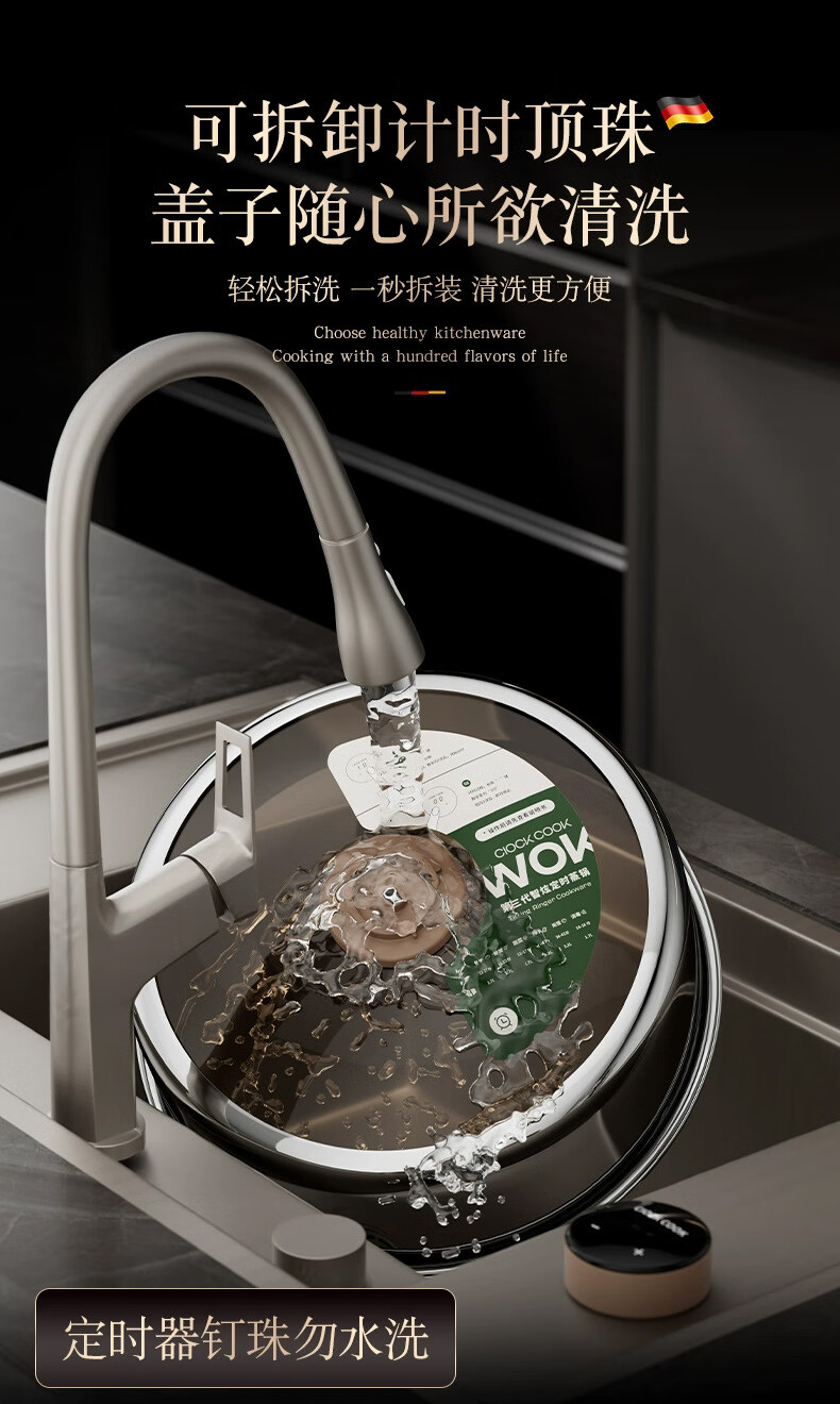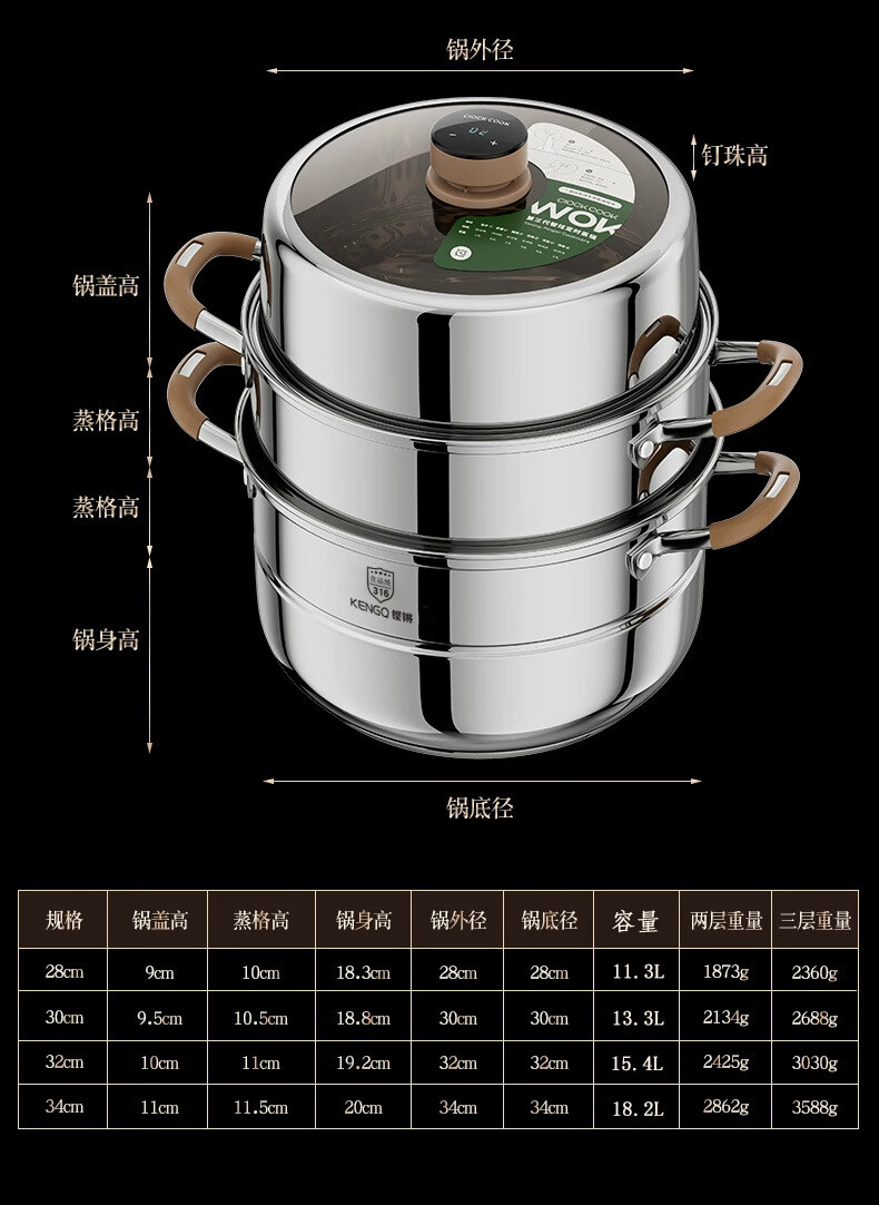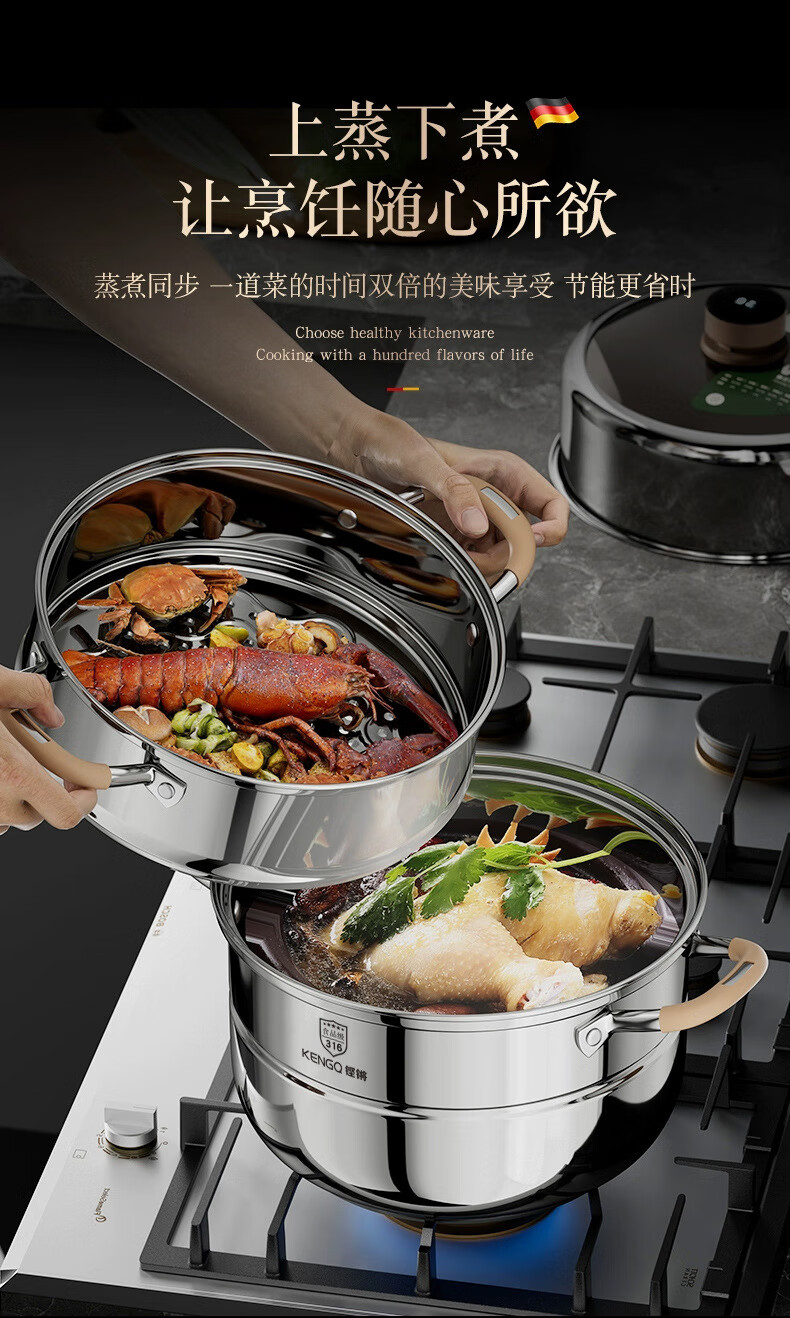 Fat Donglai's same German 316 stainless steel steamer household timer induction cooker gas special large capacity double triple layer double layer upgraded electronic timer alarm clock 28cm