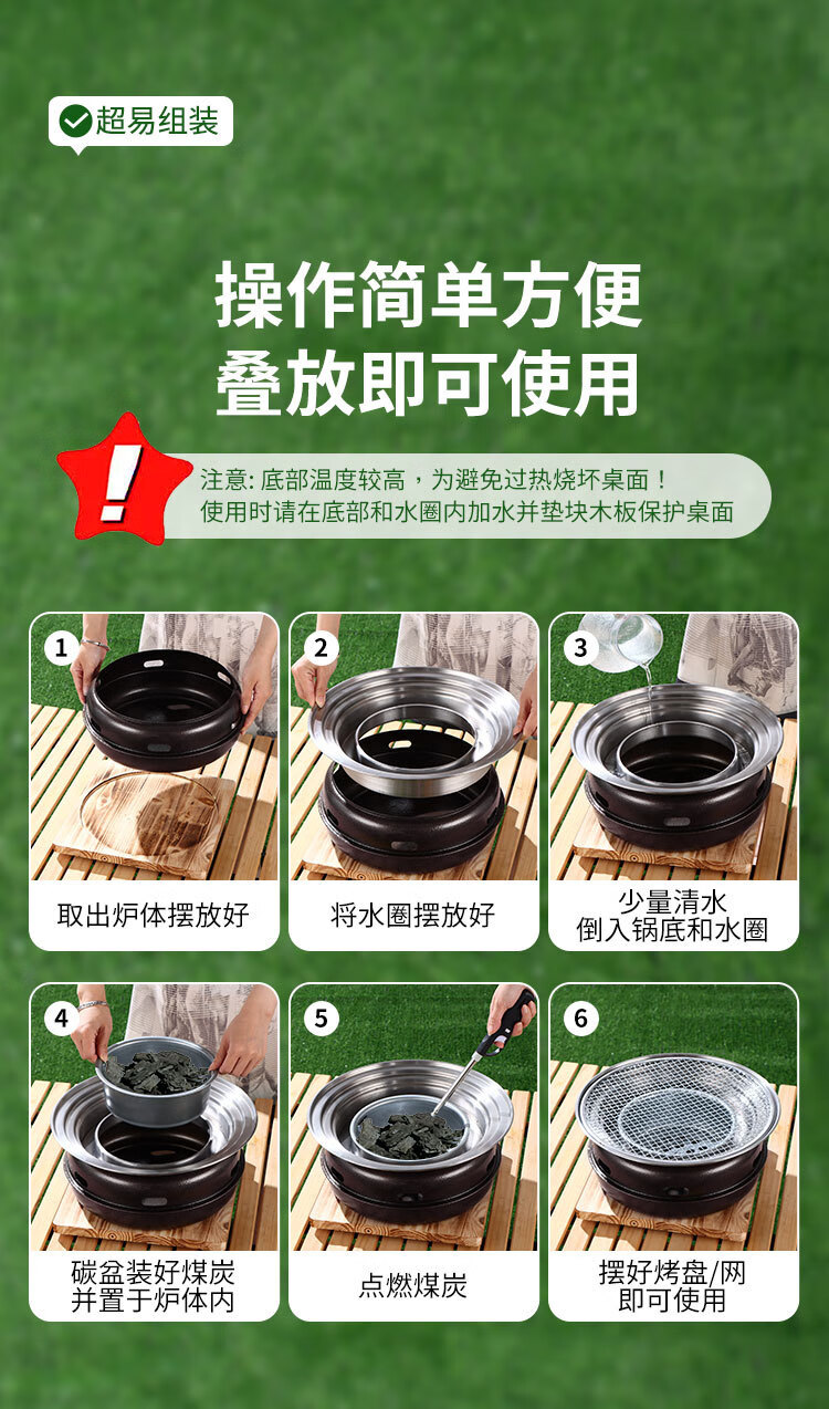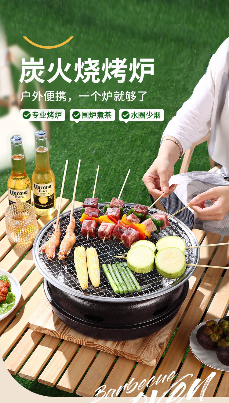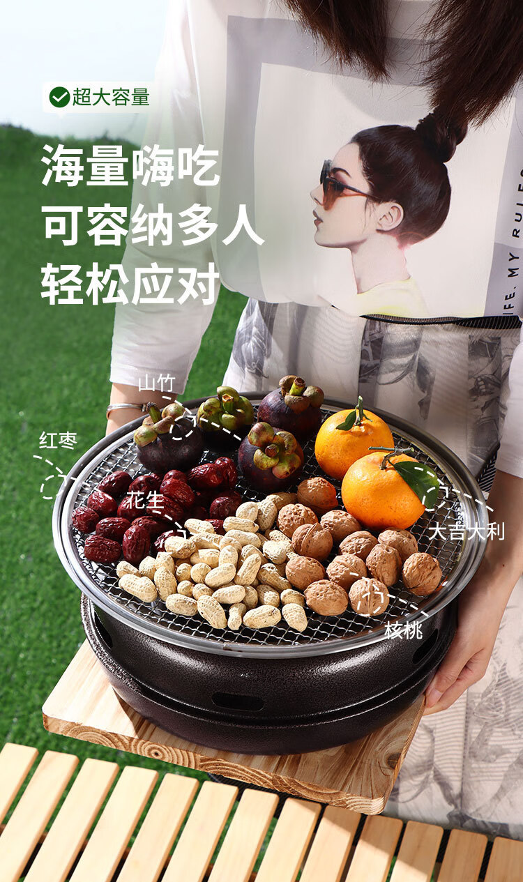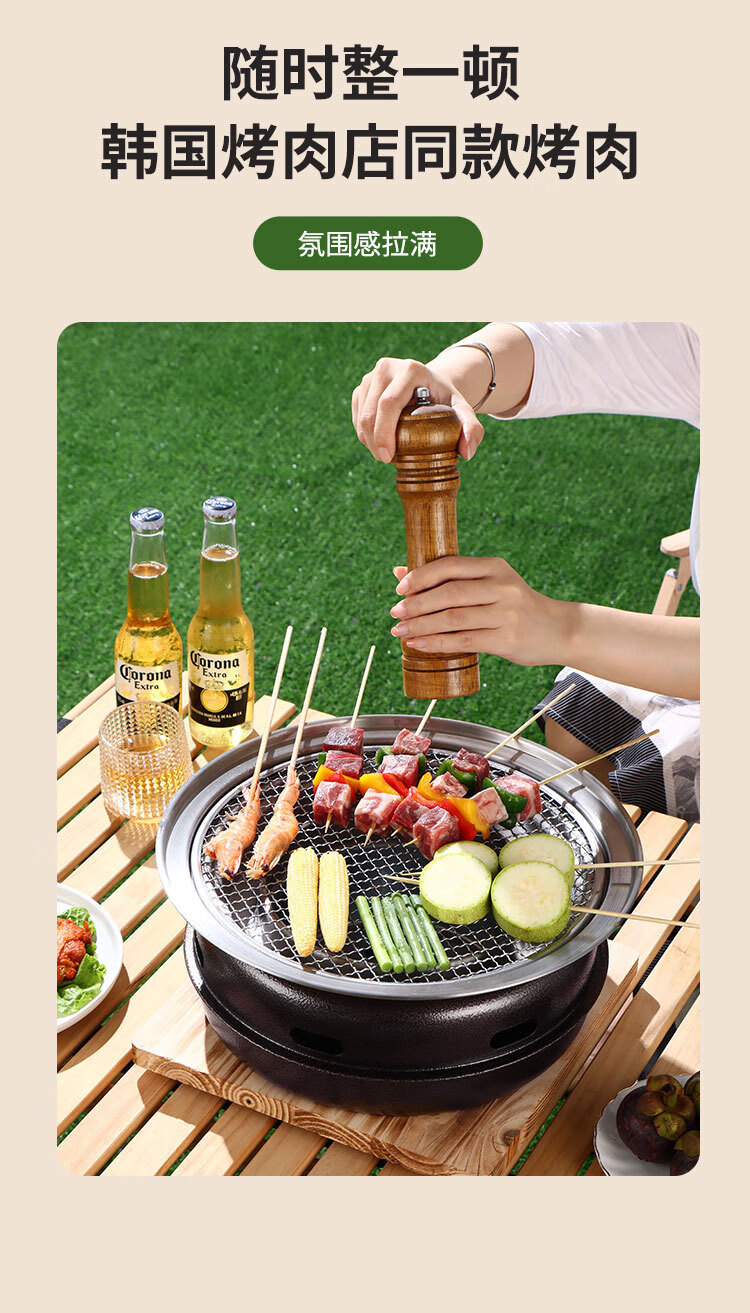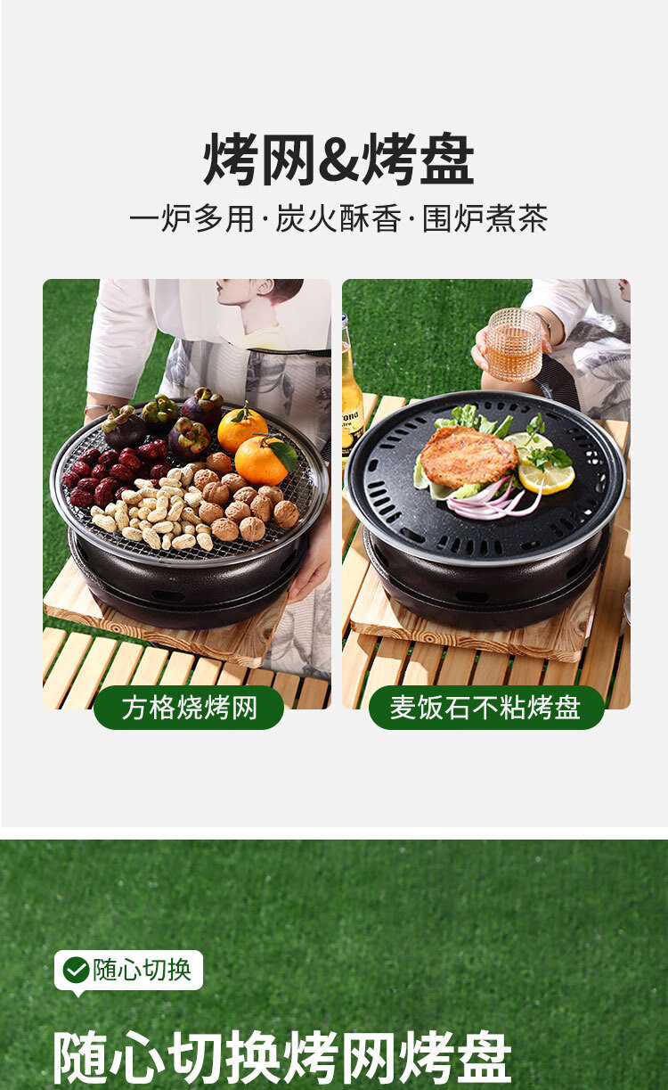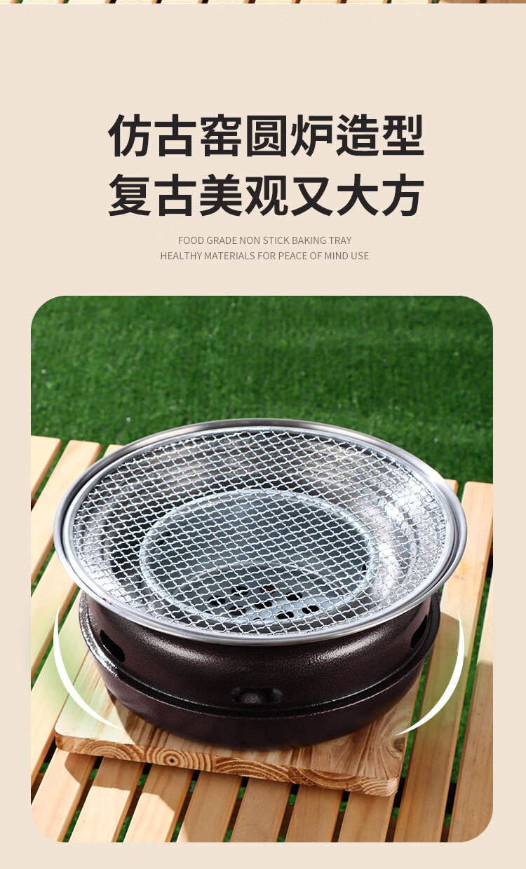 Fat Donglai's same dual-purpose oven commercial Korean barbecue stove outdoor tea-making barbecue stove charcoal charcoal fire high-quality large oven round stove + net + plate